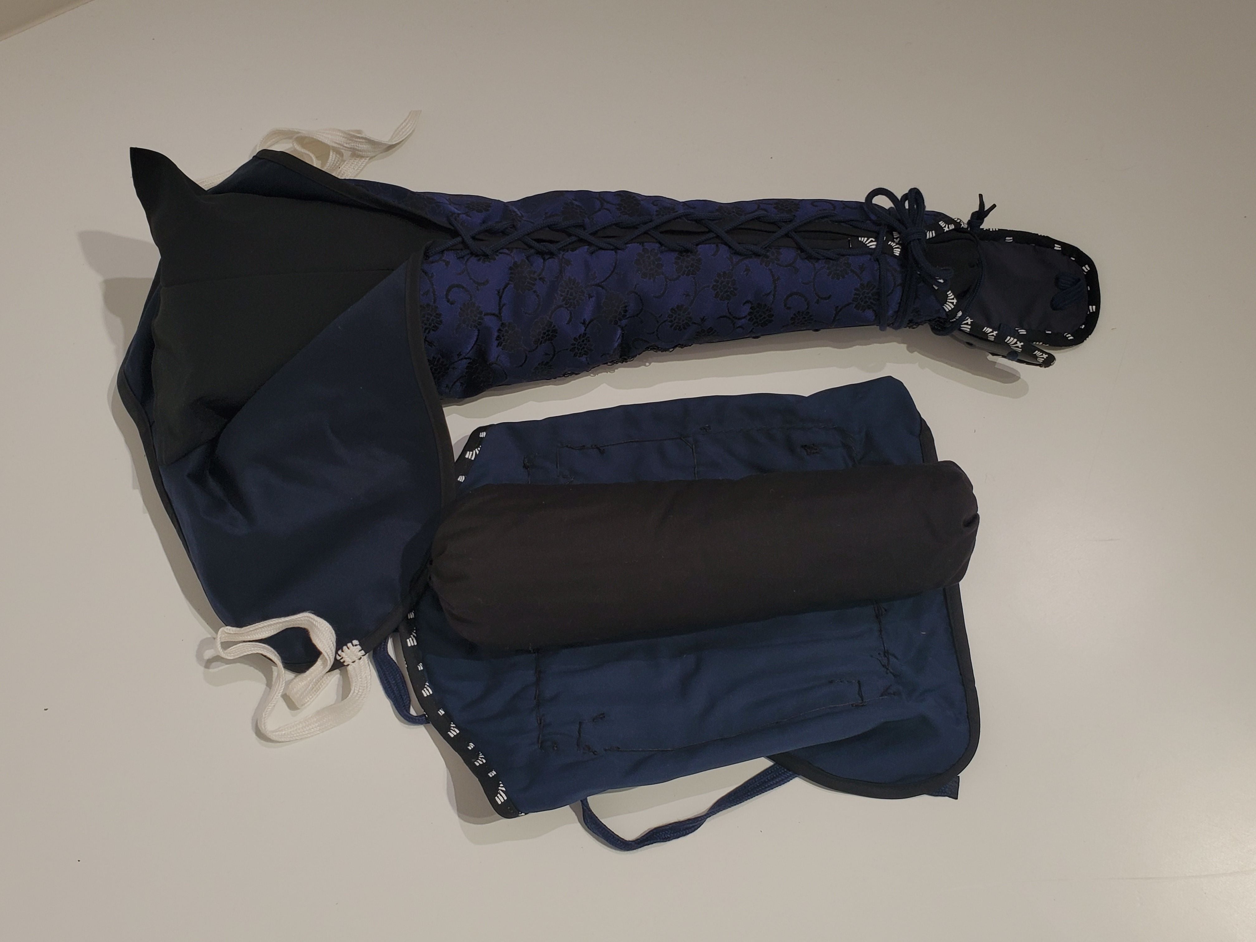 【O-079】Deep navy blue thread laced red matte riveted two-piece cuirass armor with peach-shaped helmet:濃紺糸威赤艶消鋲綴二枚胴具足(桃形兜)