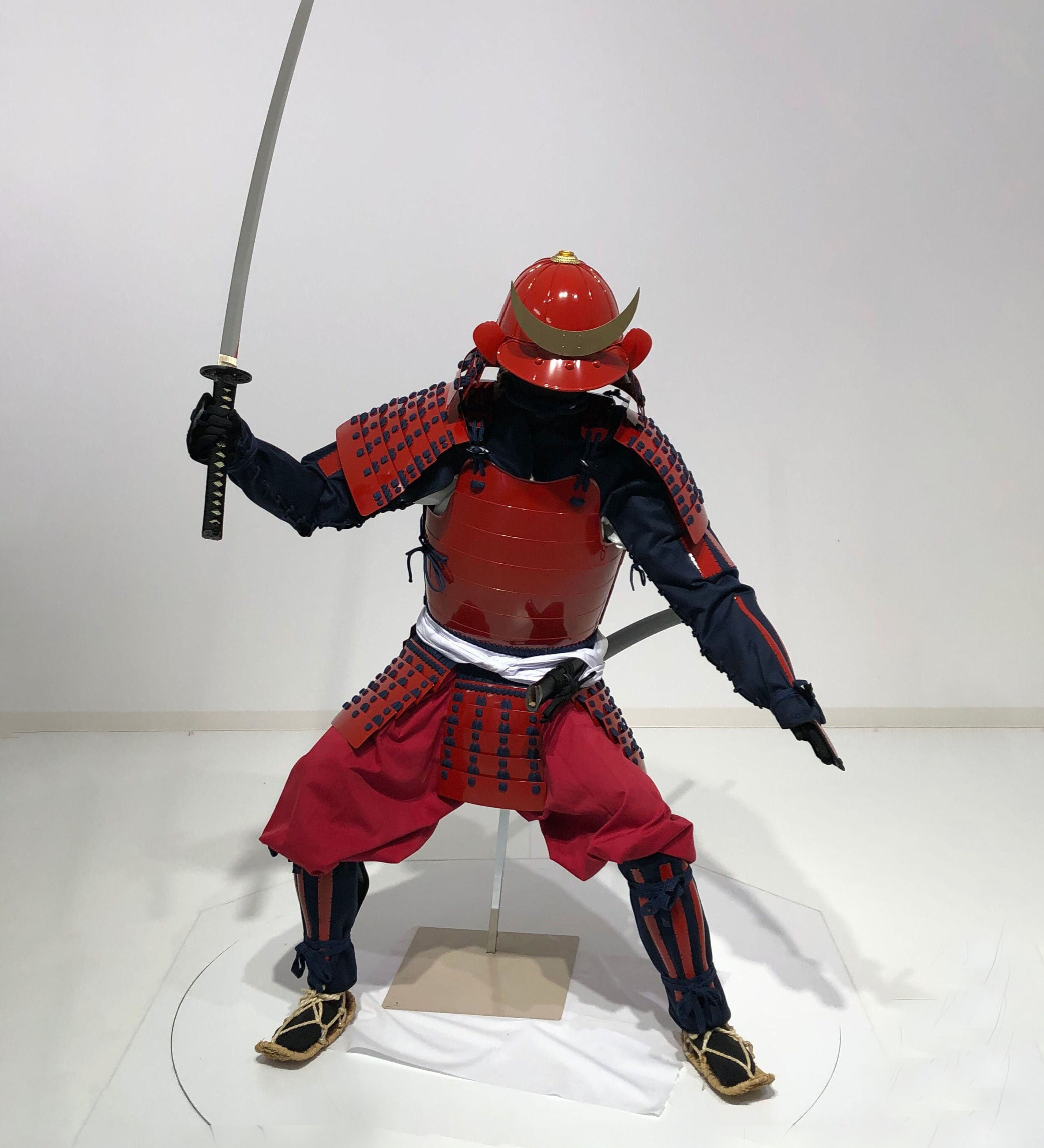 【O-076】Red lacquered armor with dark blue lacing two-plate cuirass, Jidai Festival set:濃紺糸威赤桶側二枚胴 時代祭りセット