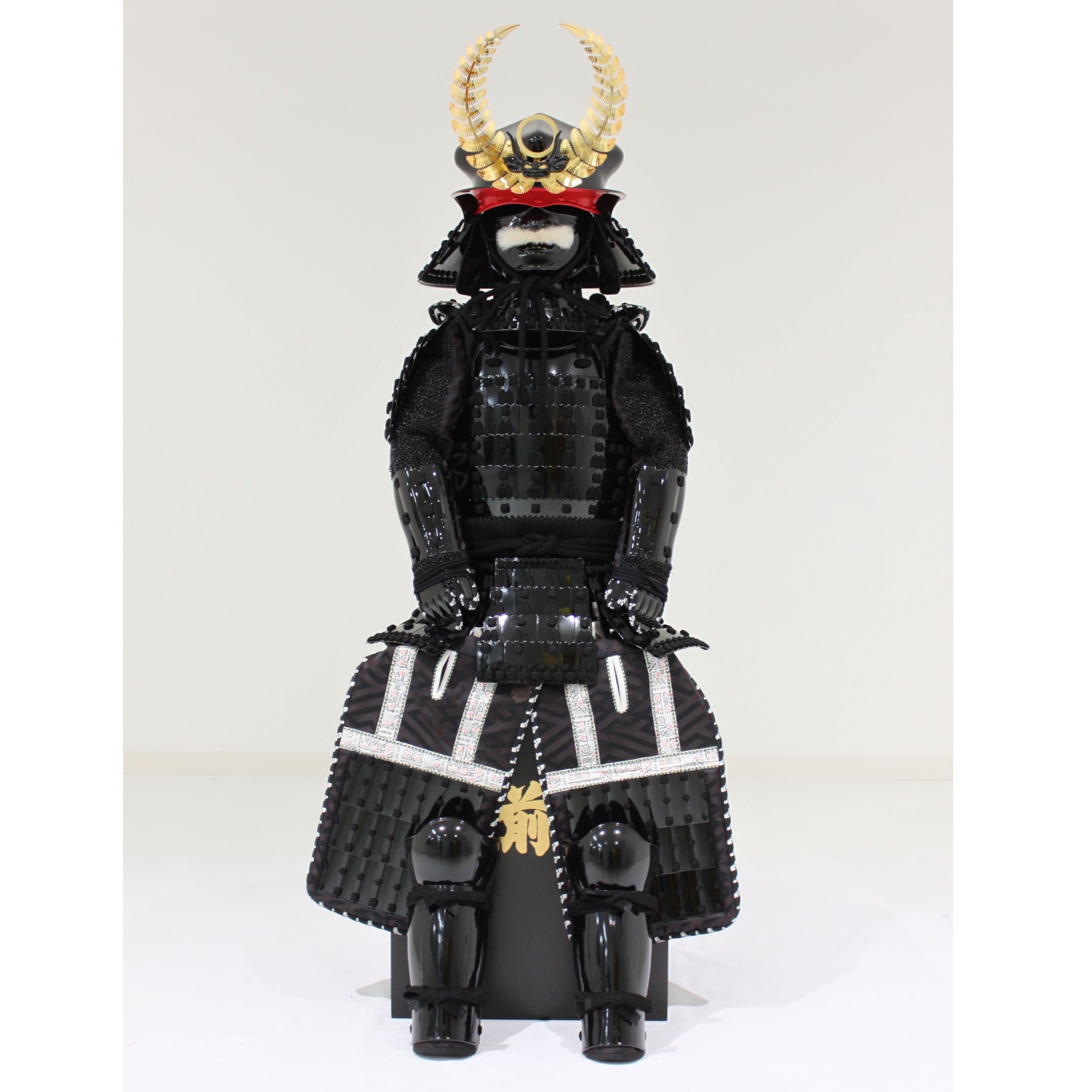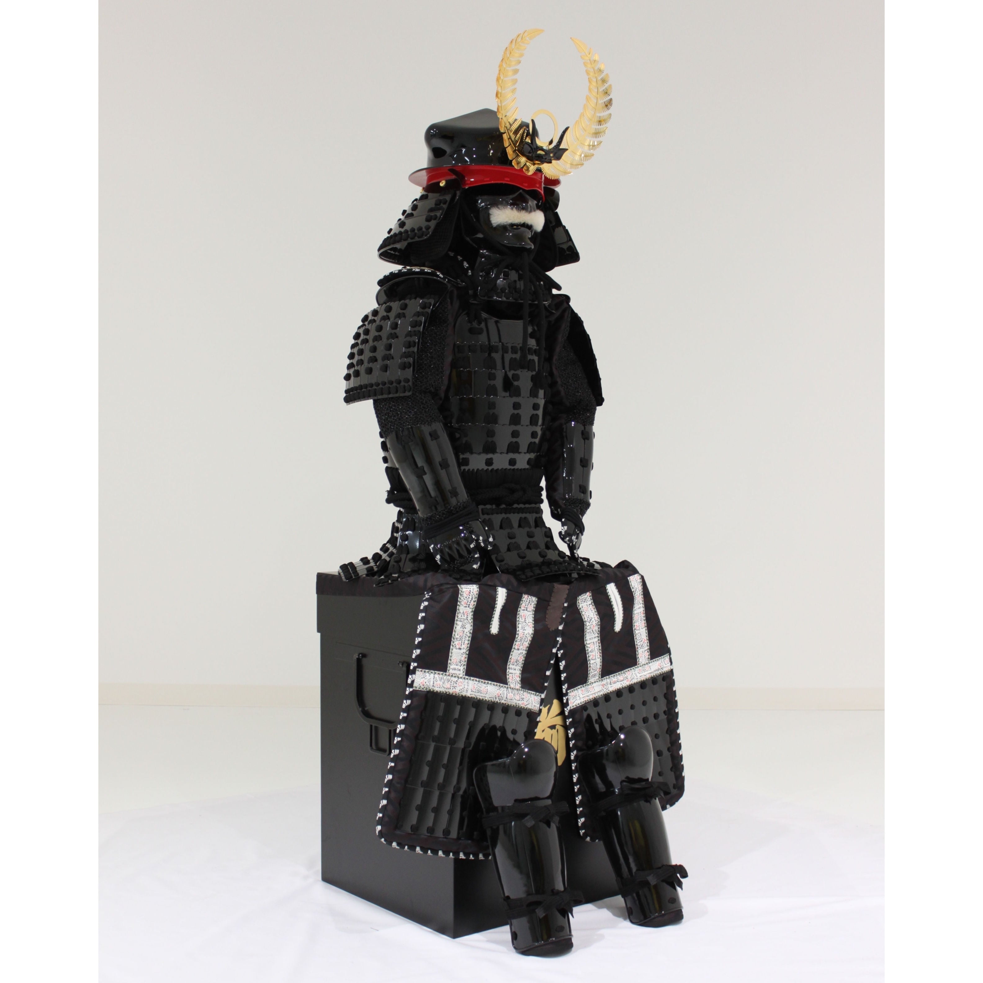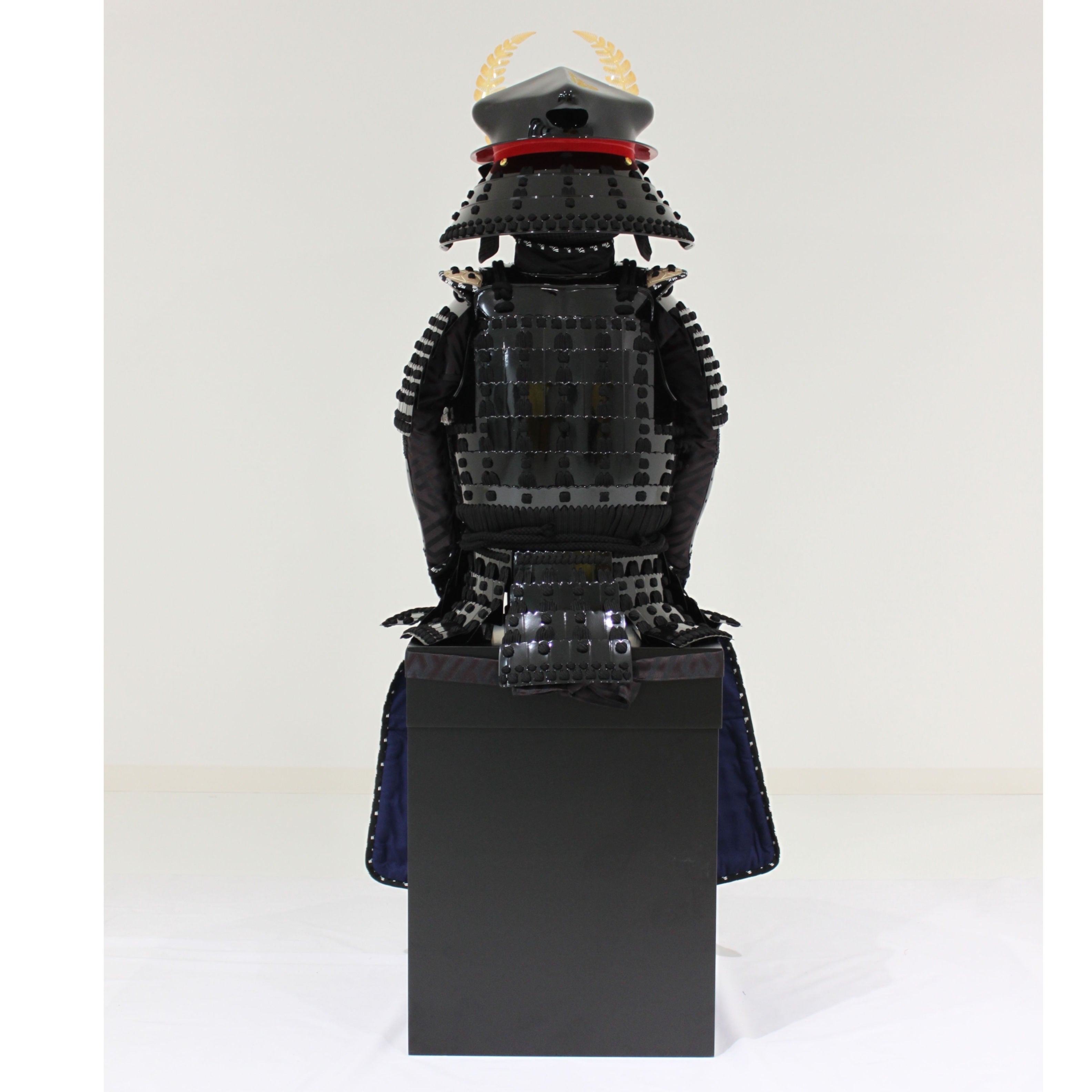 Sashika: Black-lacquered board tag, black thread plain coat, three-stage manju sashika, Do: Black-lacquered black thread coat, Iyo tag, two-piece dosode, Black-lacquered Iyo tag, black thread coat, round sleeve, five-stage kusazuri, Black-lacquered Iyo tag, black thread coat, four-stage rokuken gauntlets, Black-lacquered tube gauntlets, Black-lacquered tube shins
