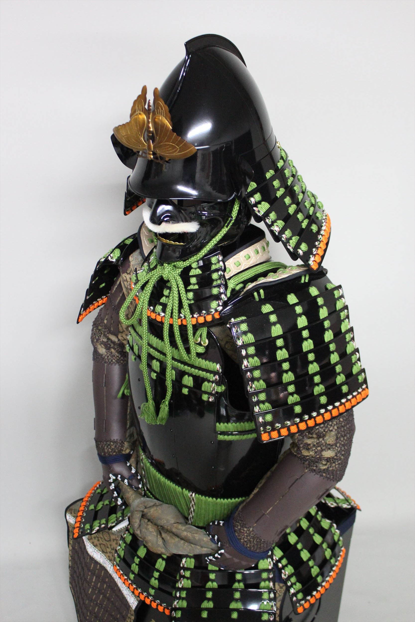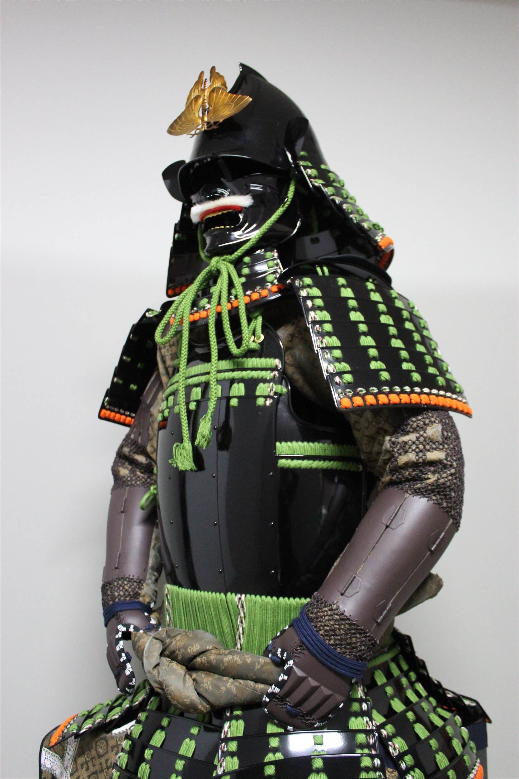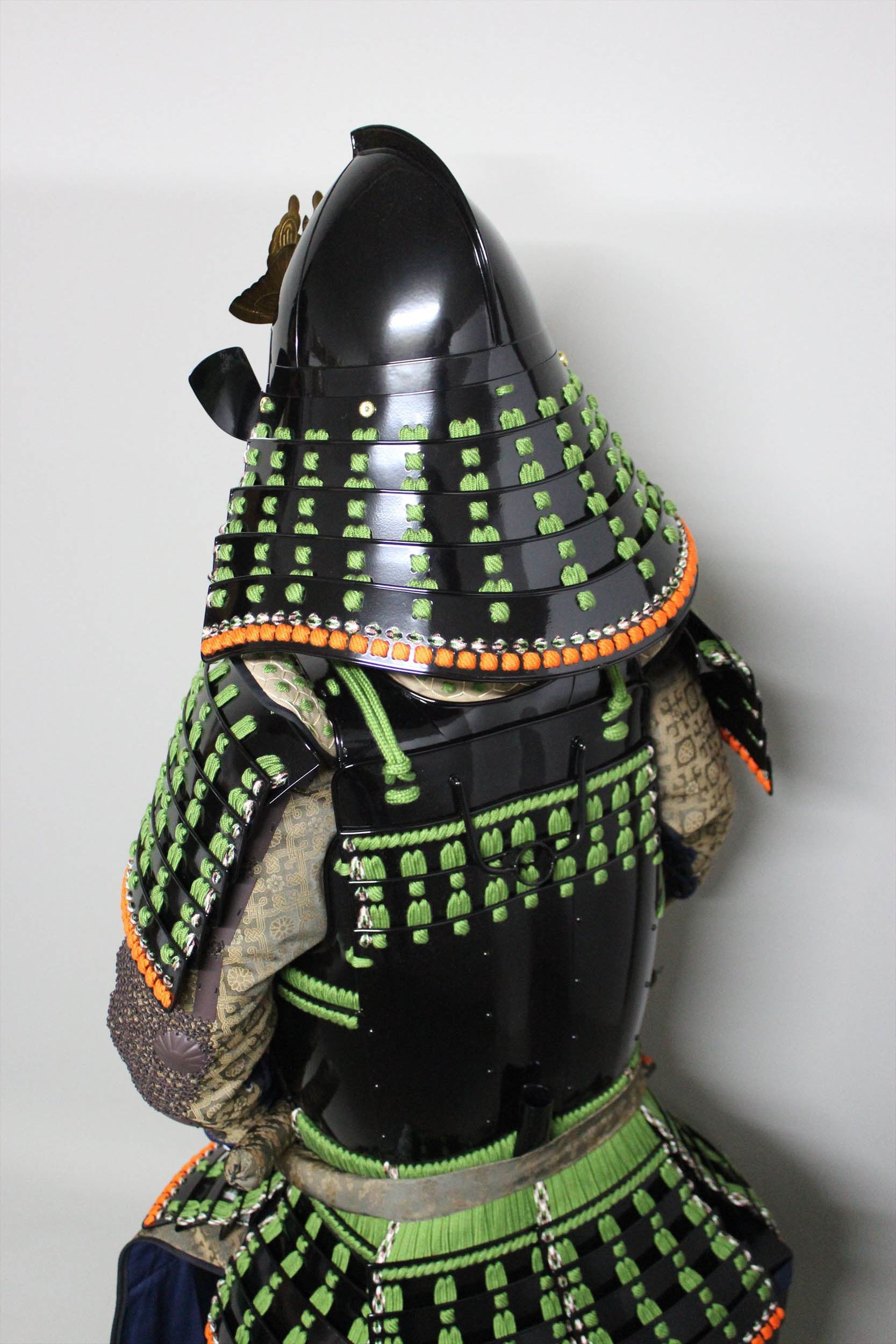 【O-030】Light Green Thread Laced Vertical Seam Two-Piece Cuirass Armor:萌黄糸威縦矧二枚胴具足