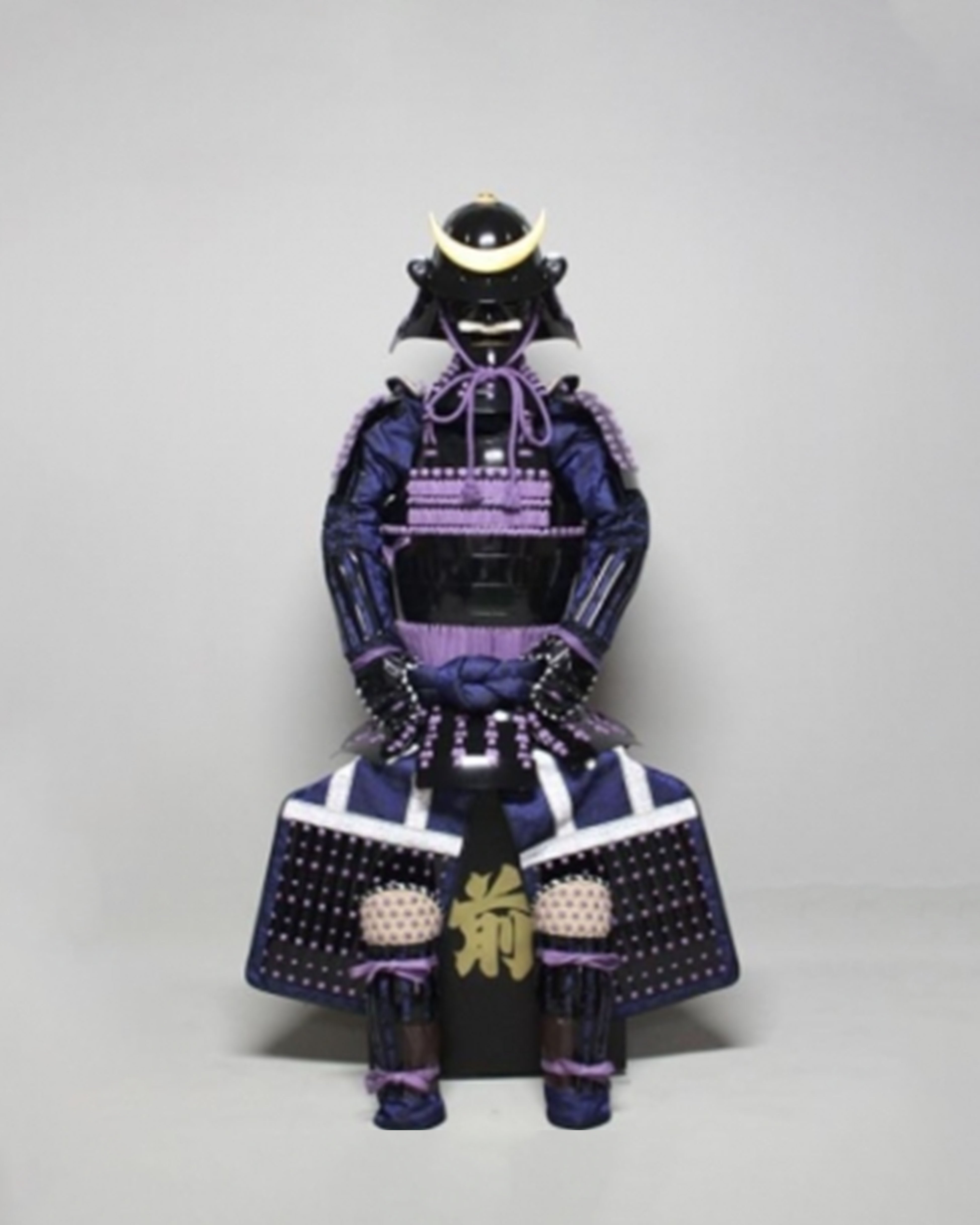 【O-056】Purple thread laced chest-fastened black barrel shoulder guards two-piece cuirass armor:紫糸威胸取黒桶側二枚胴具足