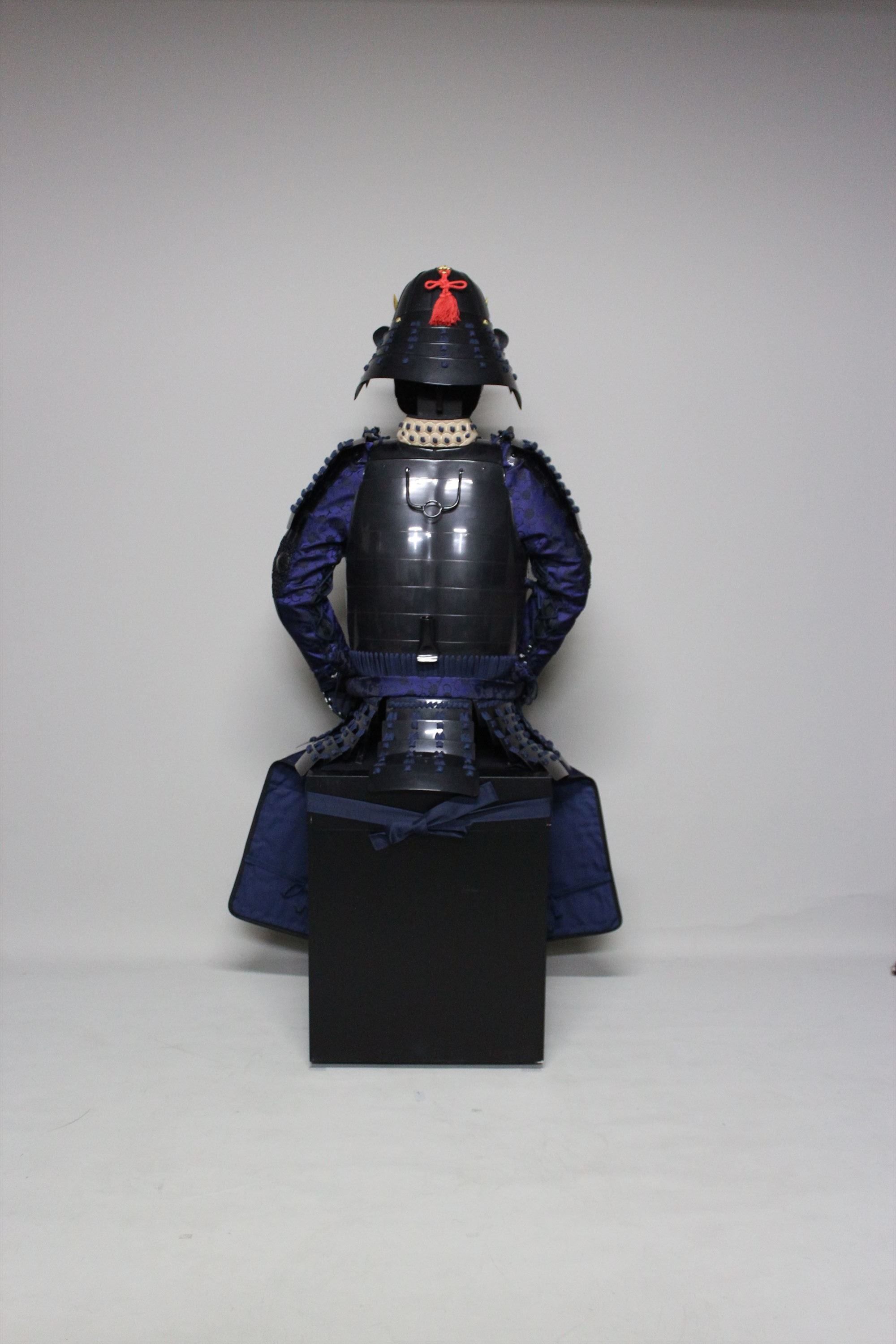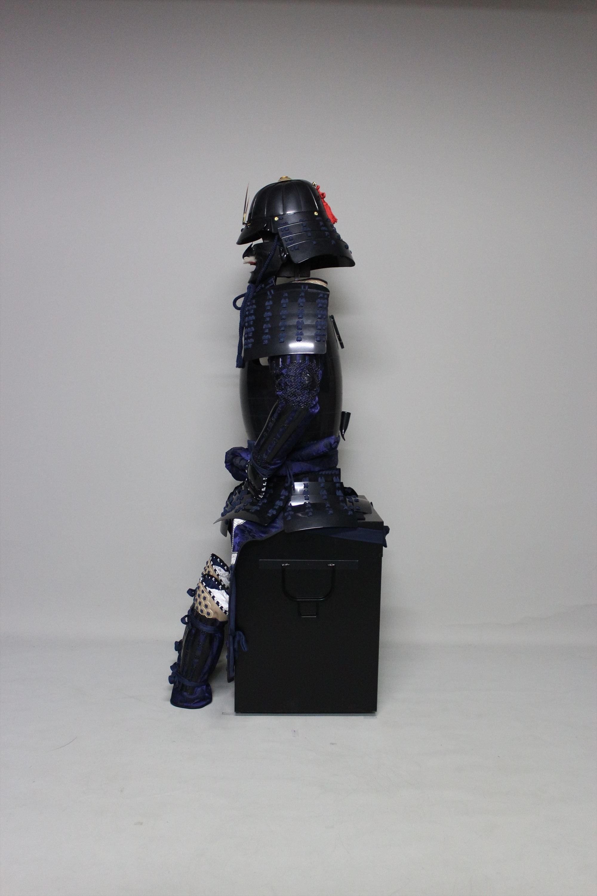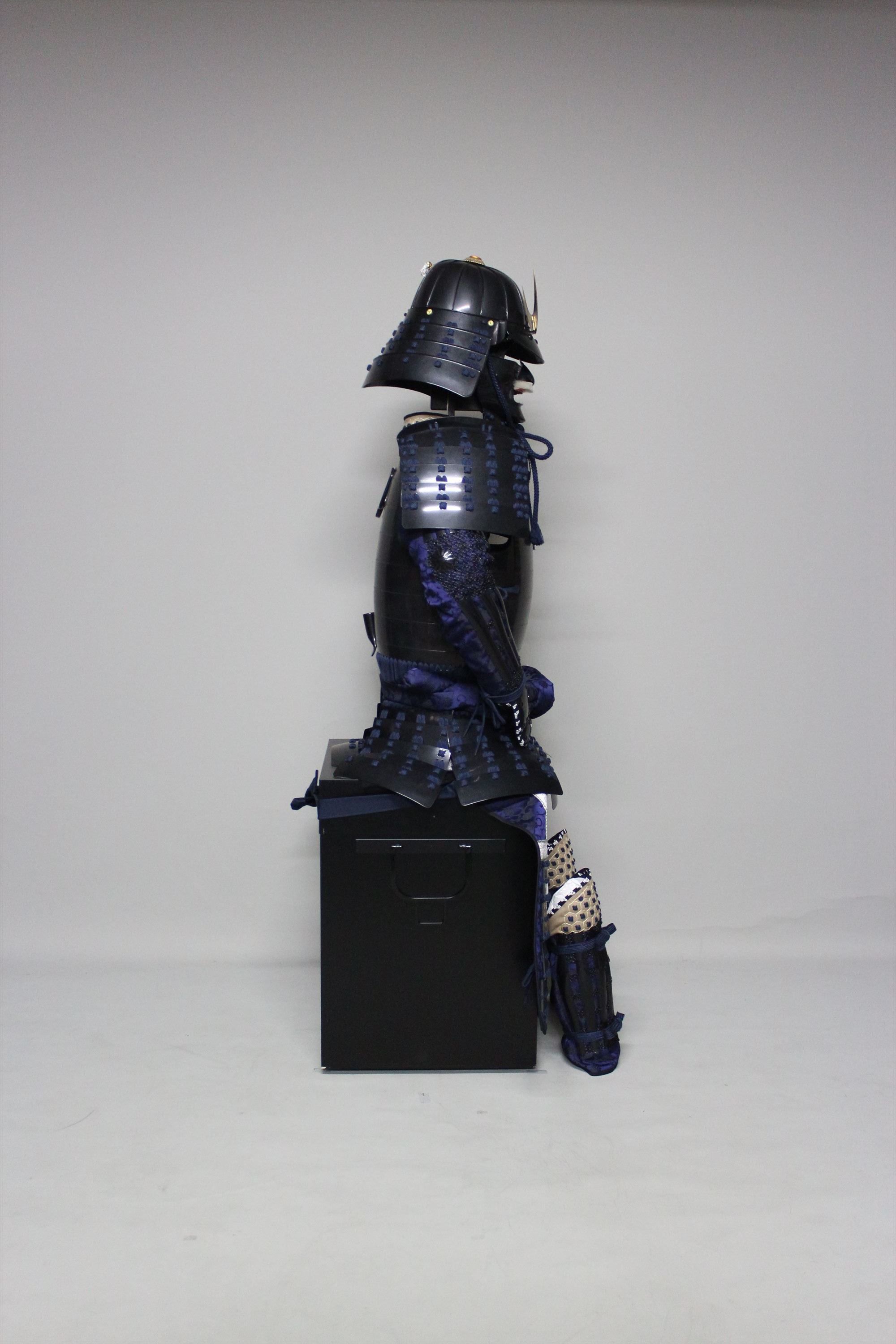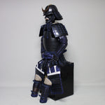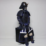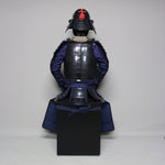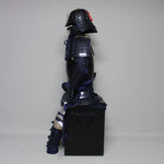 【O-065】Dark Navy Blue Thread Laced Black Barrel Side Two-Piece Cuirass Armor (Hand-Finished Matte Lacquer):濃紺糸威黒桶側二枚胴具足(手時代塗)