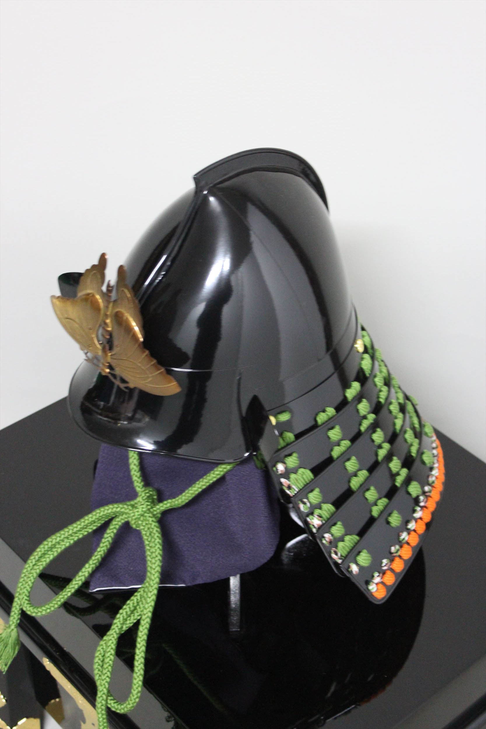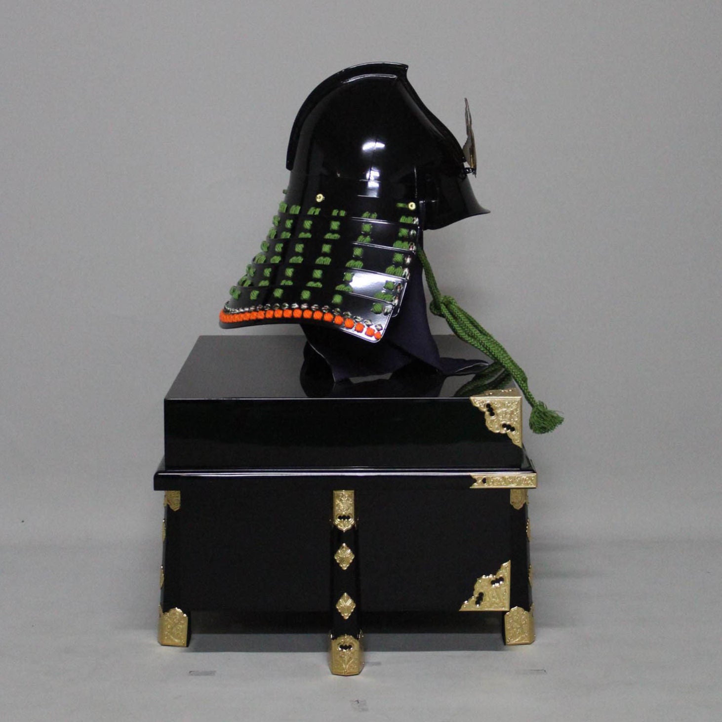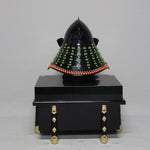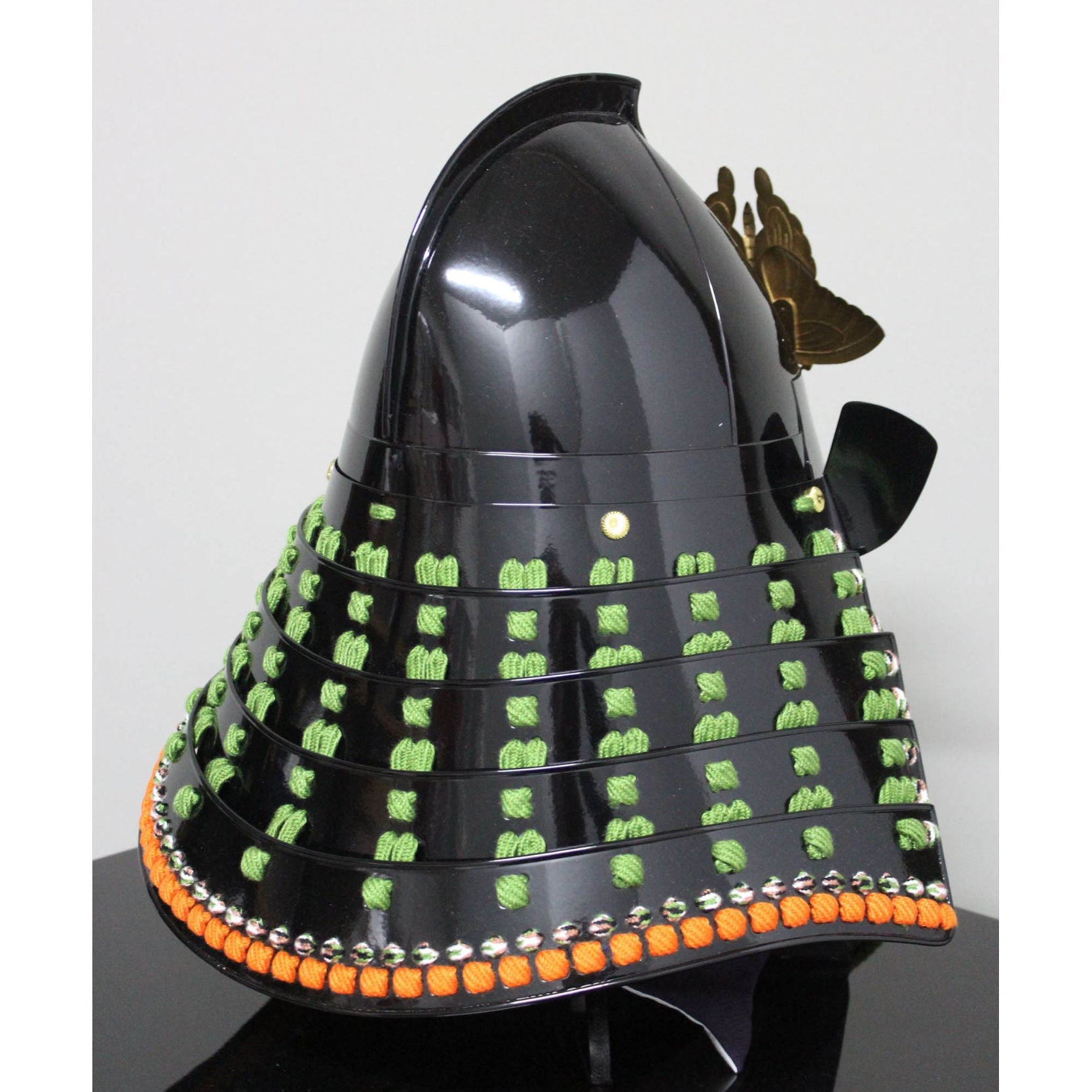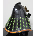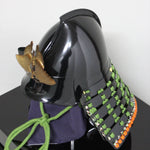【O-030-K】Yellowish green thread laced vertical joined two-piece cuirass armor (helmet only):萌黄糸威縦矧二枚胴具足(兜のみ)