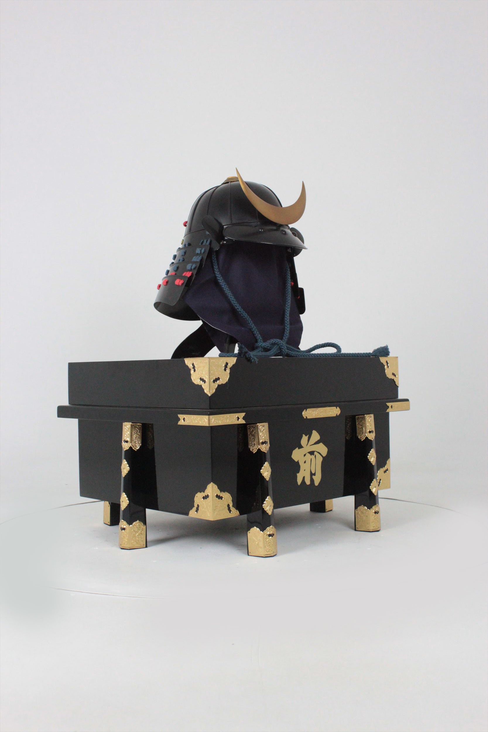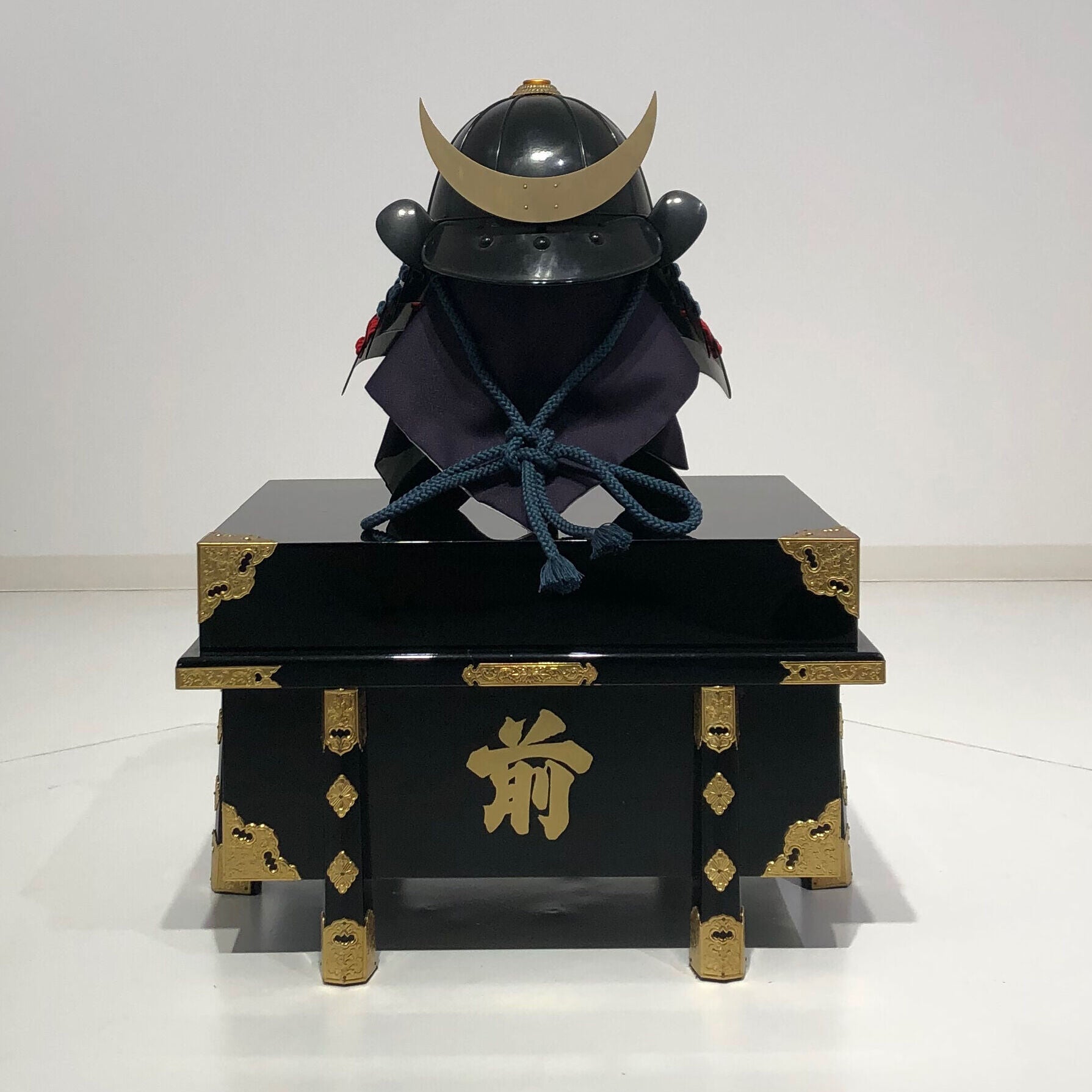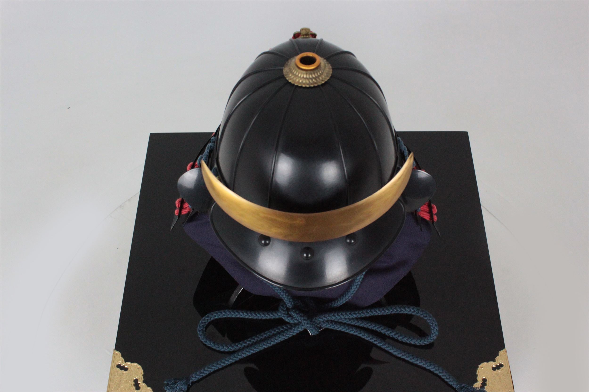 【O-055-K】Navy and Red Thread Laced Munetori Black Barrel-shaped Two-piece Dou Armor (Juunikoma) (Helmet Only):紺赤糸威胸取黒桶側二枚胴具足(十二間)(兜のみ)