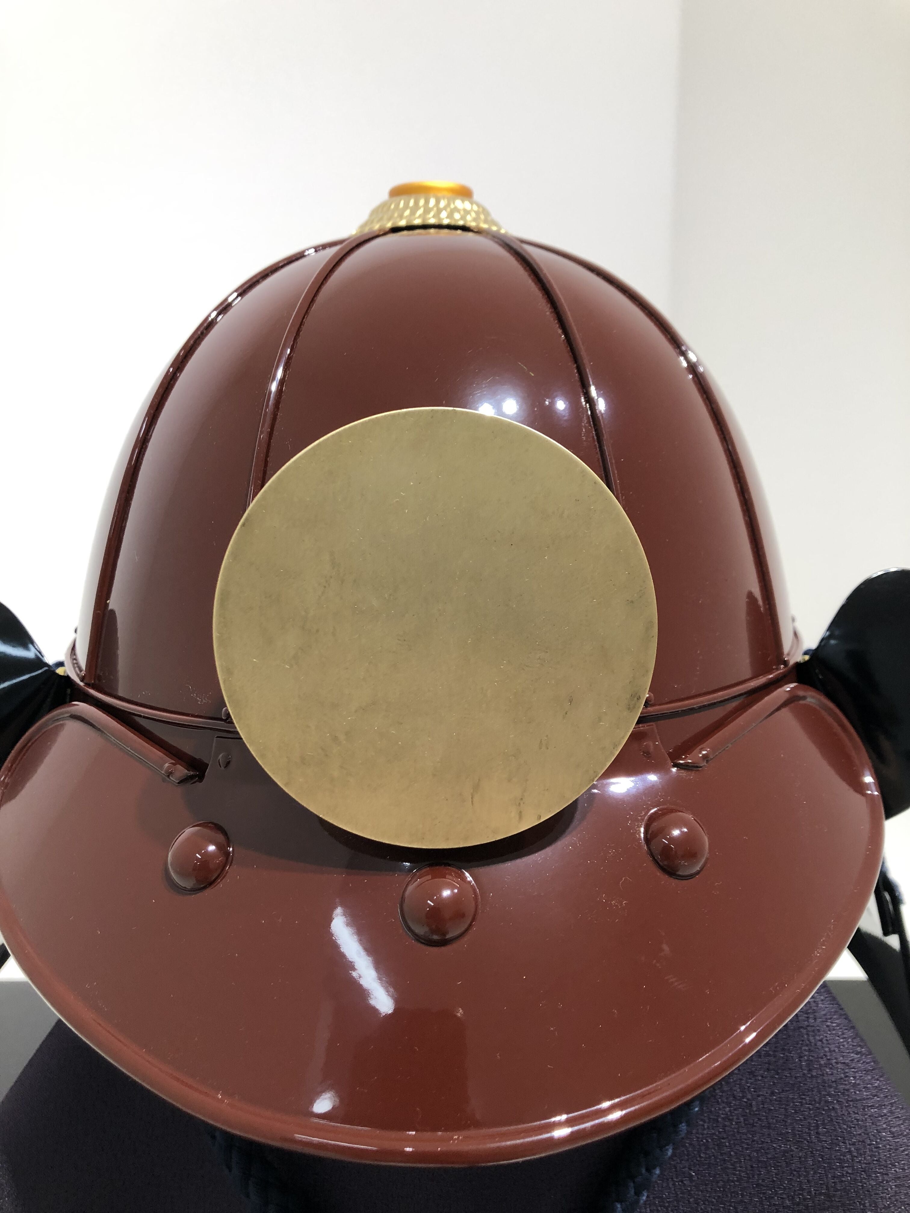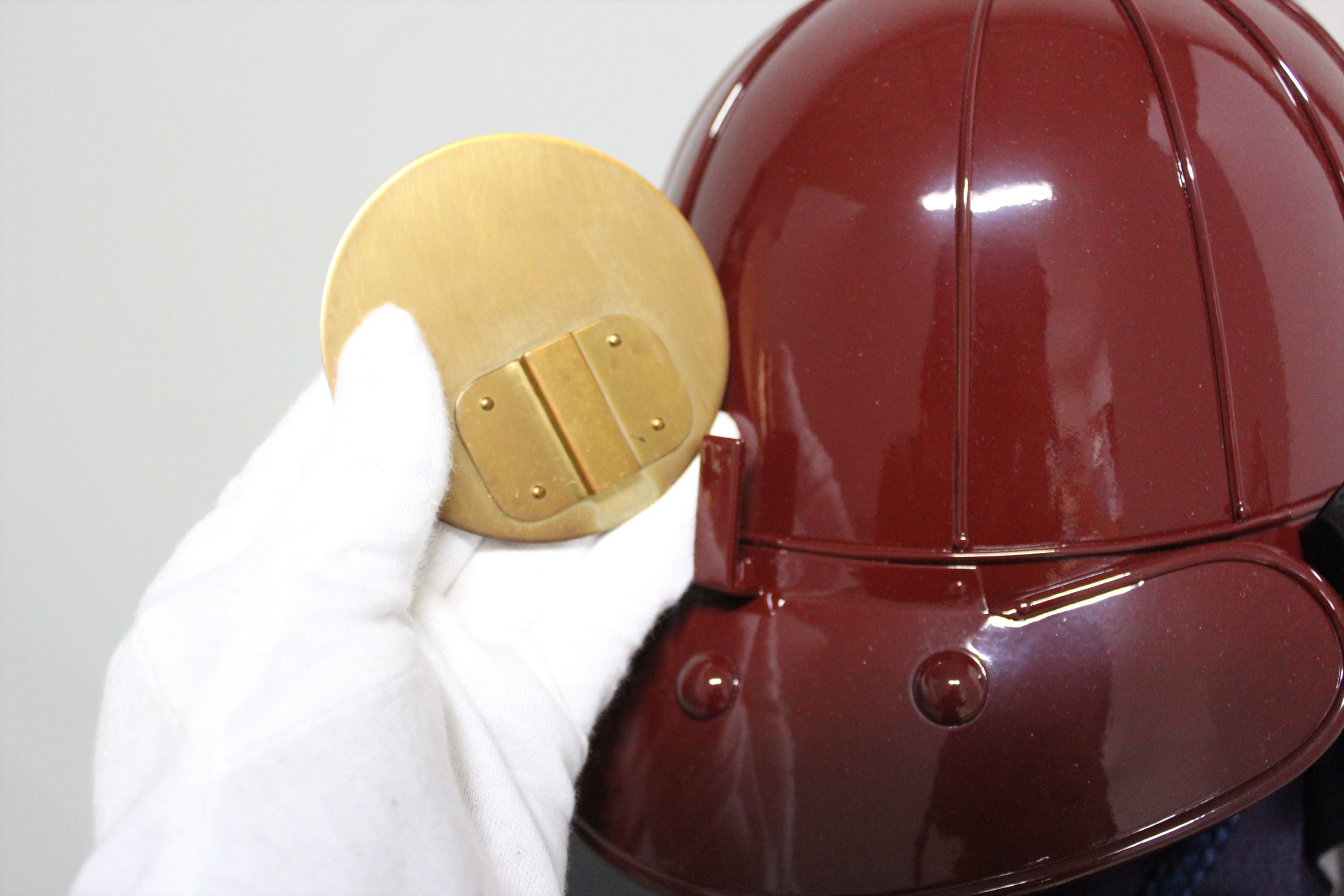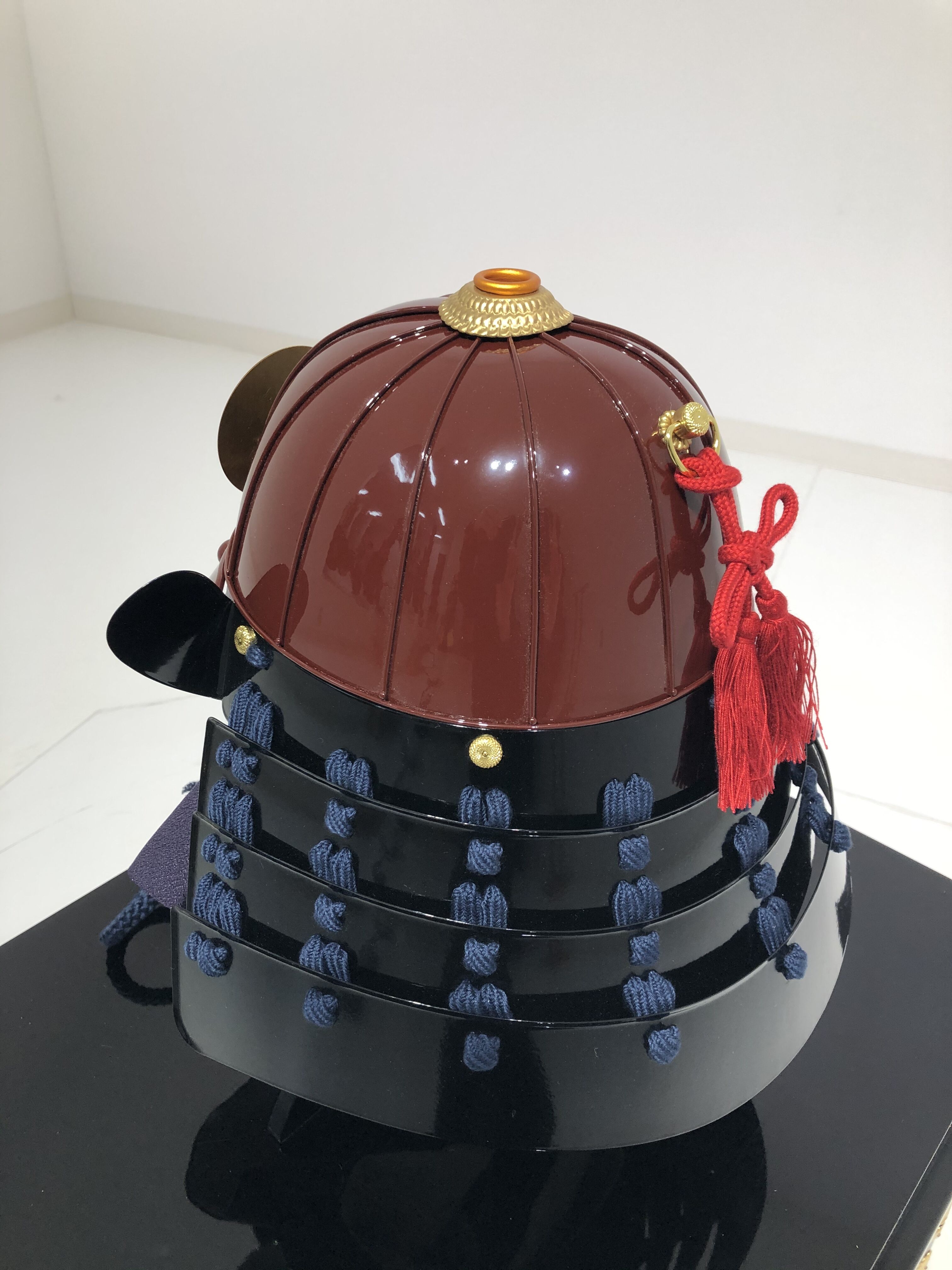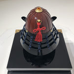 【O-059-K】Deep navy blue thread laced brown barrel shoulder guards two-piece cuirass armor (helmet only):濃紺糸威茶桶側二枚胴具足(兜のみ)