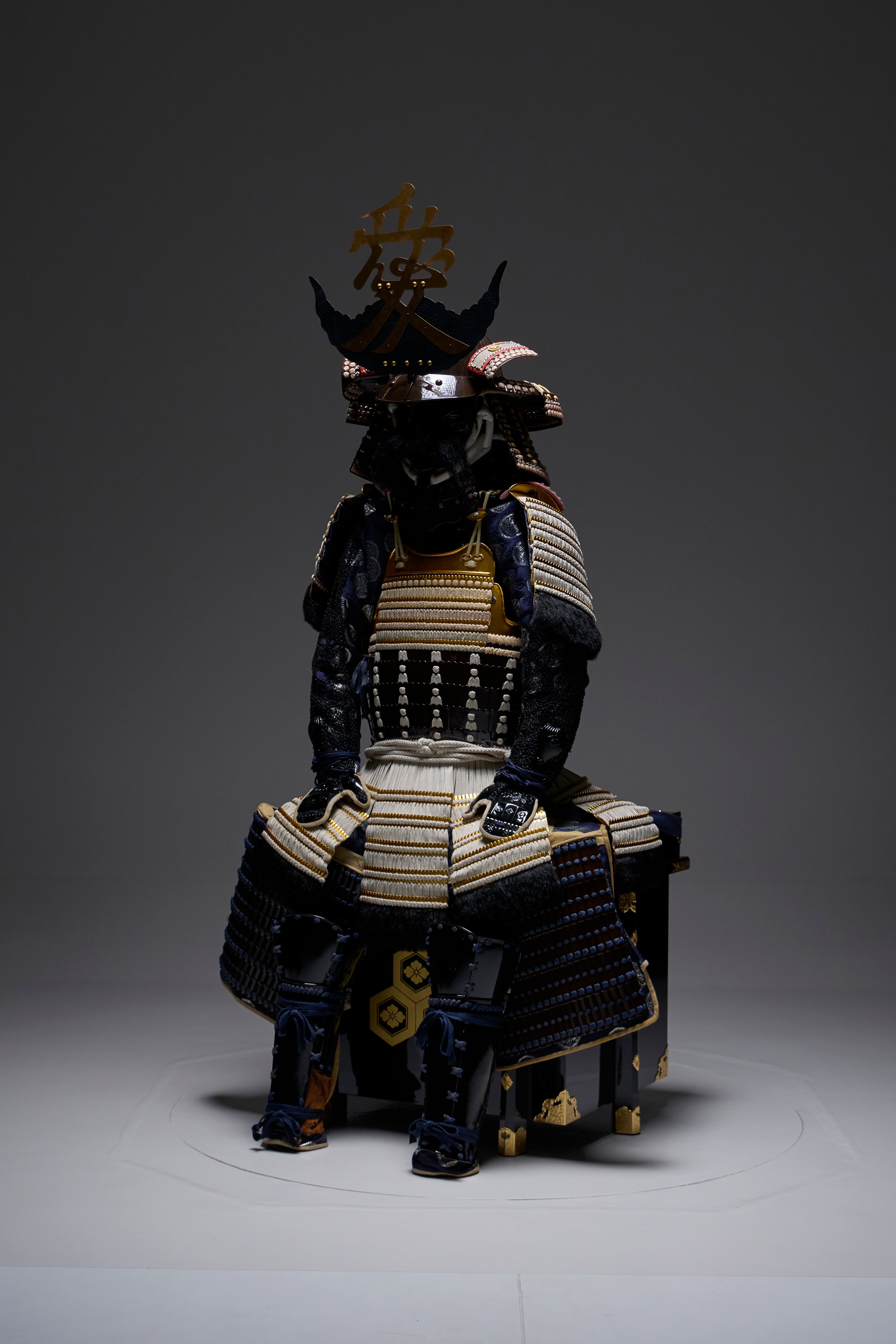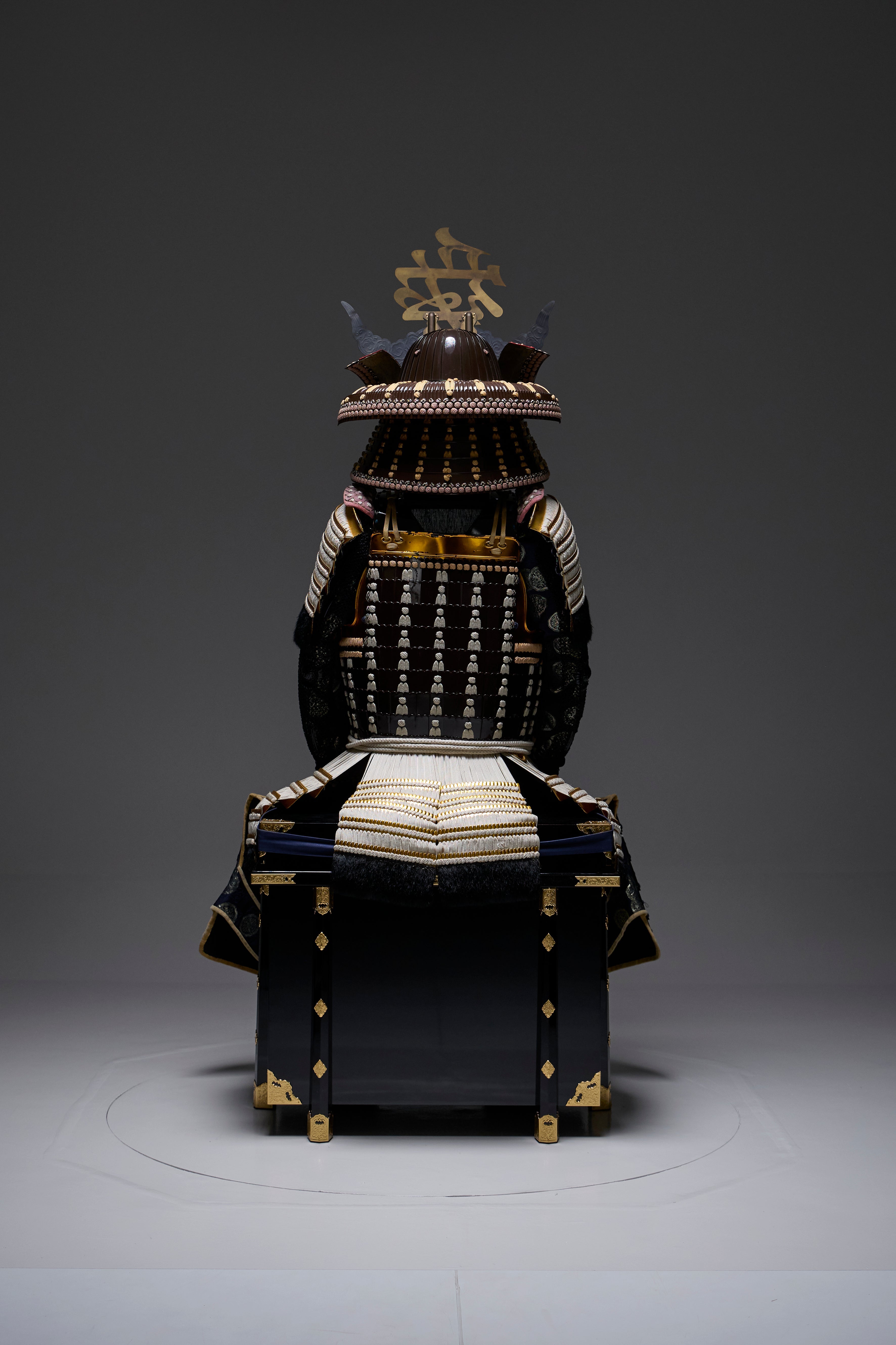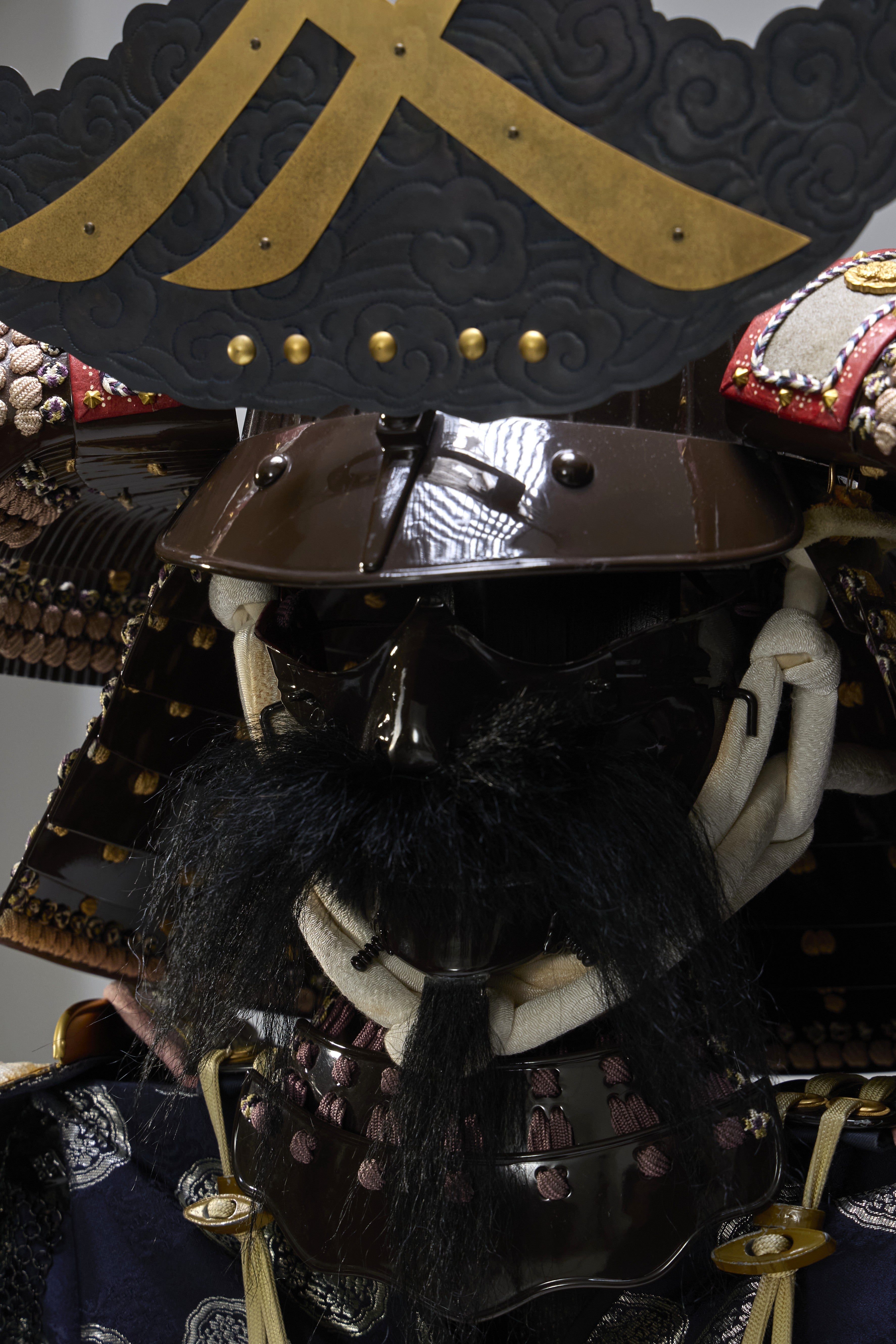 ●Specifications Helmet bowl: Brown-lacquered 62-ken striped helmet front plate, real gold leaf copper brass love letter front plate, brown-lacquered gold-brown thread-dyed two-tier umbrella front plate (upper tier modern three-tier, lower tier board five-tier)