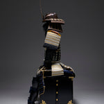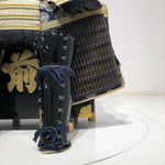 Shin: Black lacquered large standing shin shoulder guard, brown lacquered round shin shoulder guard