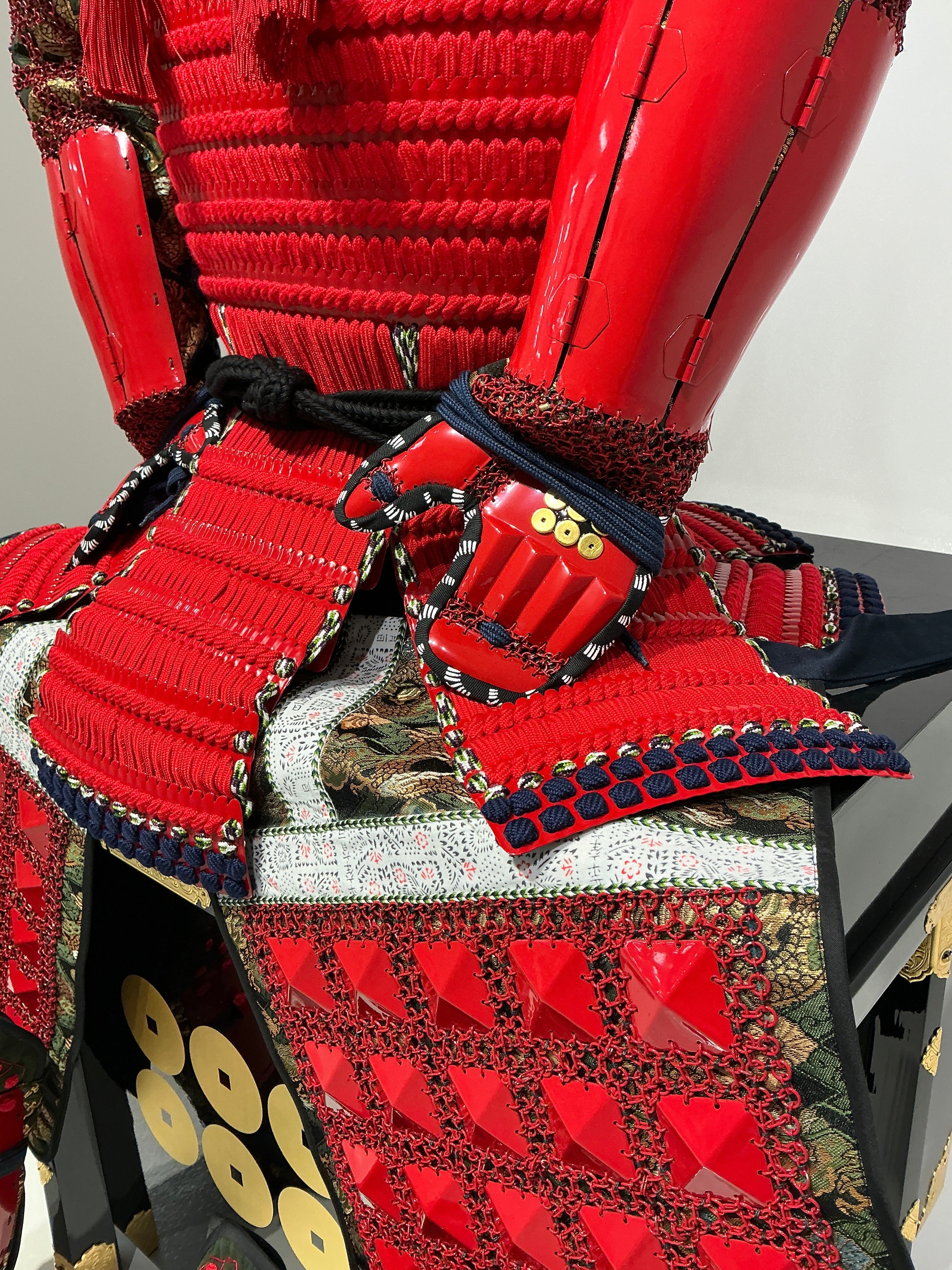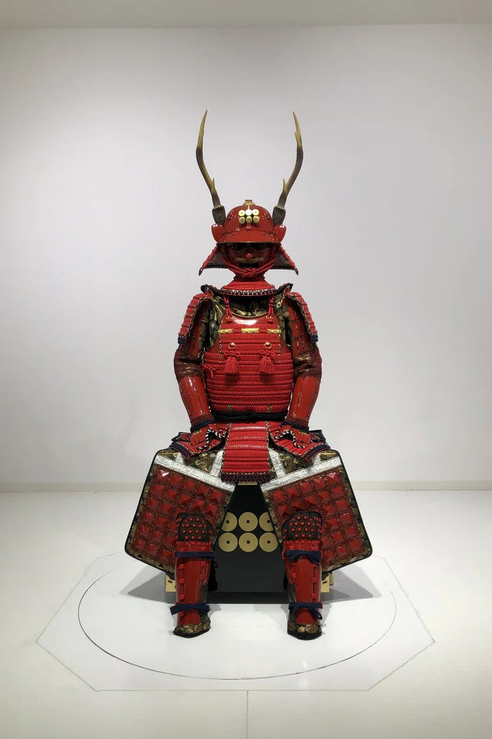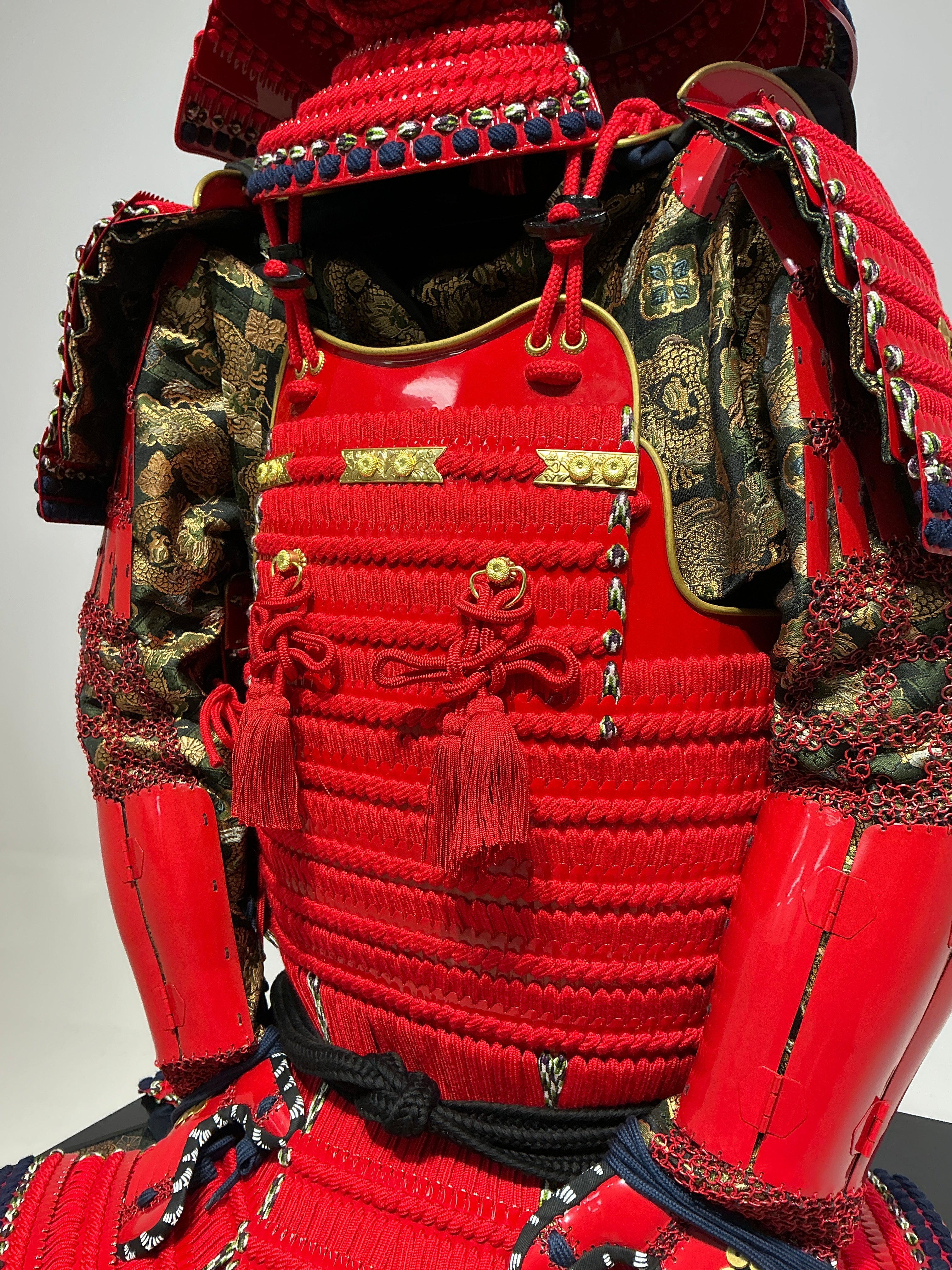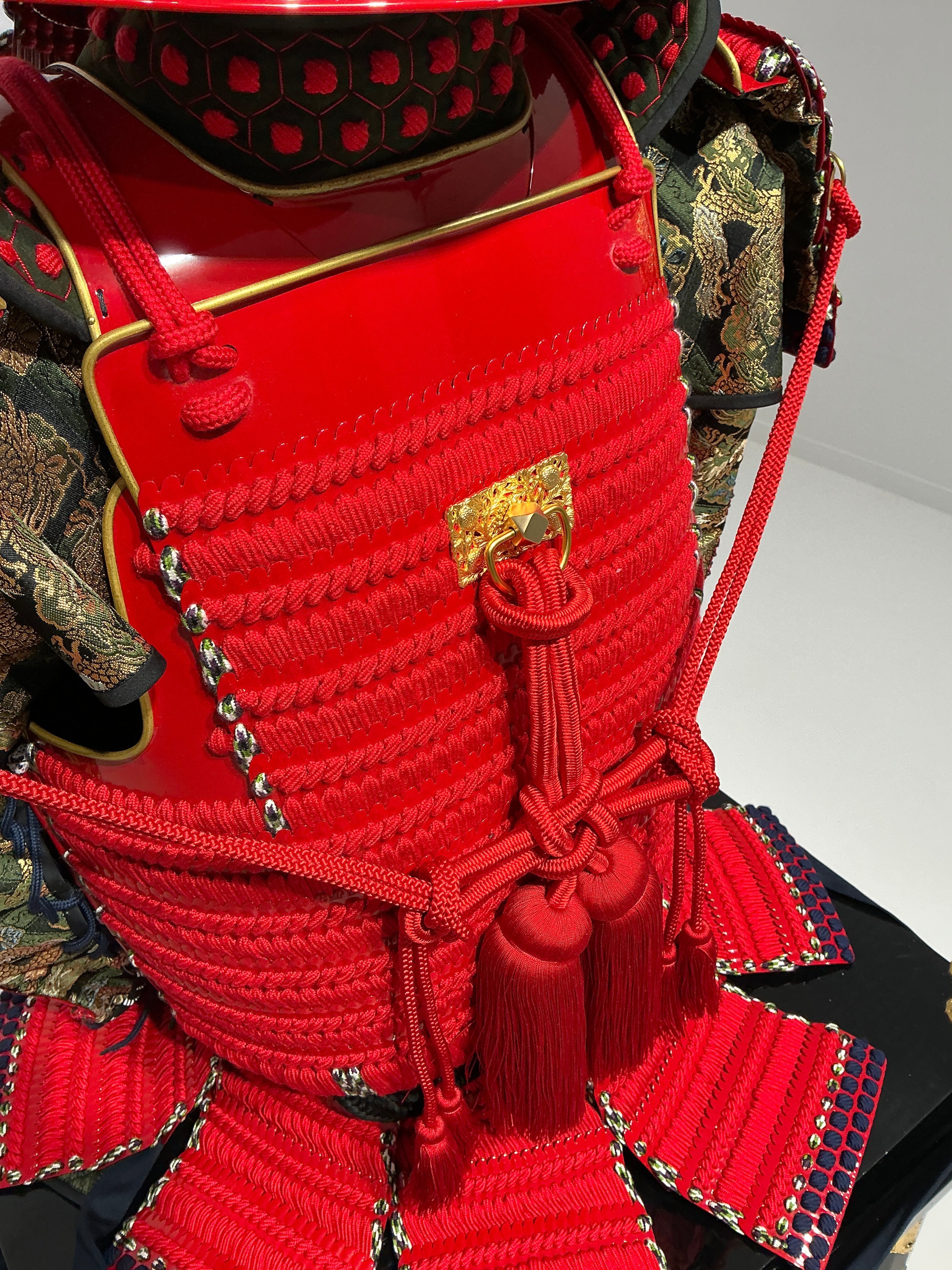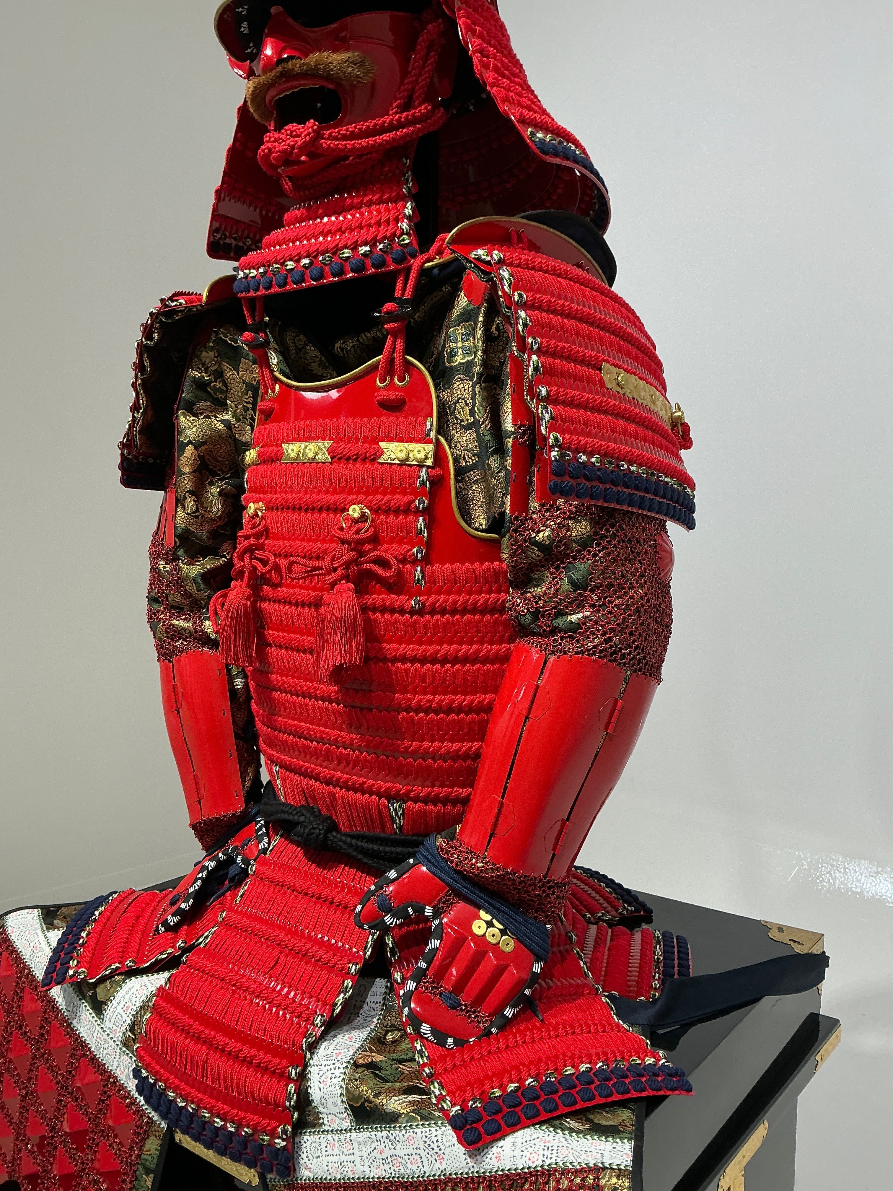 Sash: Red-painted contemporary small bills with red thread five-tiered torso, Red-painted contemporary small bills with red thread two-layered torso sleeves, Red-painted contemporary small bills with red thread six-tiered round sleeves, Red-painted contemporary small bills with red thread seven-ken five-tiered gauntlets, Red-painted three-piece tube gauntlets, Red-painted three-piece tube shins