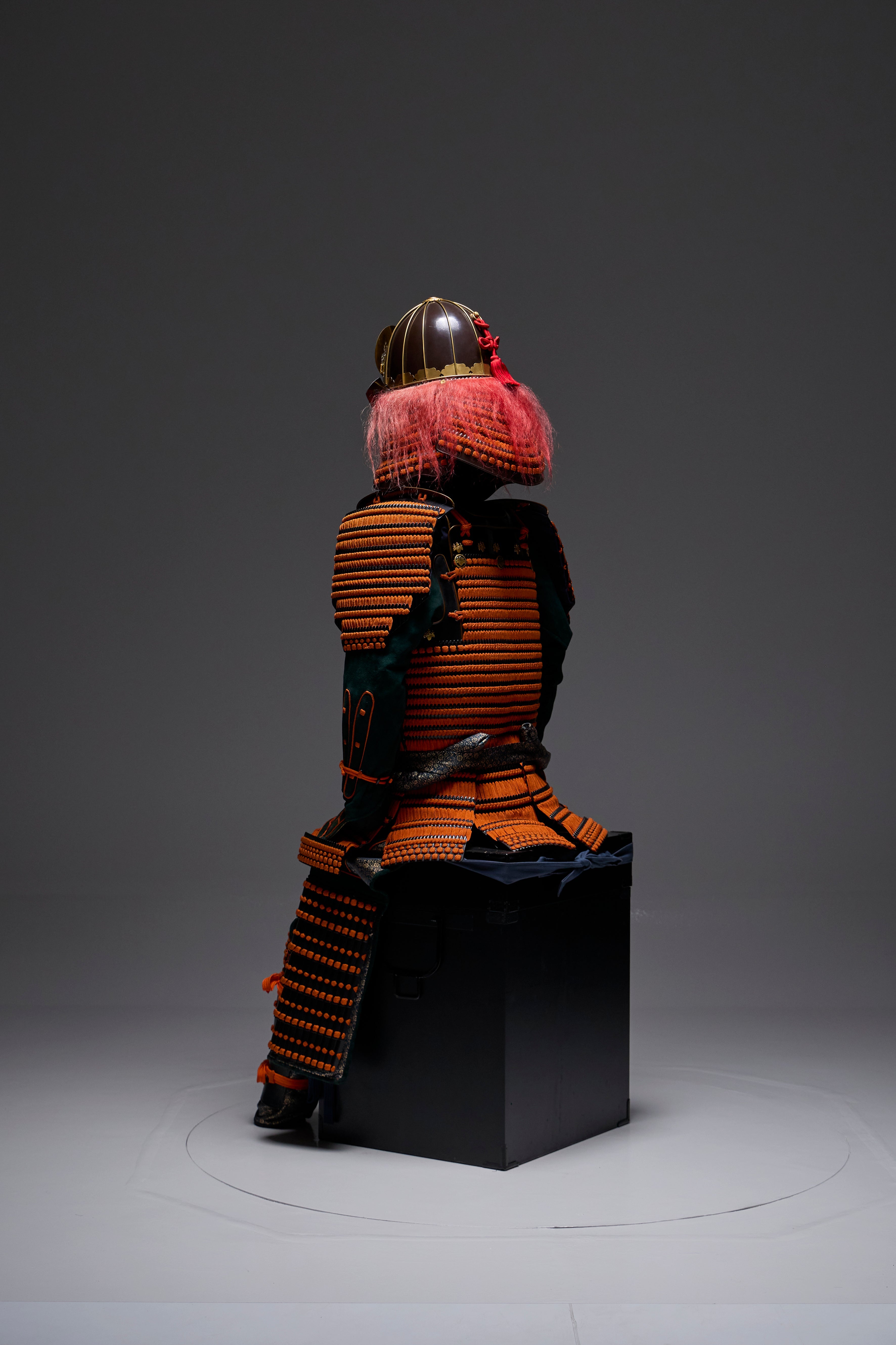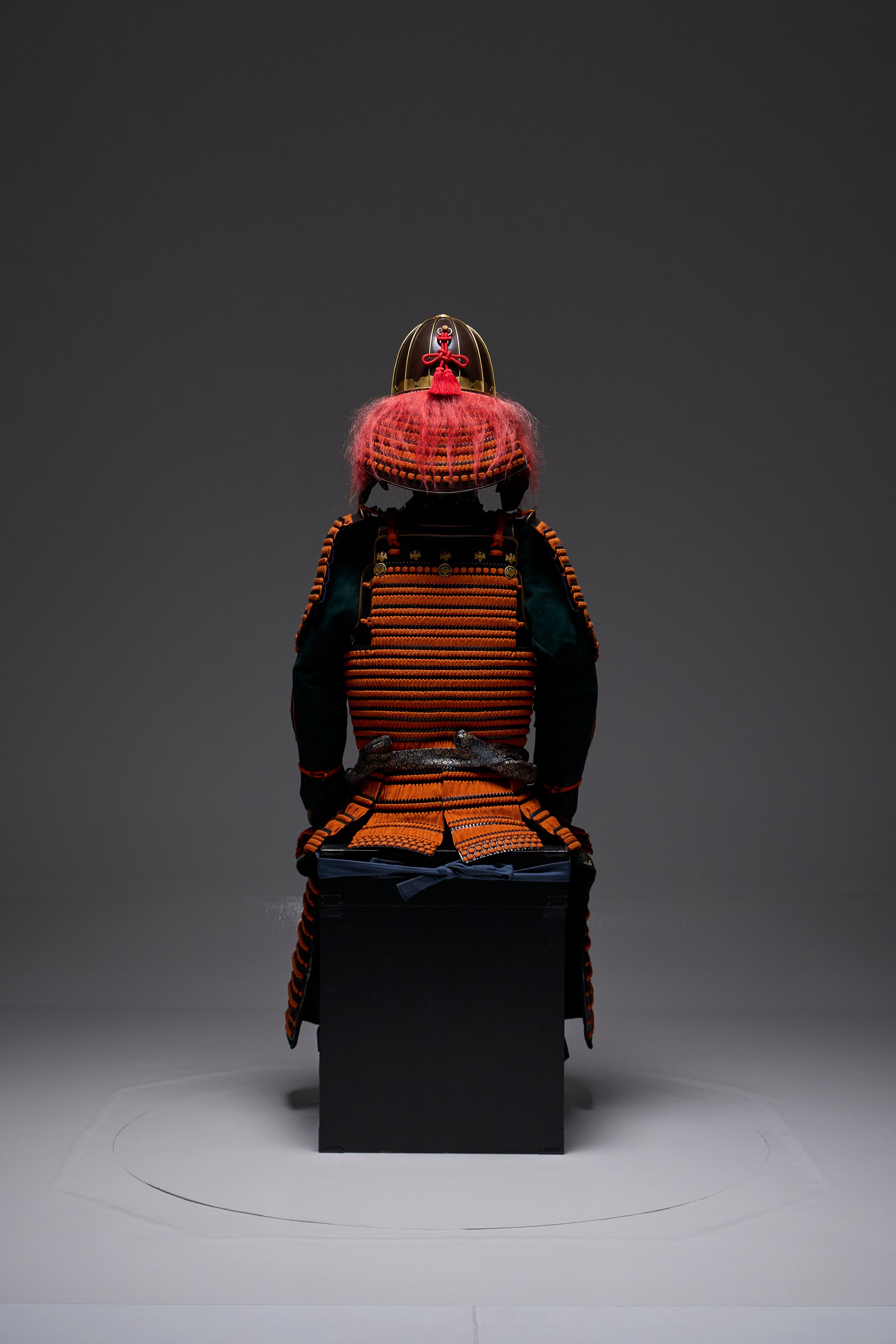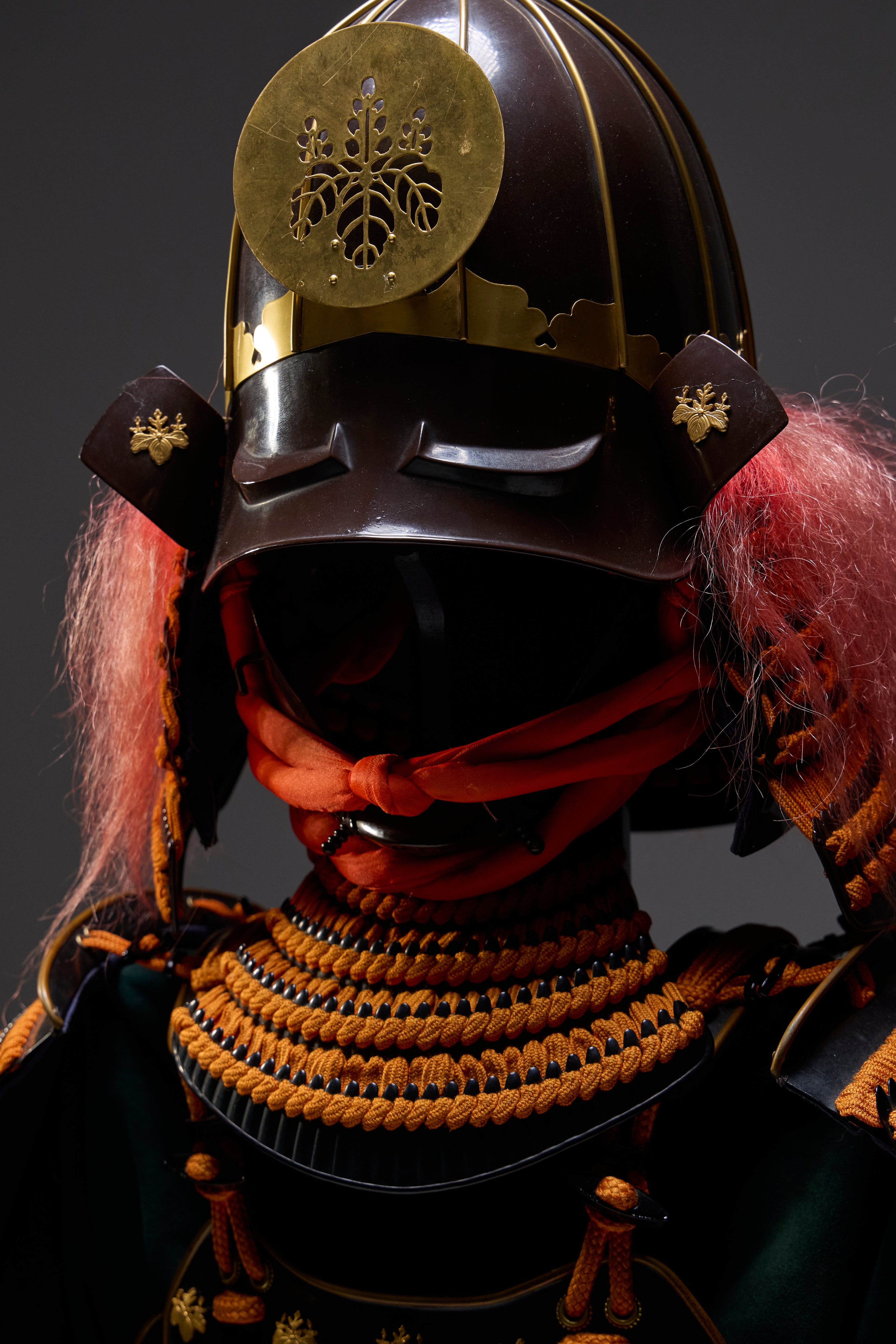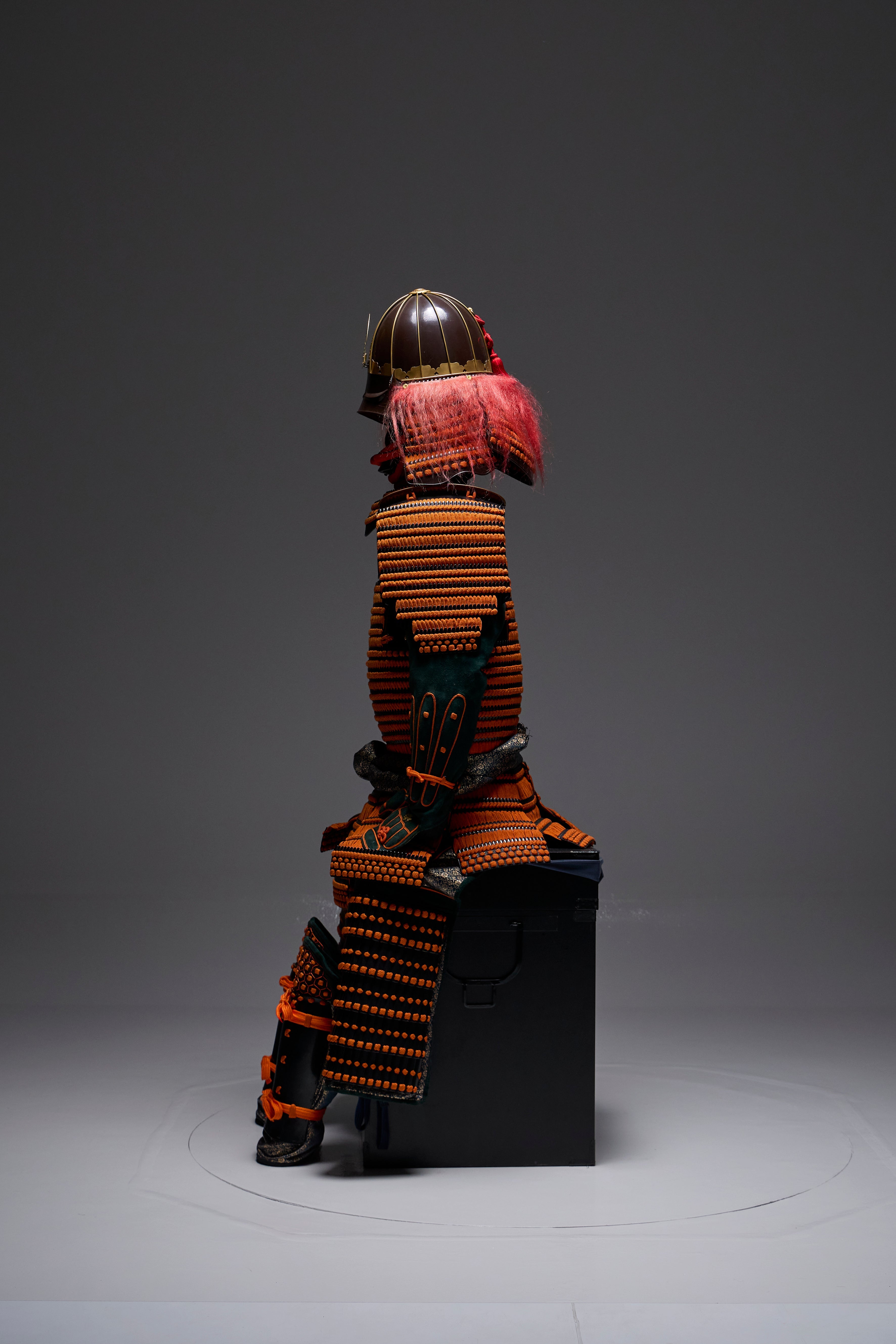 ●Specifications: Bowl: Tea-style painted 10-ken rim; Shimizu-gata suji-zukuri helmet stand; Genuine gold leaf-pressed paulownia crest shoulder strap; Black-style painted scarlet-dyed contemporary small bills; Five-tiered torso; Black-style painted scarlet-dyed contemporary small bills; Two-piece torso sleeves; Black-style painted scarlet-dyed contemporary small bills; Seven-tiered grass skirt; Black-style painted scarlet-dyed contemporary small bills; Four-tiered gauntlets; Three black leather pouches; Shino-gauntlets; Black-style painted three-piece; Tsutsumi-gai-date; Black-lacquered board-style gauntlets