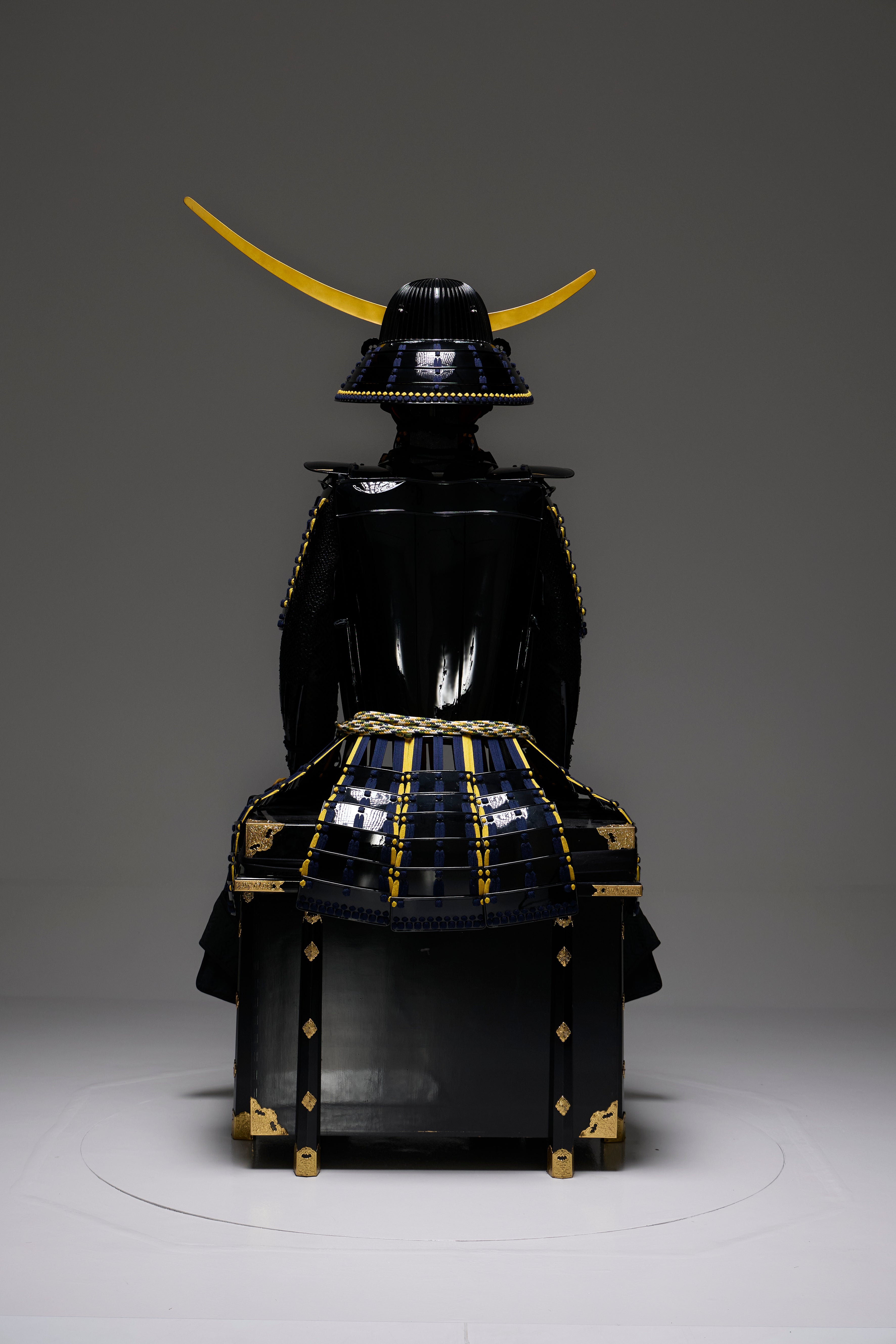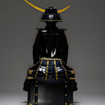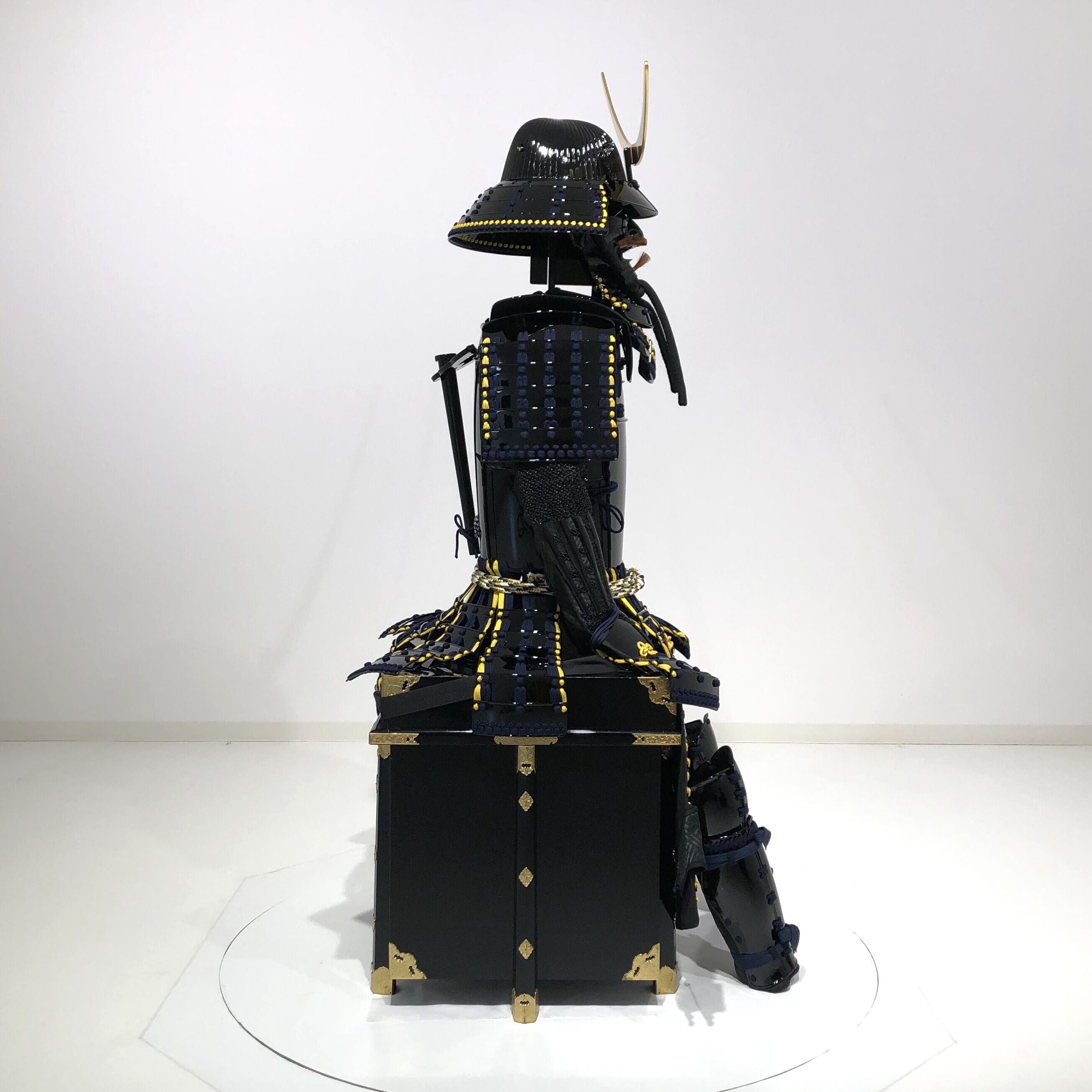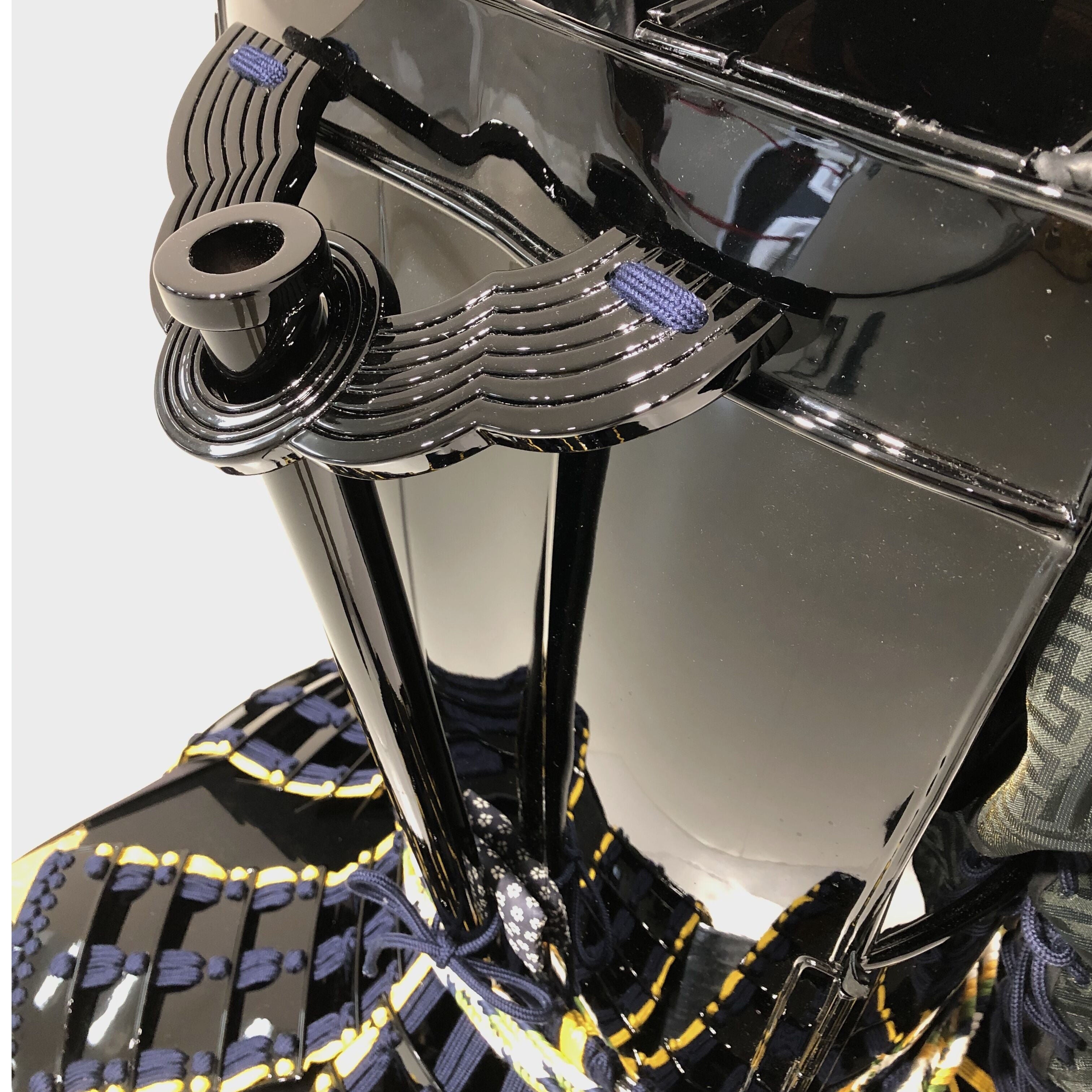 ●Specifications Helmet bowl: 62-ken striped helmet stand, real gold leaf applied, large crescent moon front stand, navy blue thread-dyed plain hanging board, four-stage manju sash, black painted five-piece dosode, navy blue thread-dyed plain hanging board, six-stage grass-printed, navy blue thread-dyed plain hanging board, six-stage nine-ken gauntlets, black painted six-piece Shino gauntlets, black painted large standing raised shin shoulder guard, black painted tile shoulder guard