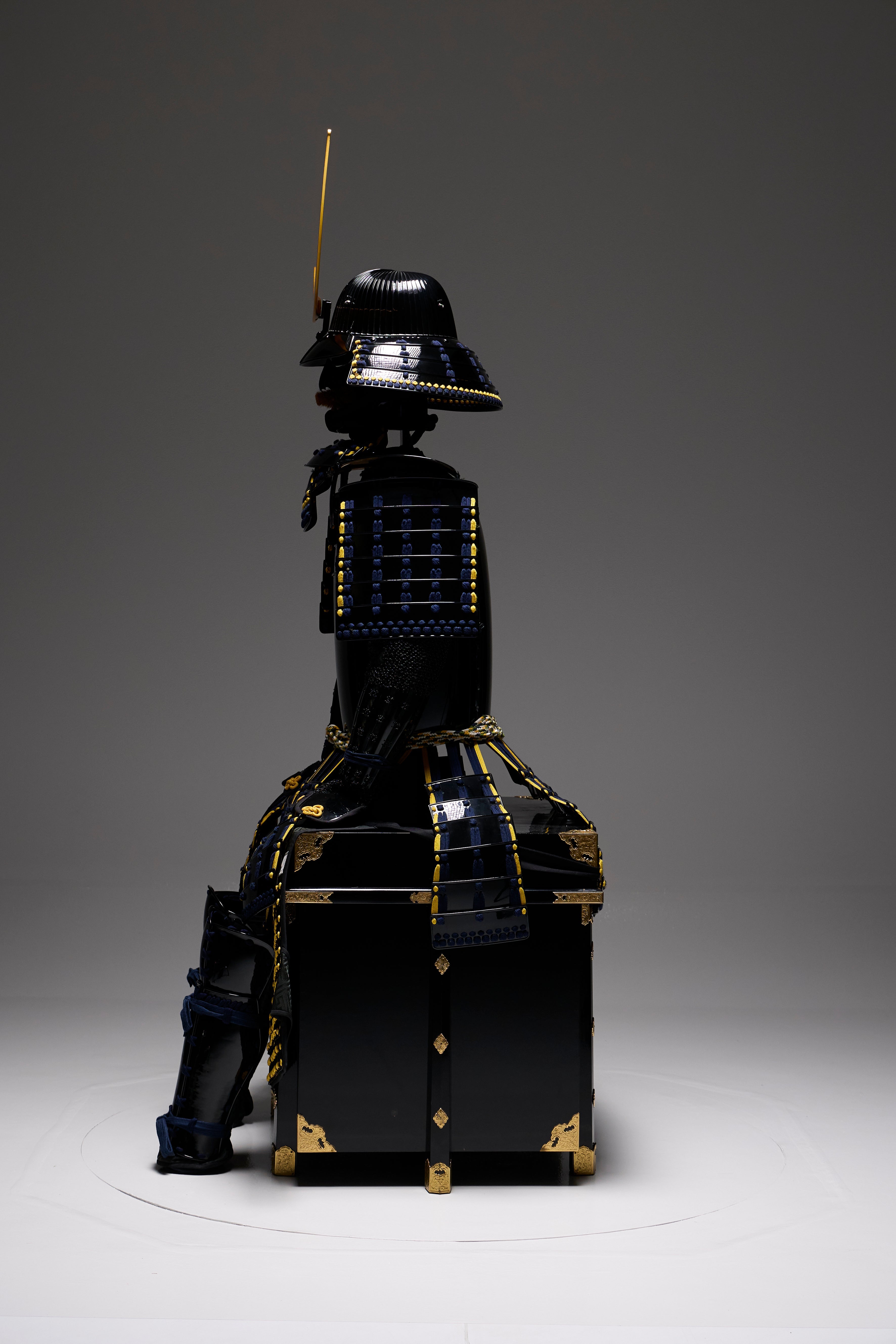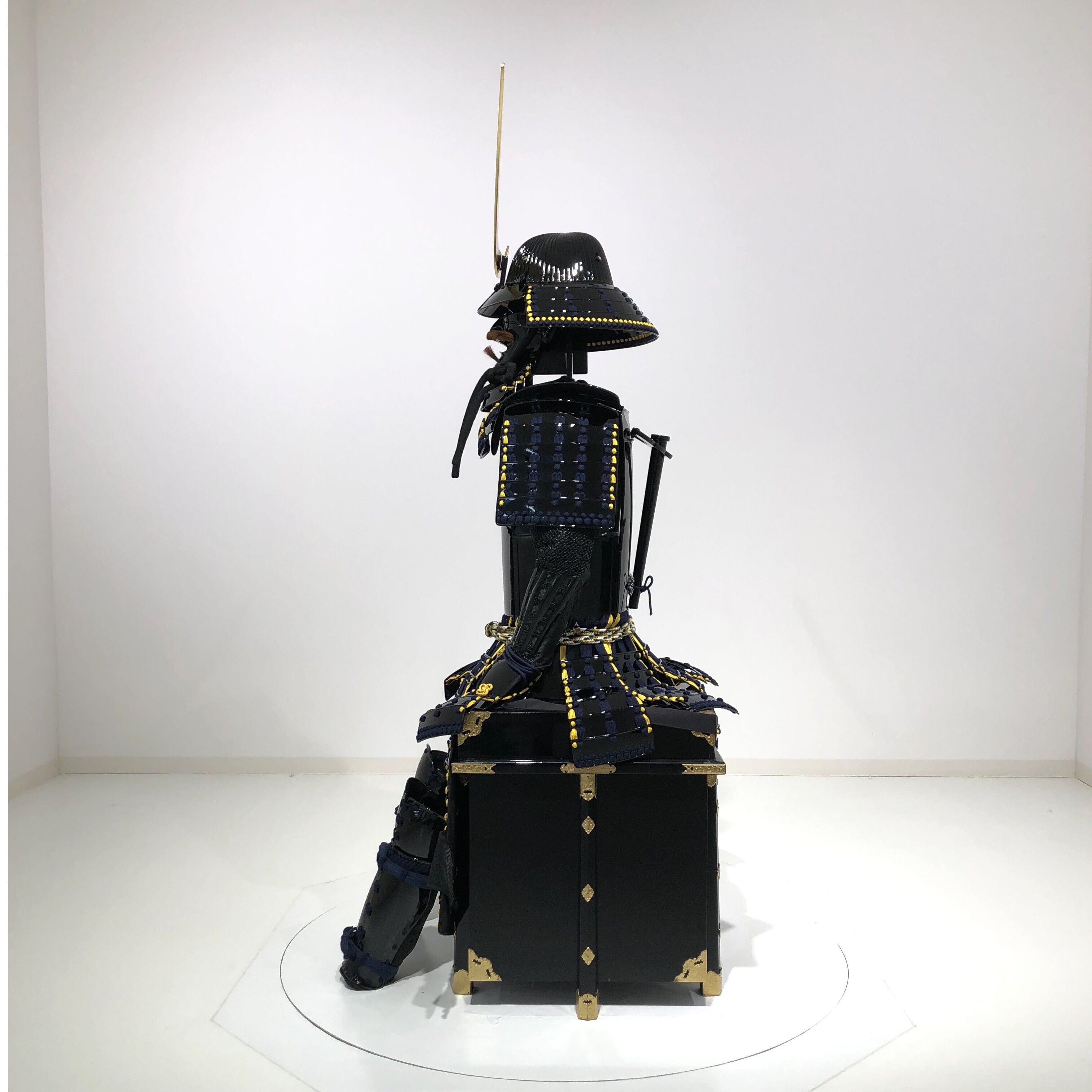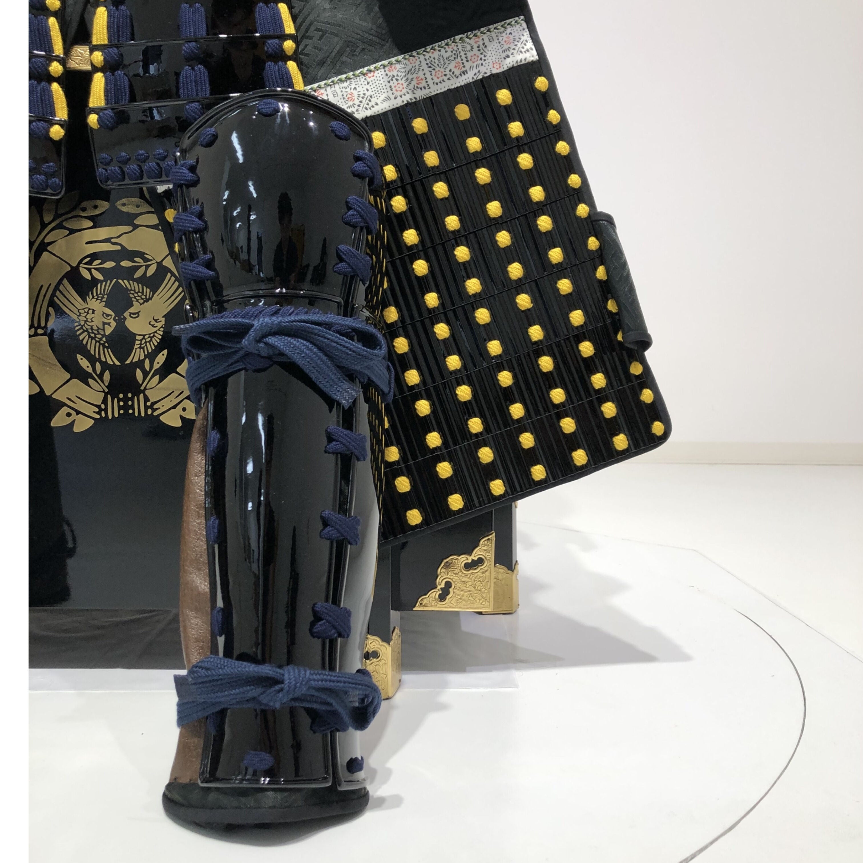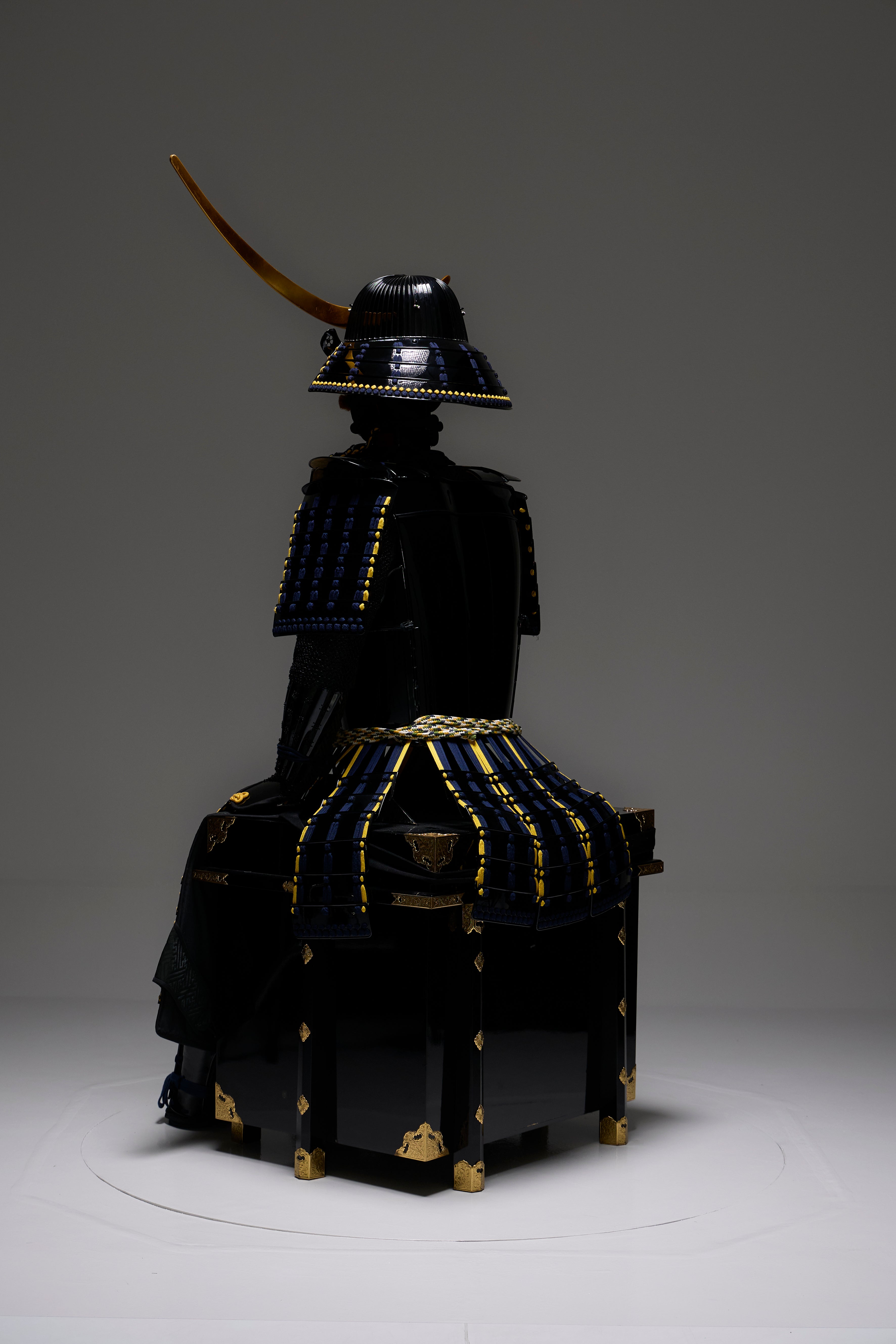 ●Specifications Helmet bowl: 62-ken striped helmet stand, real gold leaf applied, large crescent moon front stand, navy blue thread-dyed plain hanging board, four-stage manju sash, black painted five-piece dosode, navy blue thread-dyed plain hanging board, six-stage grass-printed, navy blue thread-dyed plain hanging board, six-stage nine-ken gauntlets, black painted six-piece Shino gauntlets, black painted large standing raised shin shoulder guard, black painted tile shoulder guard