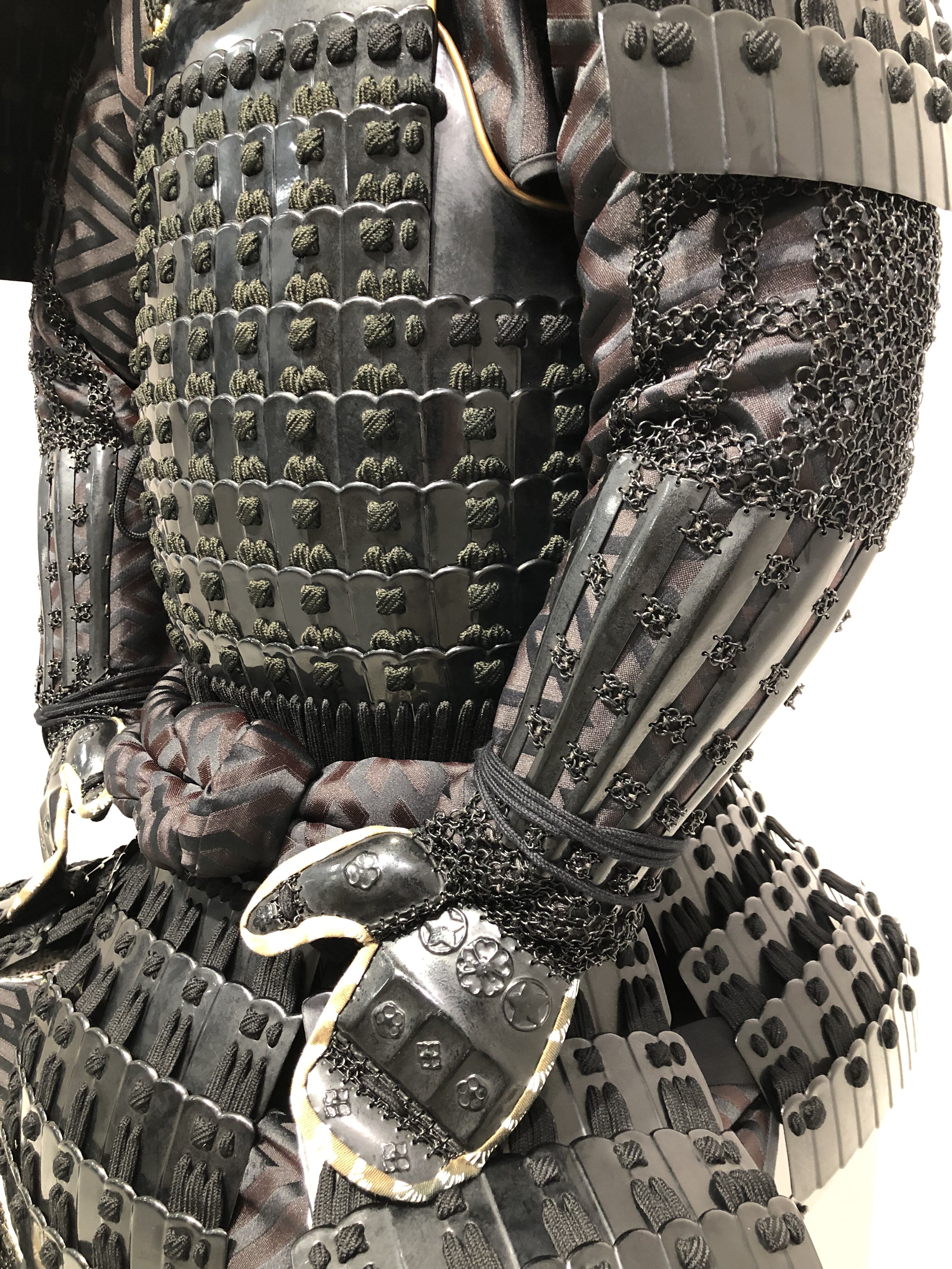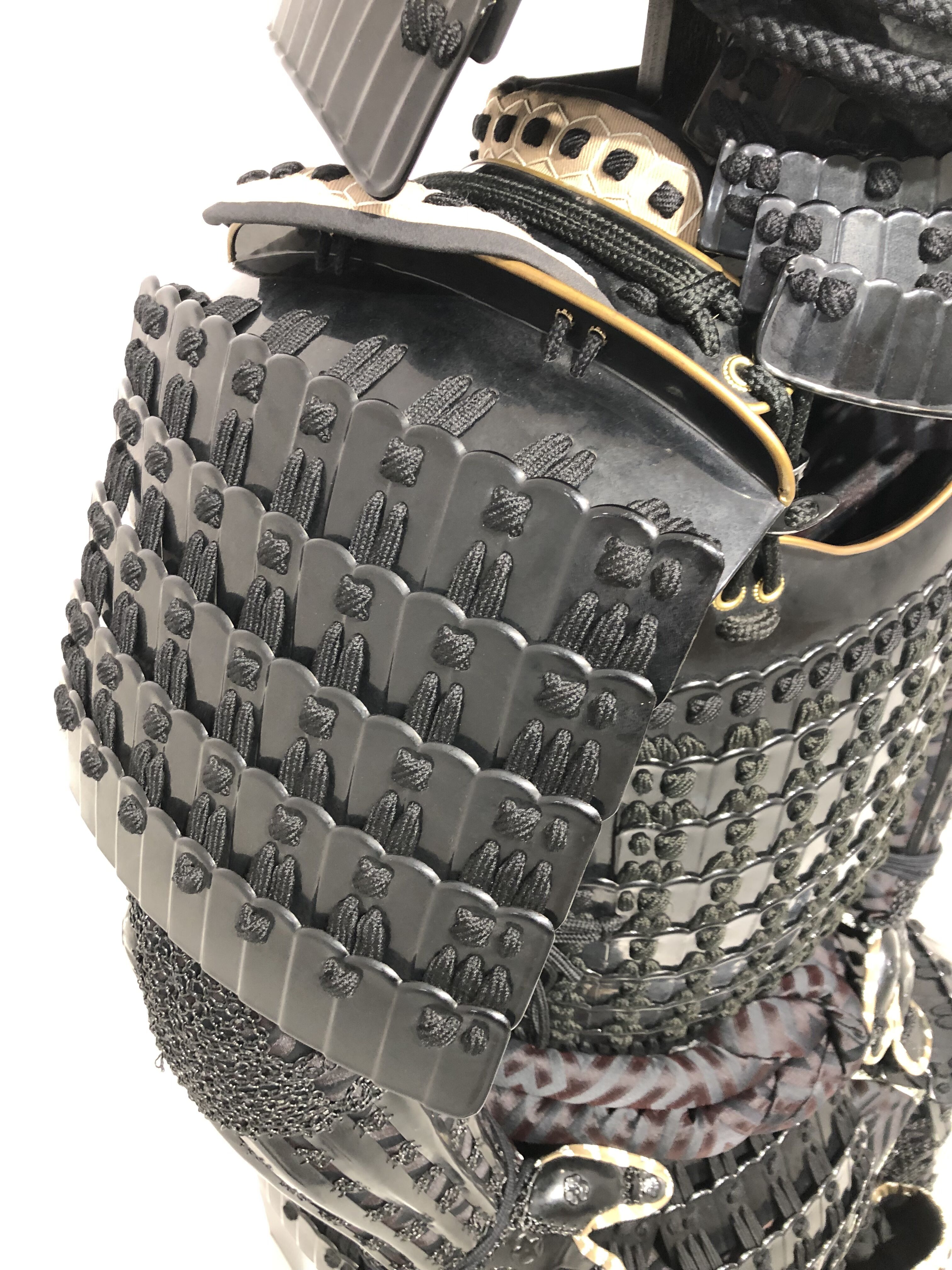Body: Black hand period painted black thread Iyo tag two-piece torso sleeves Black hand period painted black thread Iyo 6th stage grass skirt Black hand period painted black thread Iyo 5th stage gauntlets Black hand period painted shinogate shin Black hand period painted shinogate shoulder guards Black hand period painted raft shoulder guards