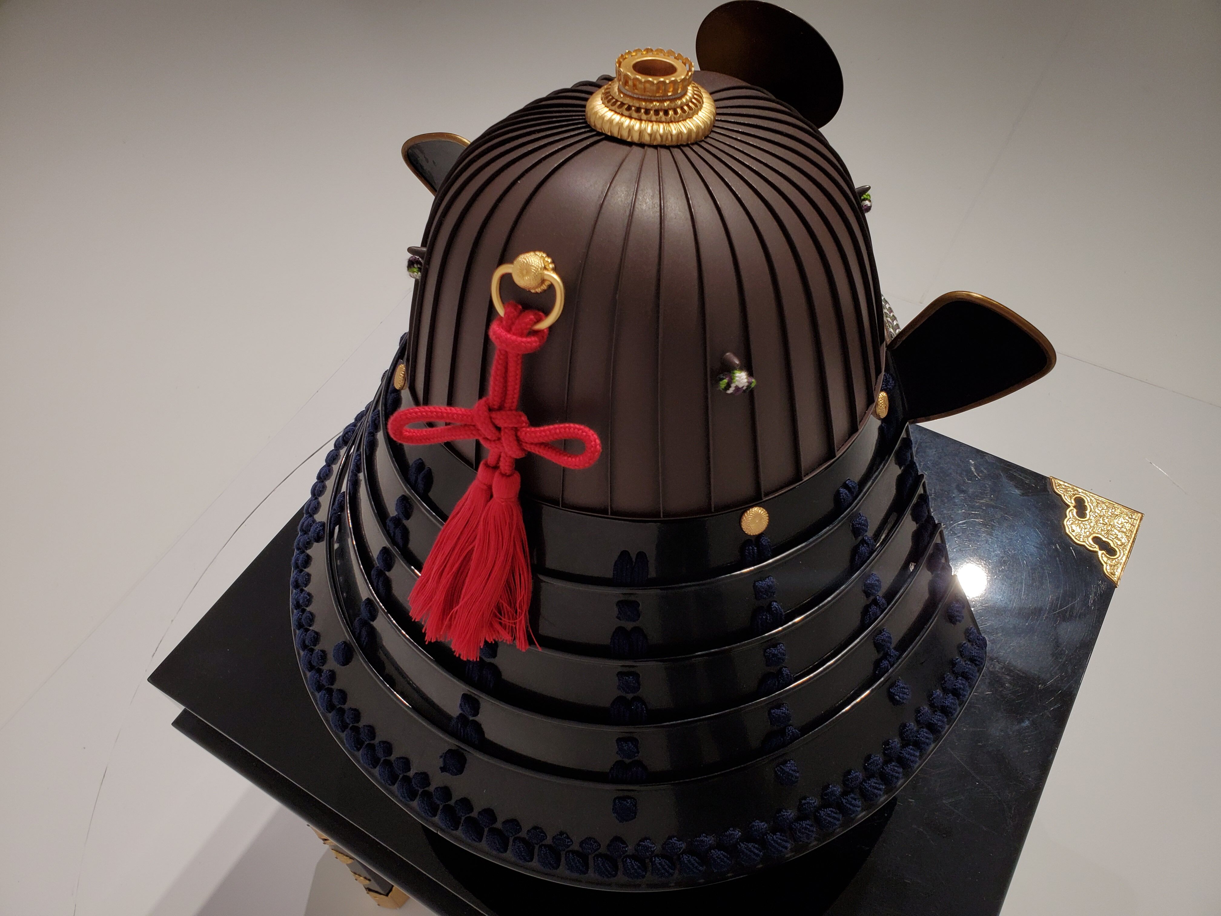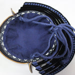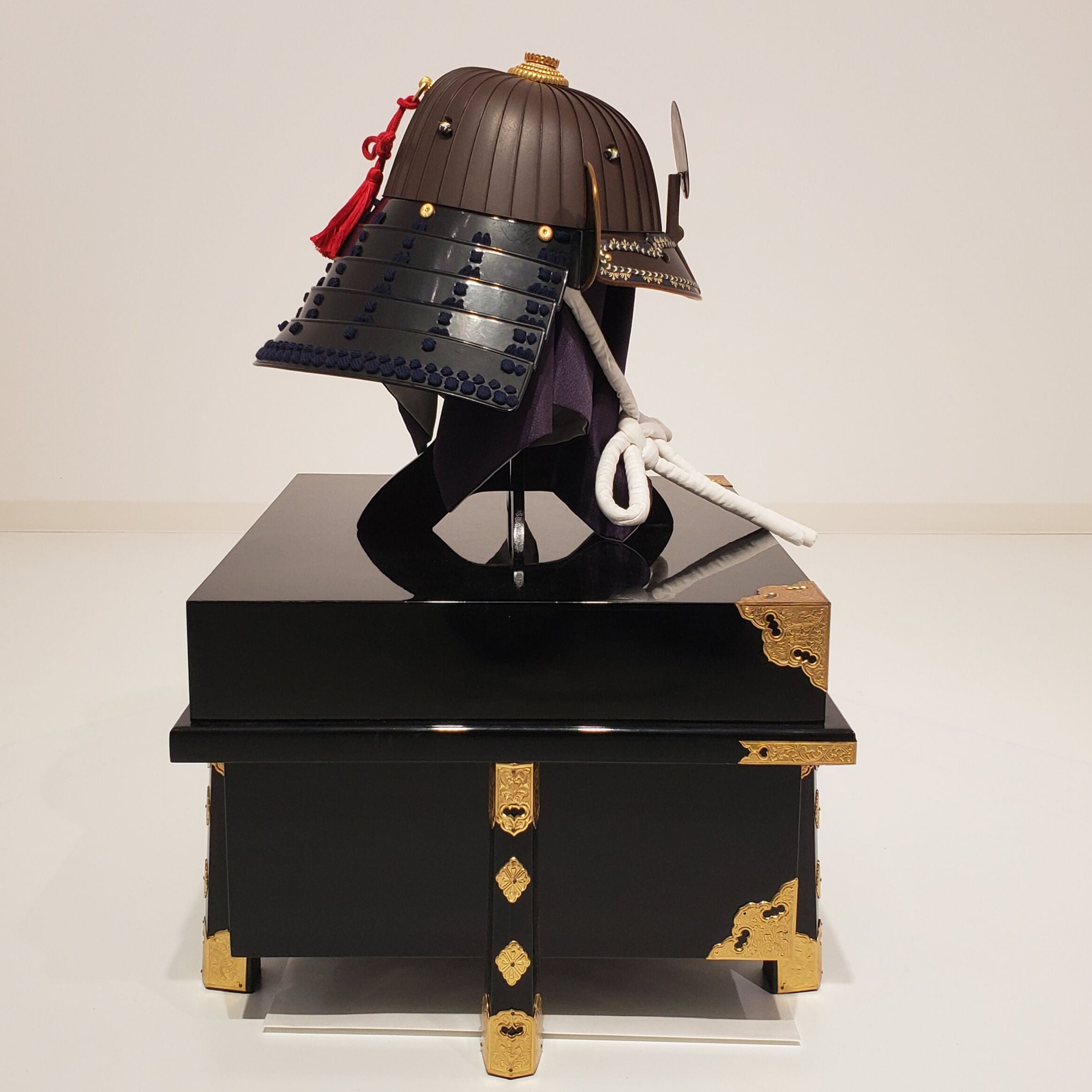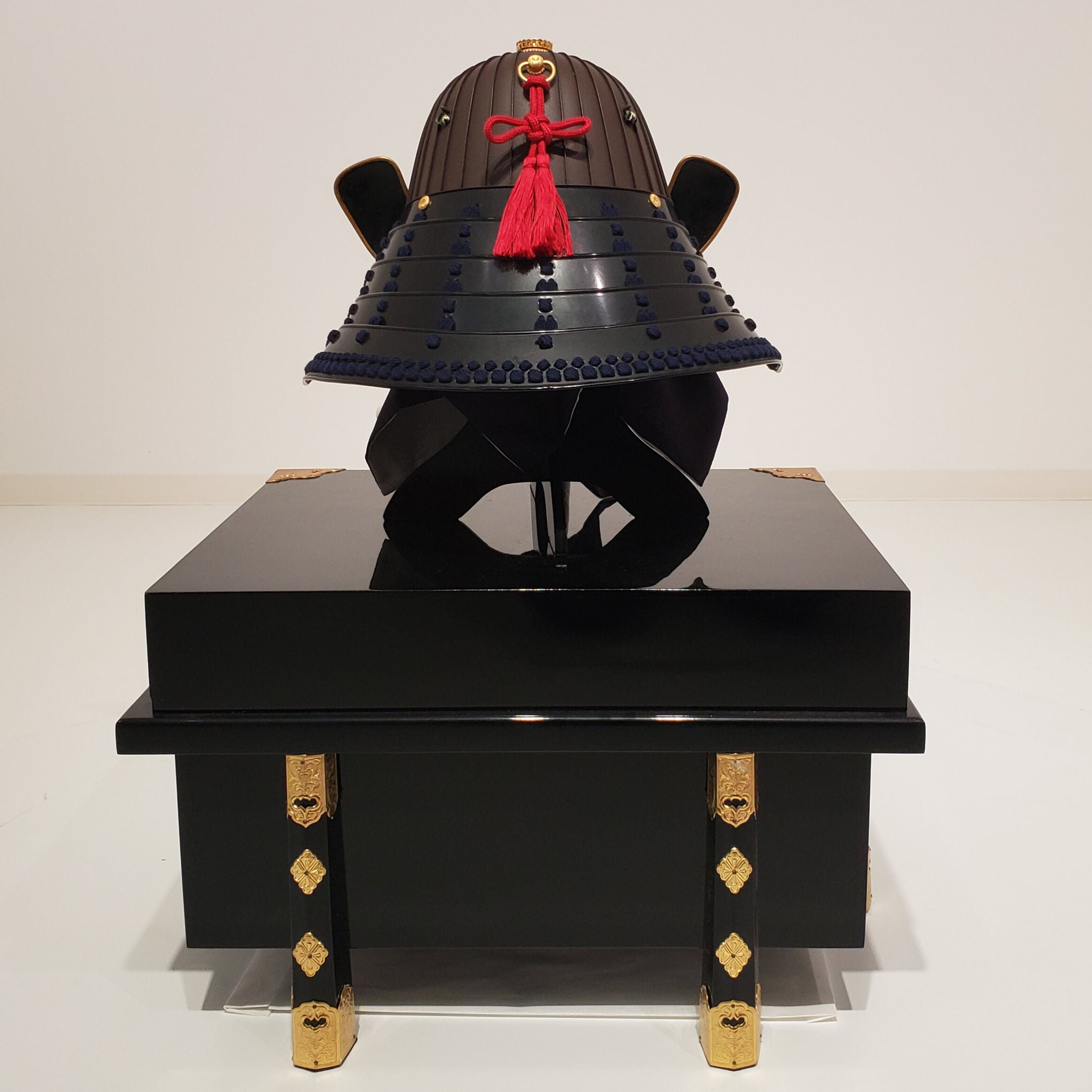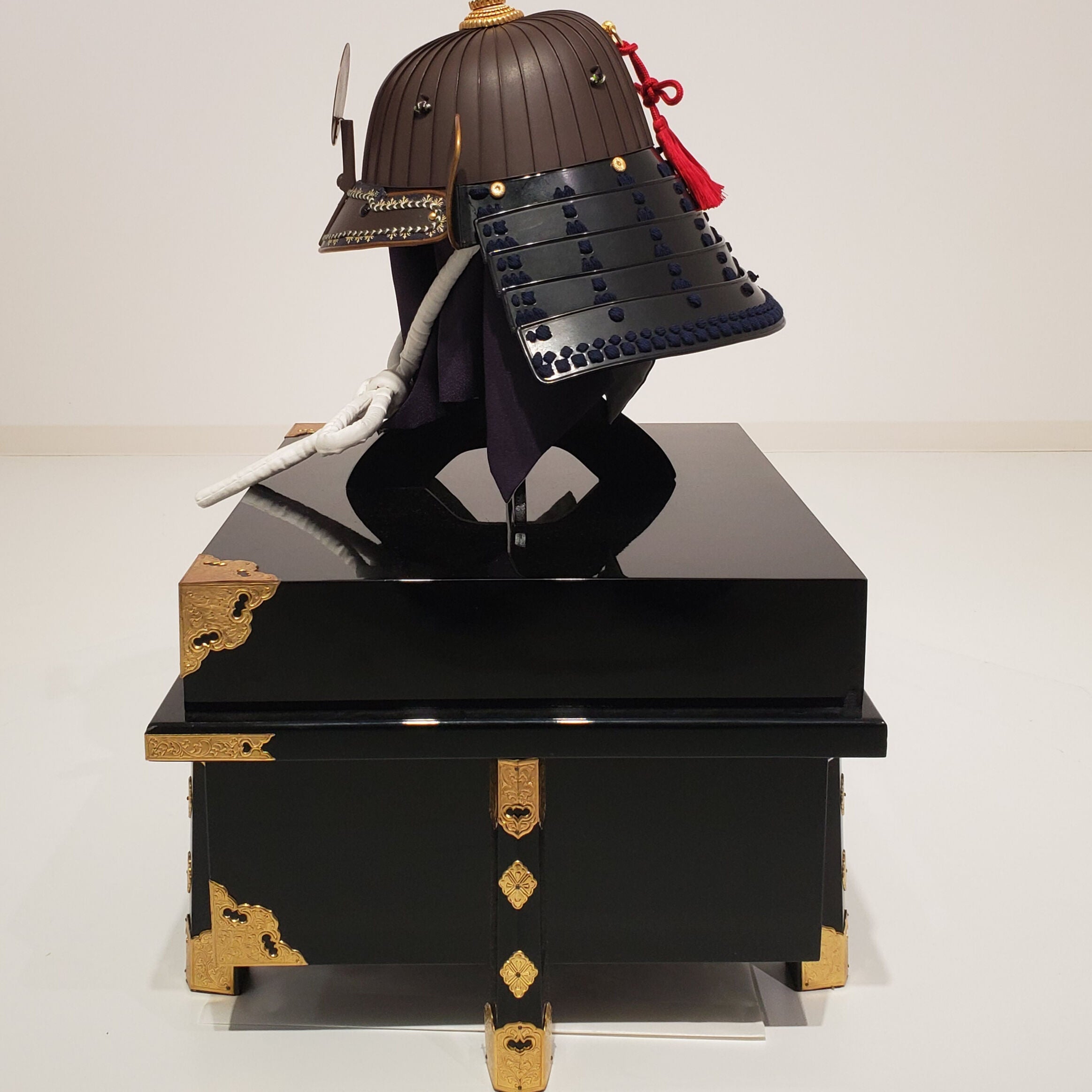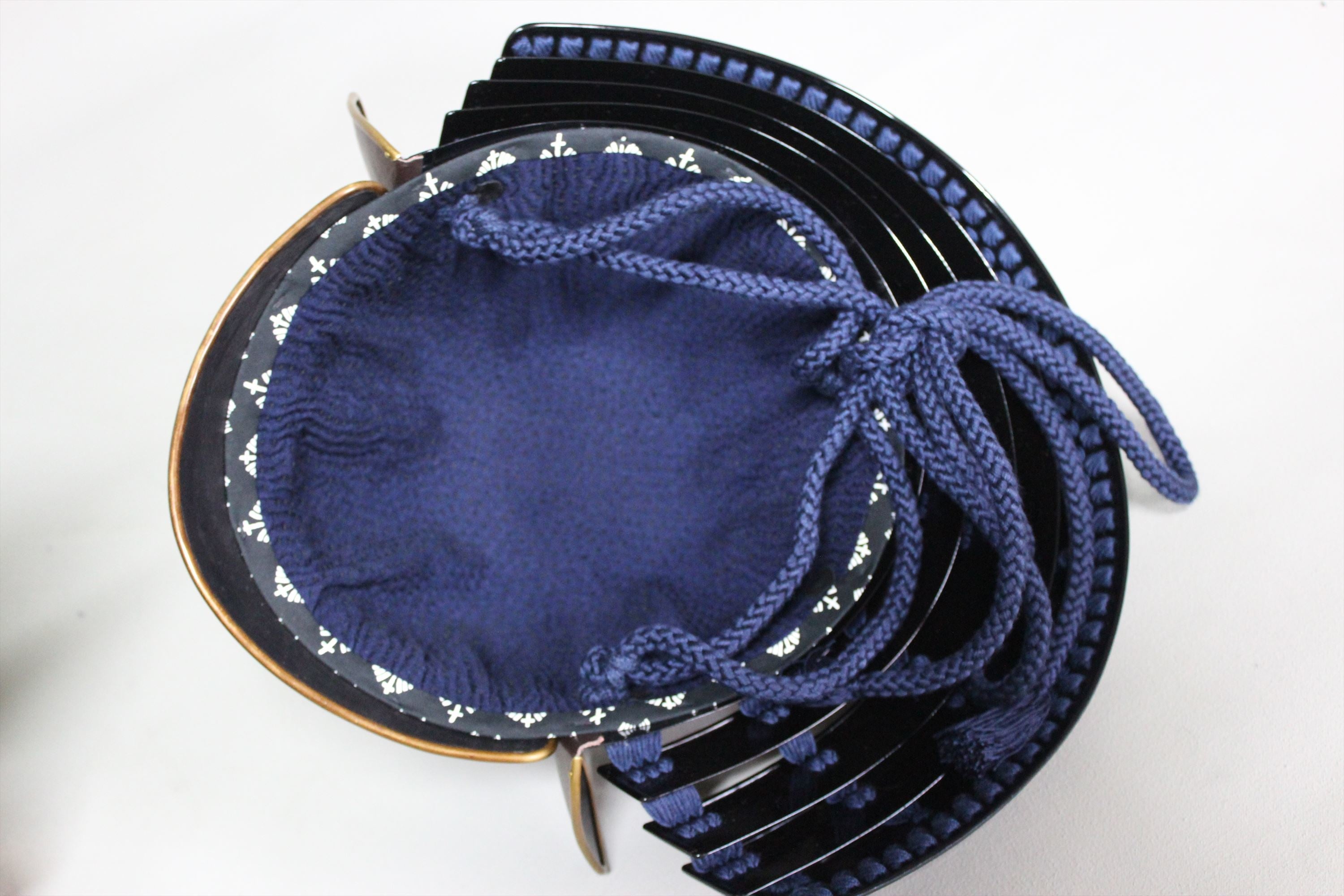 Sashika: Black-lacquered board with dark blue thread and four-stage sashika (leather-covered)