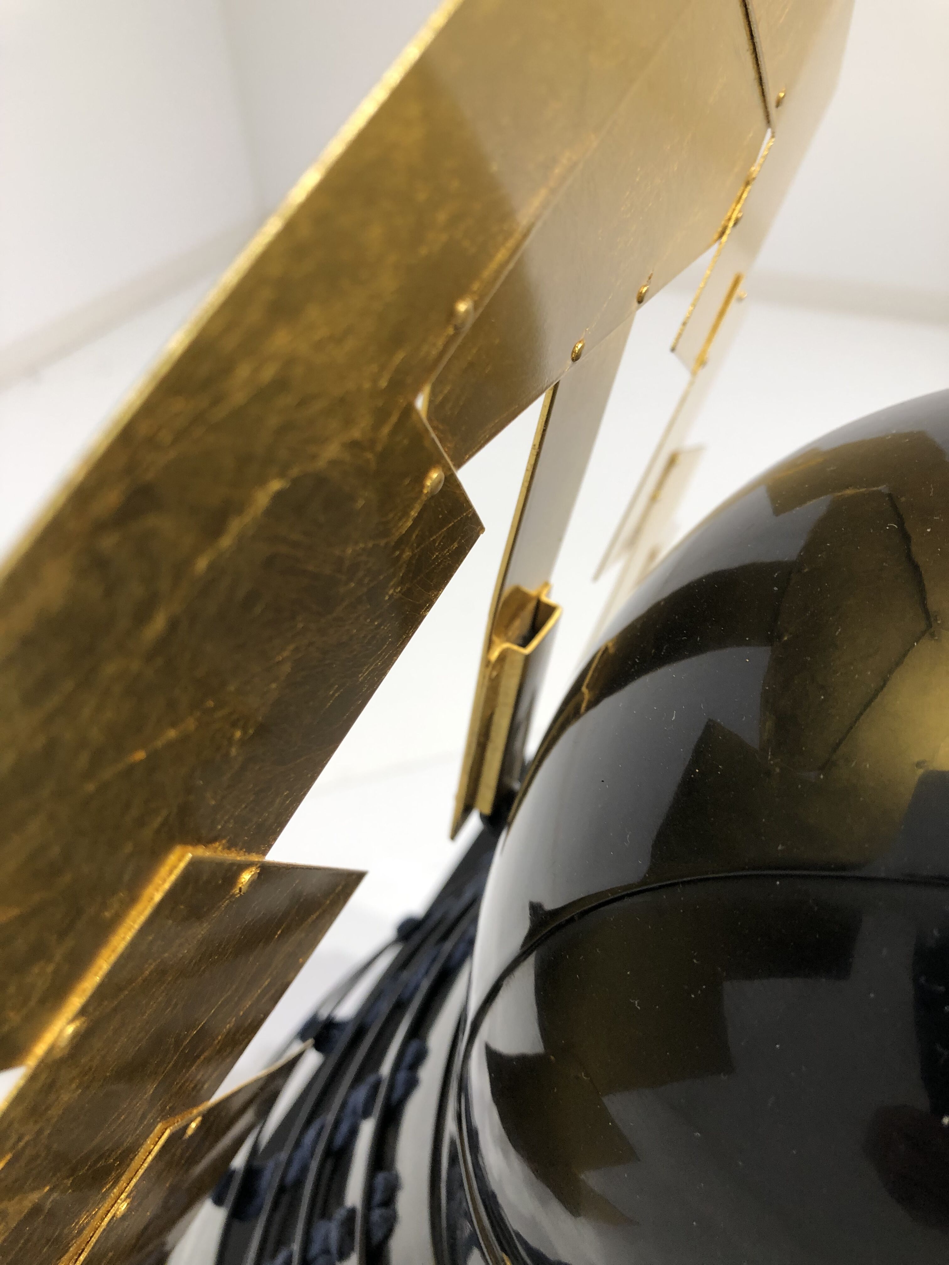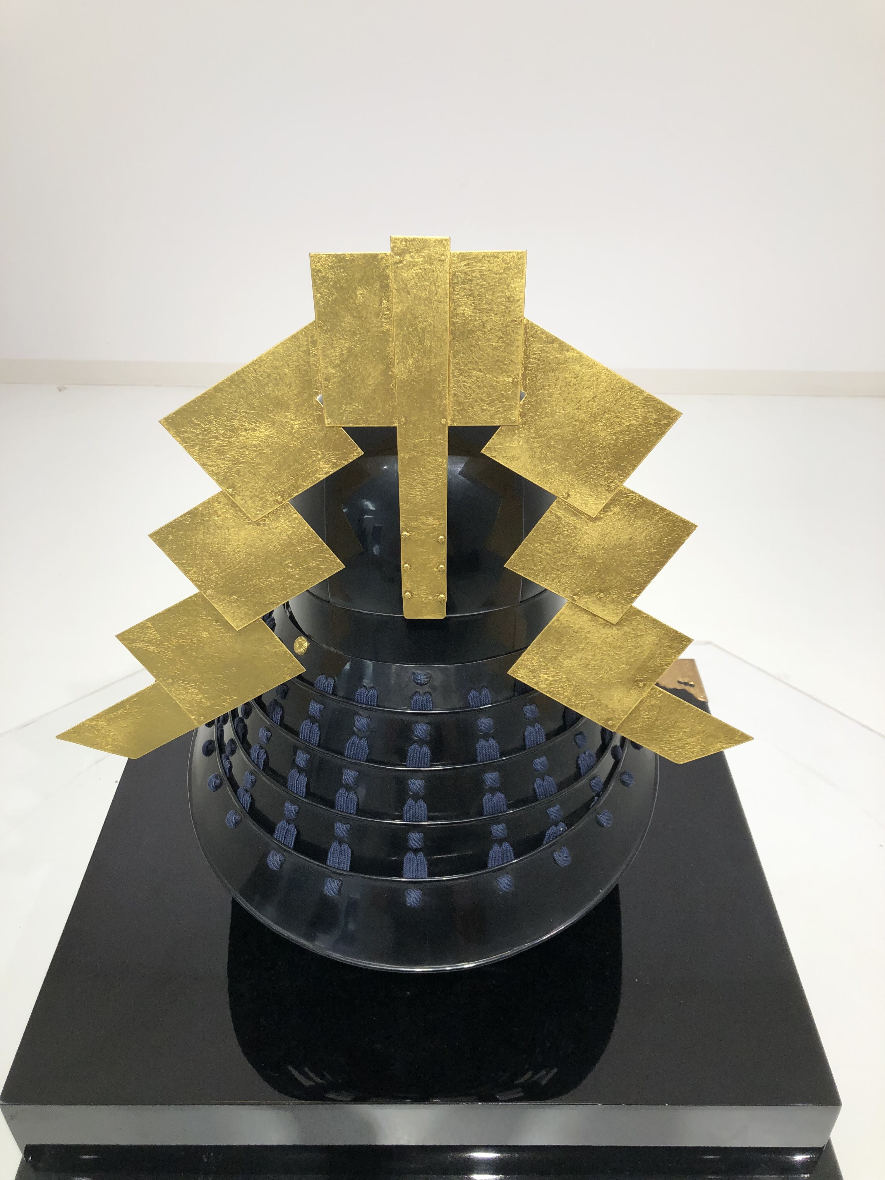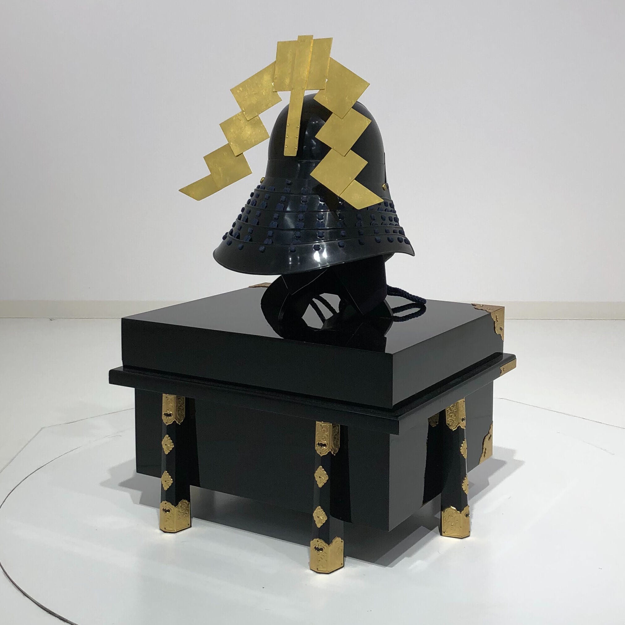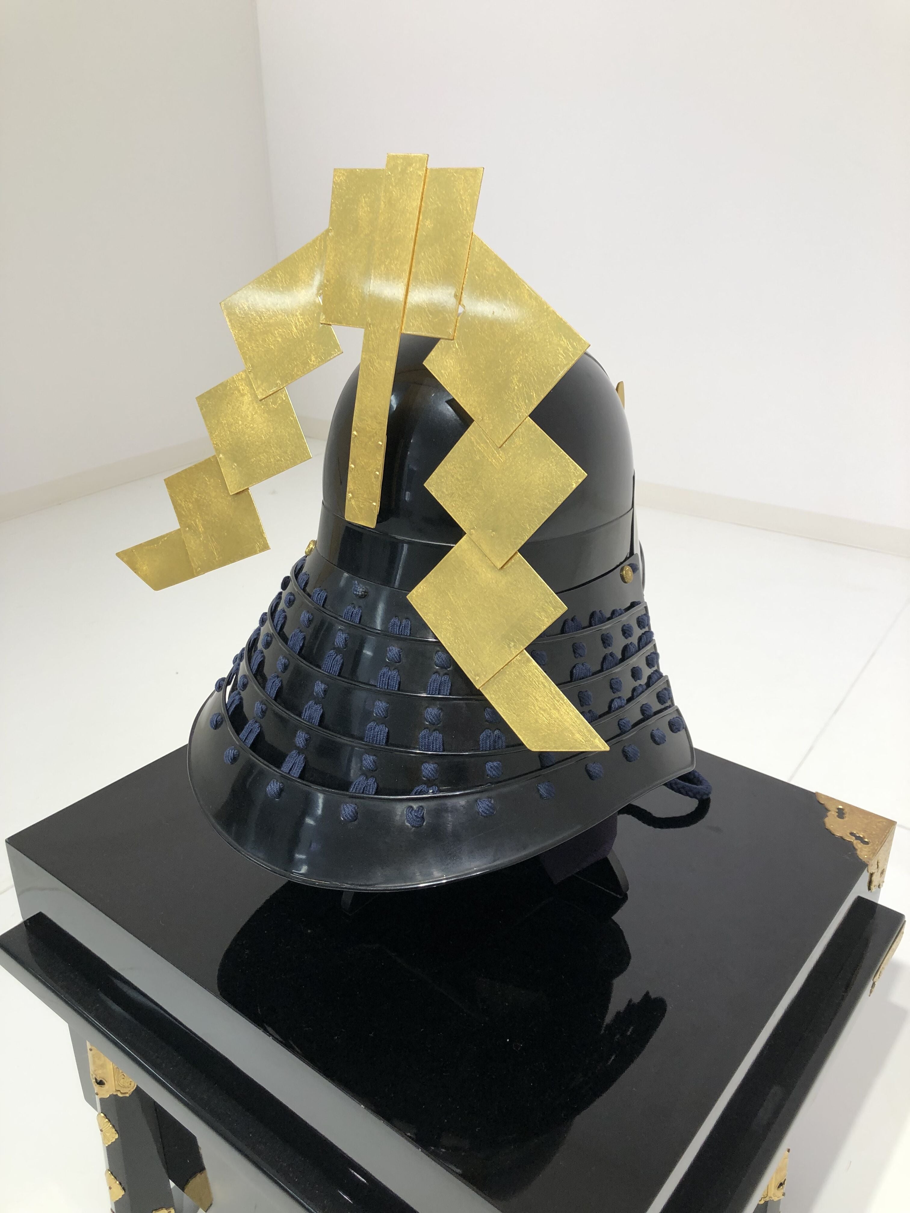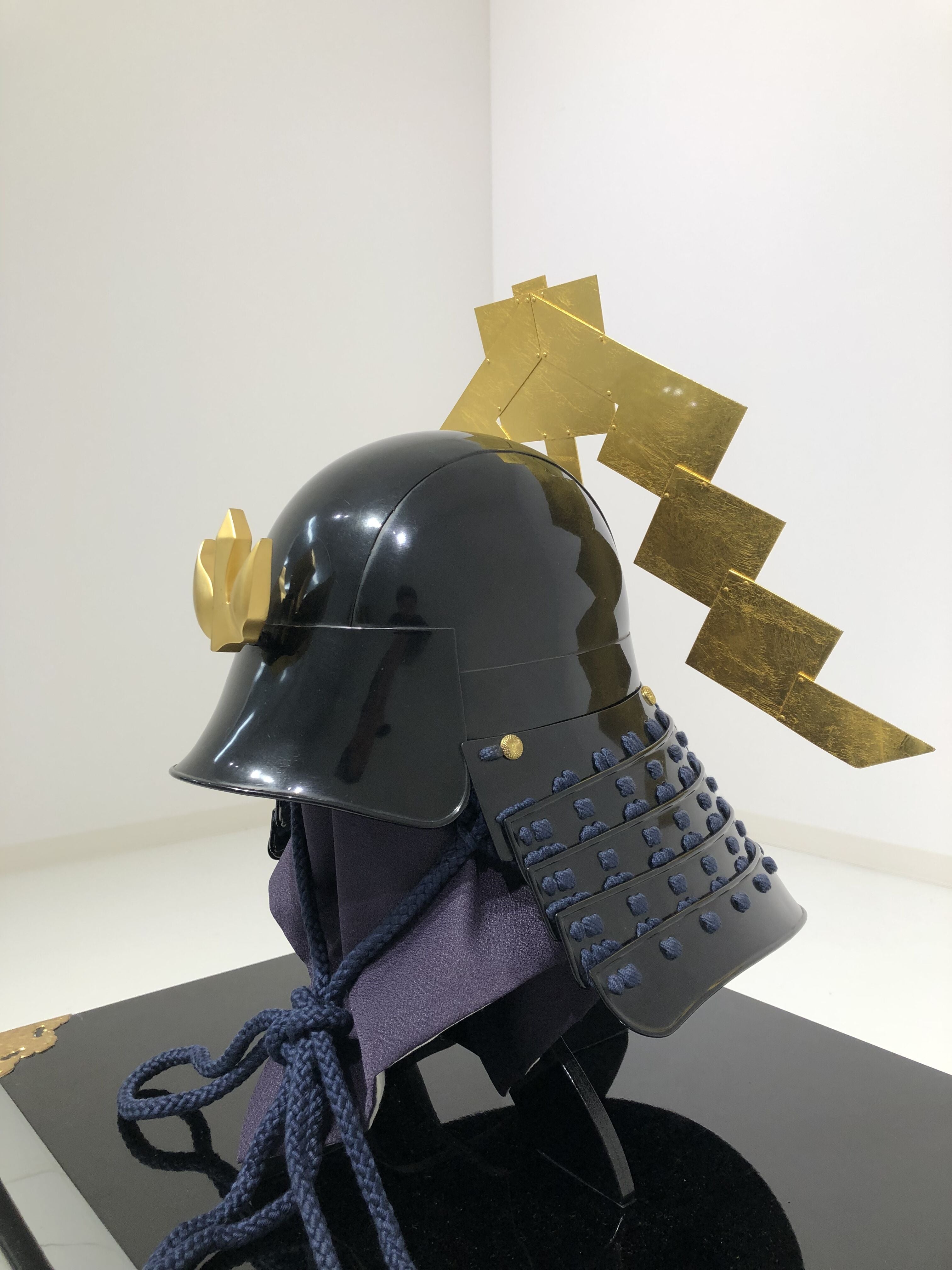 Black painted iron plate with dark blue thread and five-stage Hineno sash