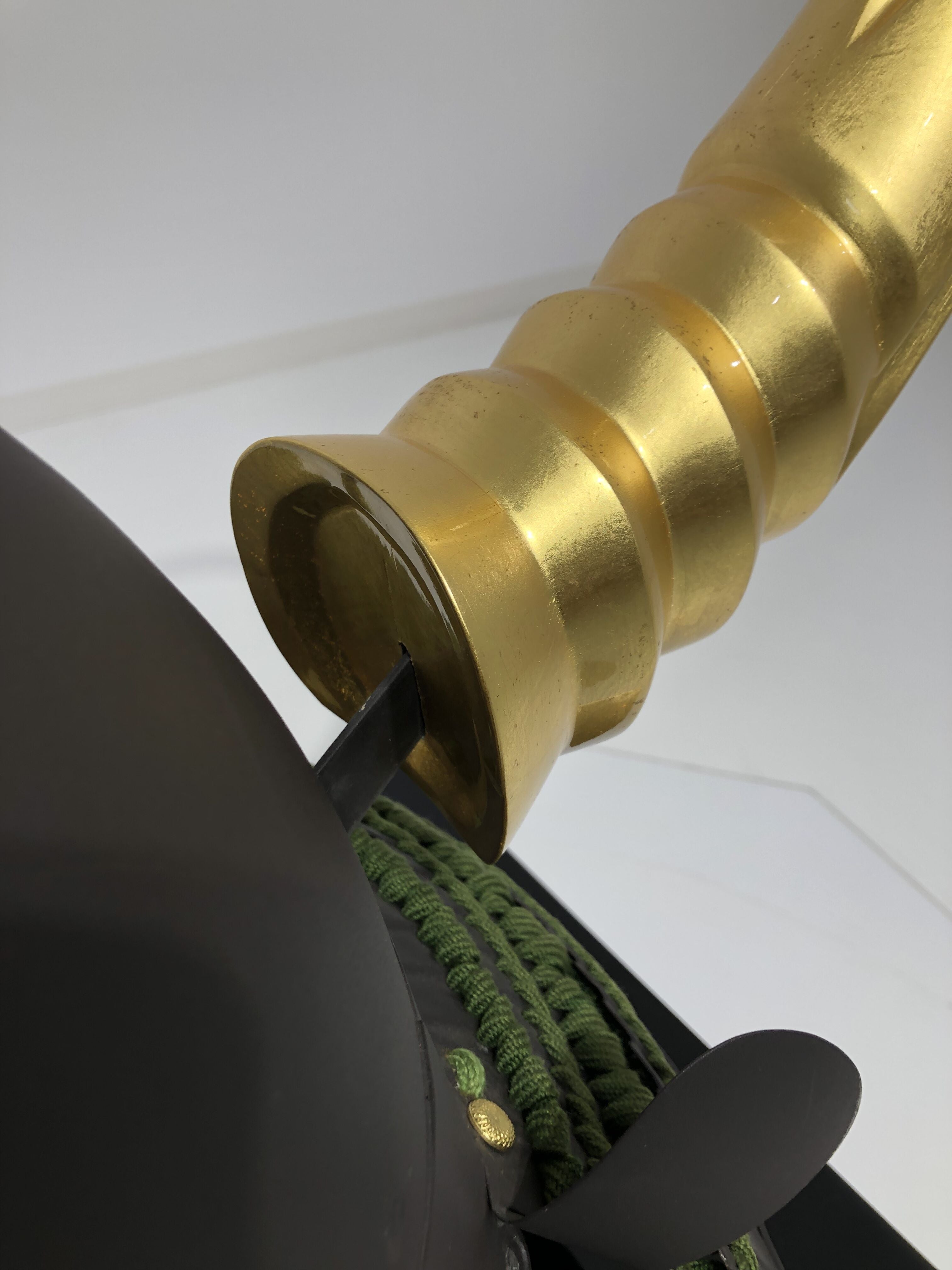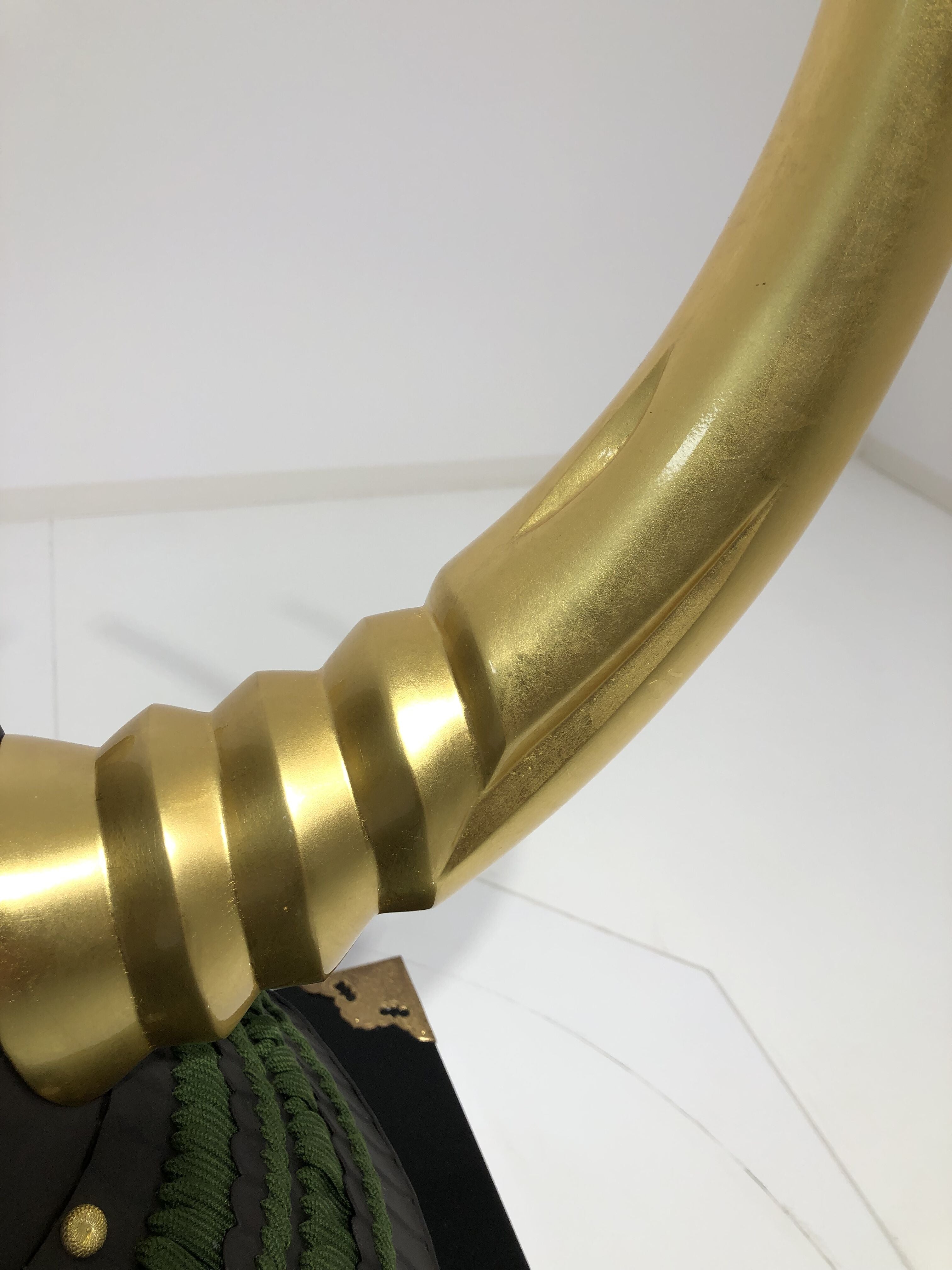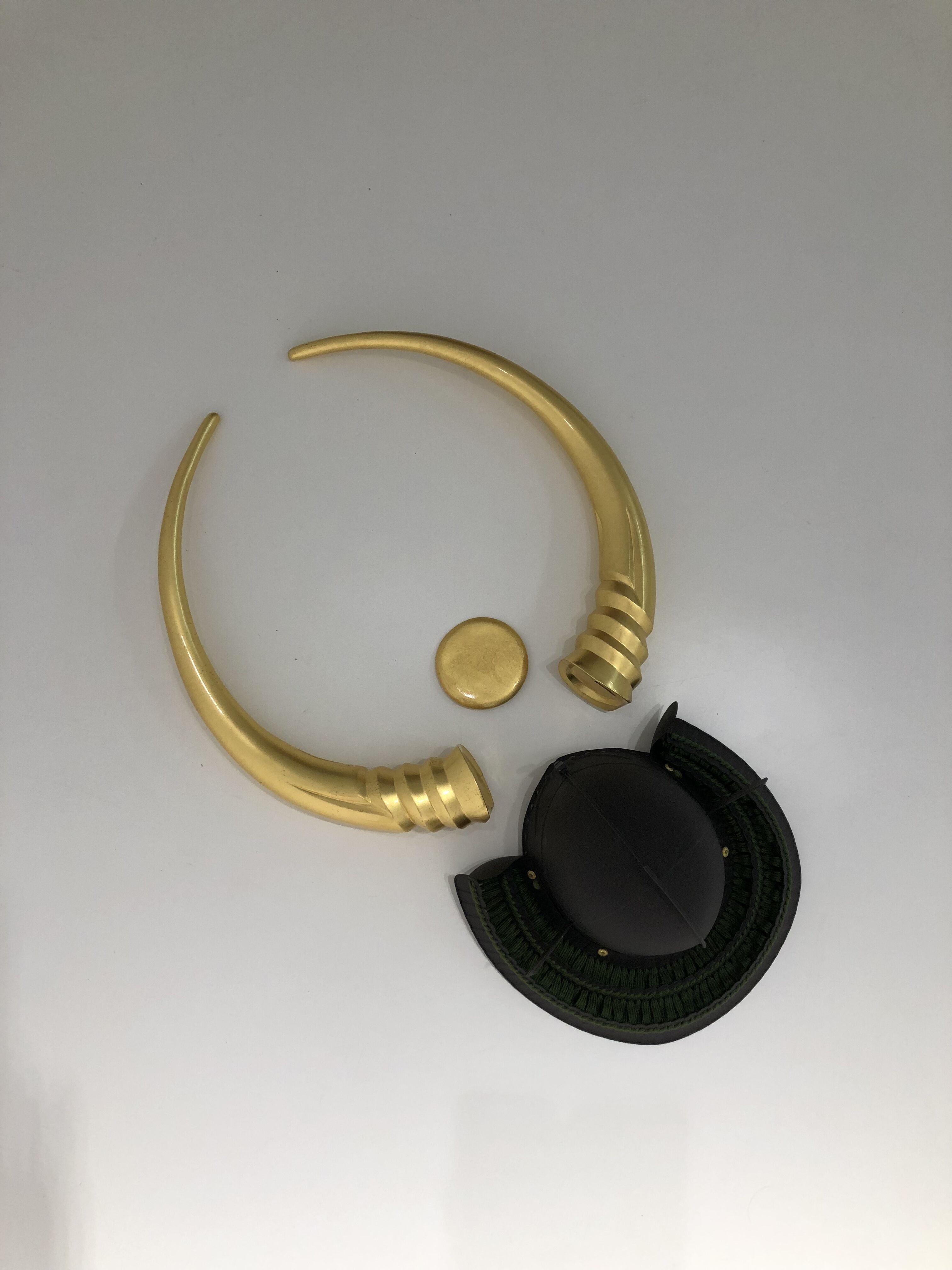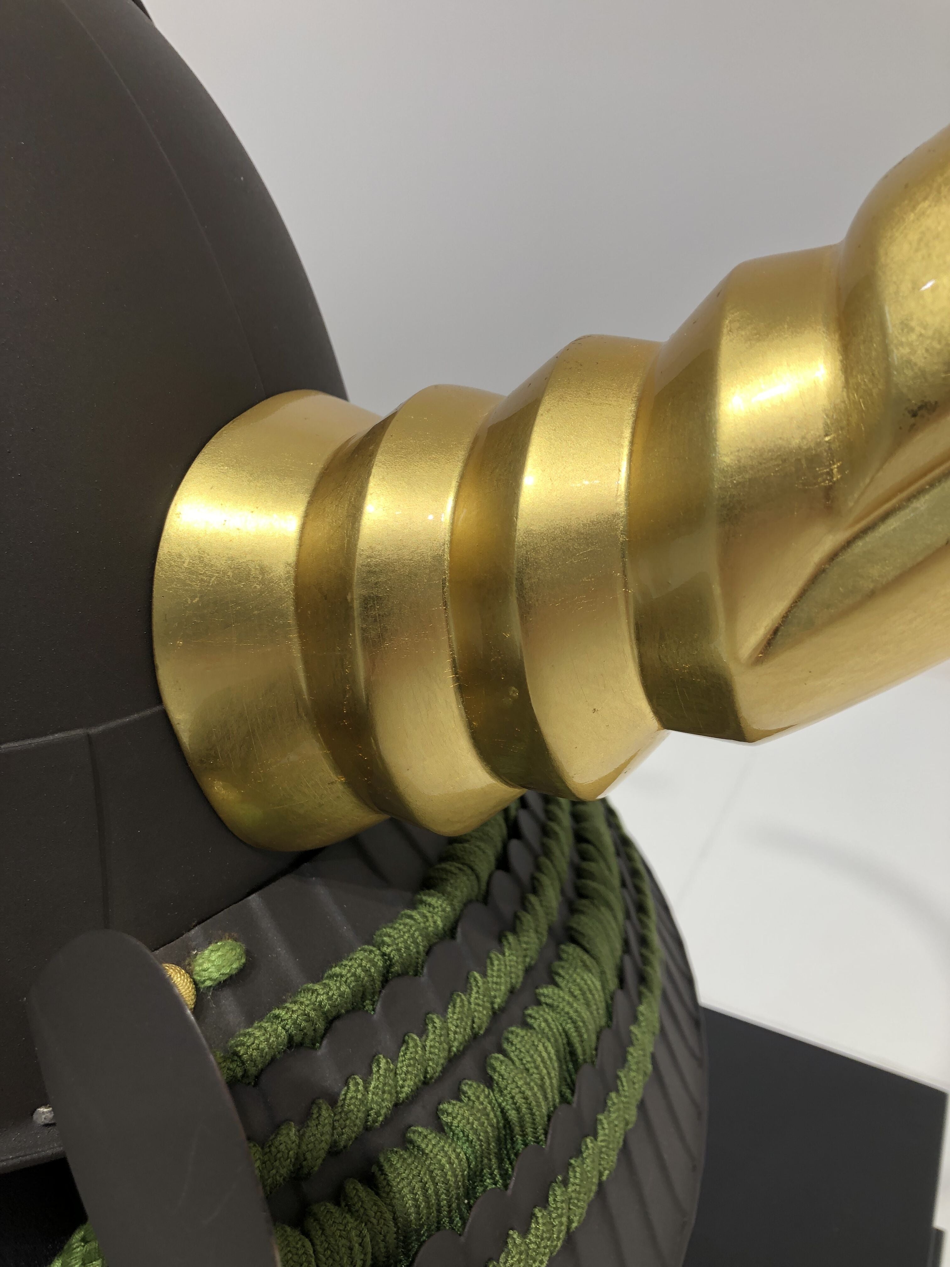 Iron, wood, leather, cotton, silk, gold powder, gold leaf