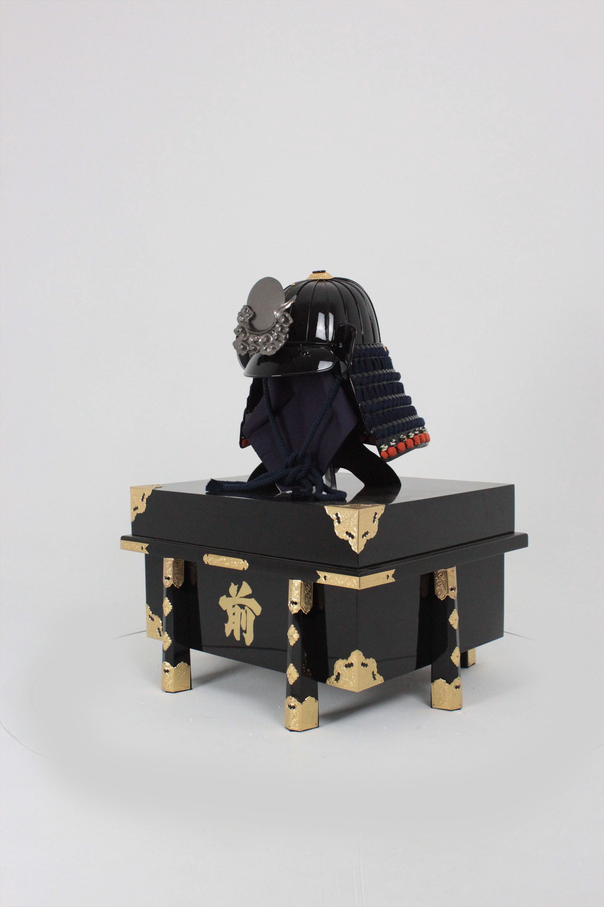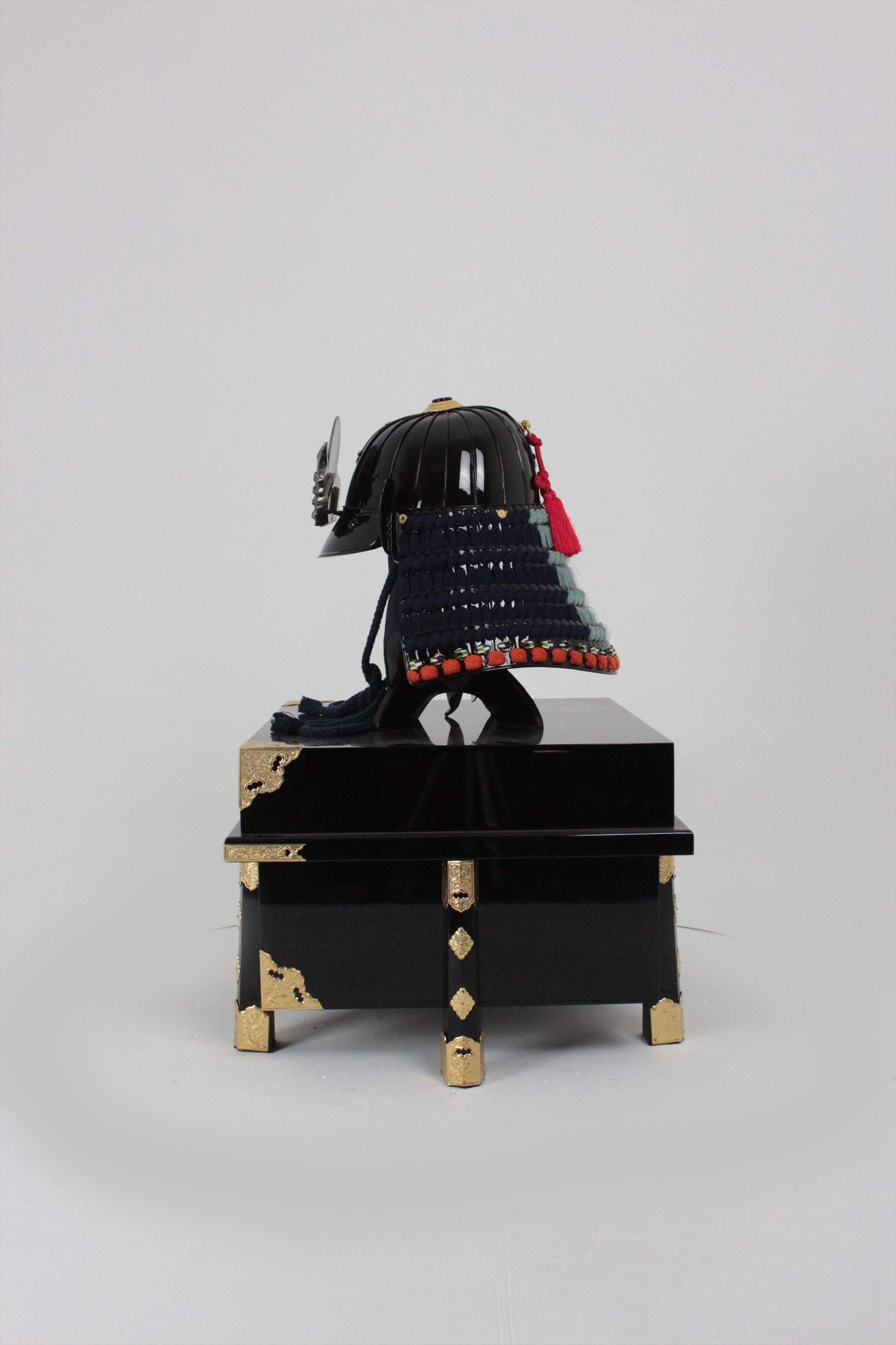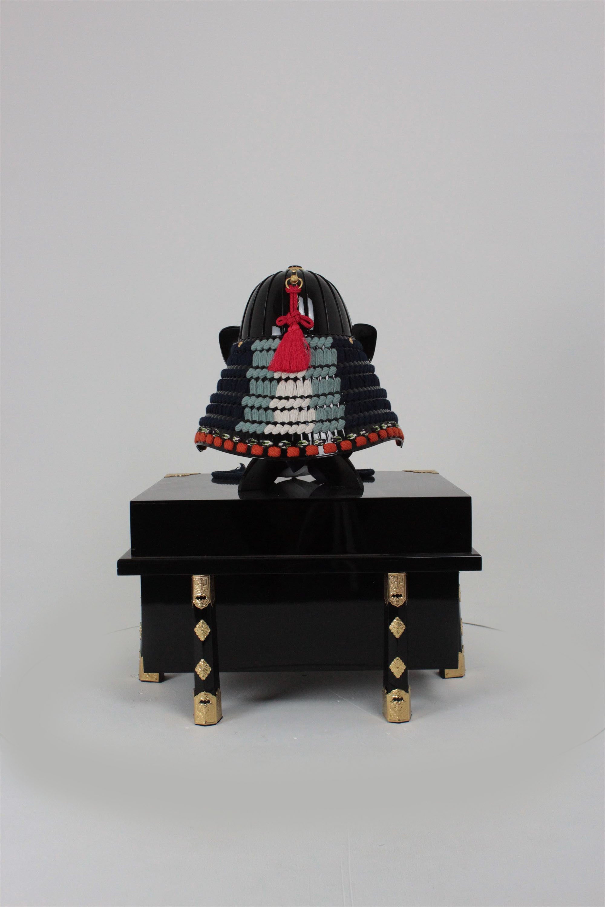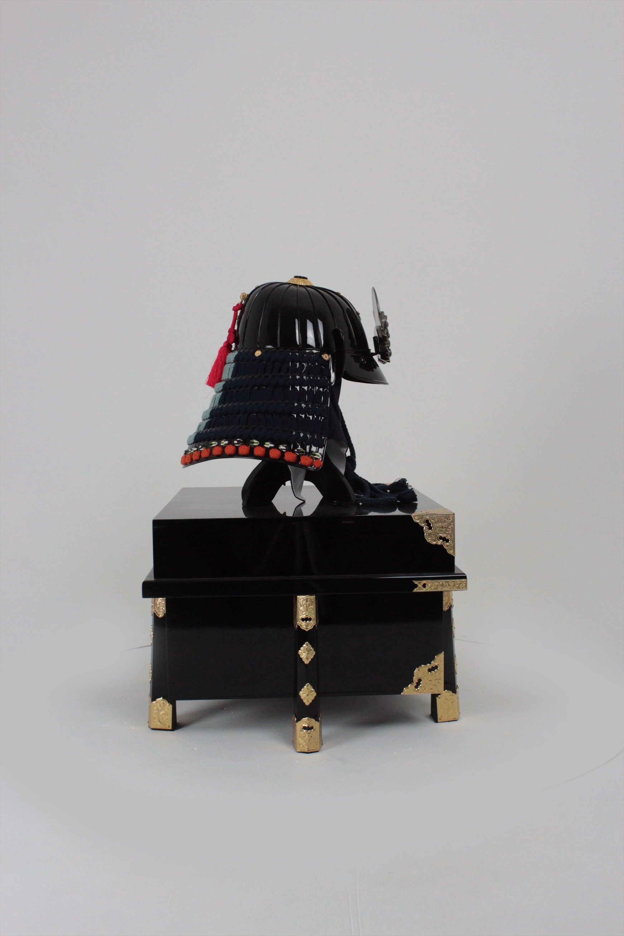 Black lacquer dark blue thread four-tiered medium-sized sash