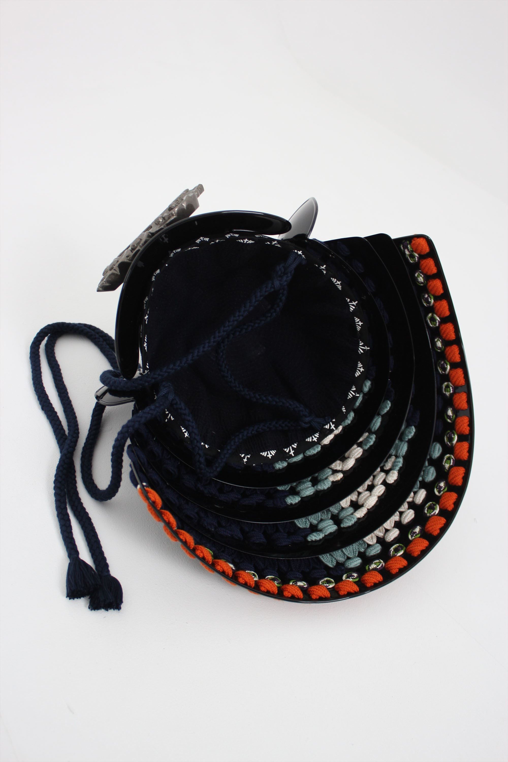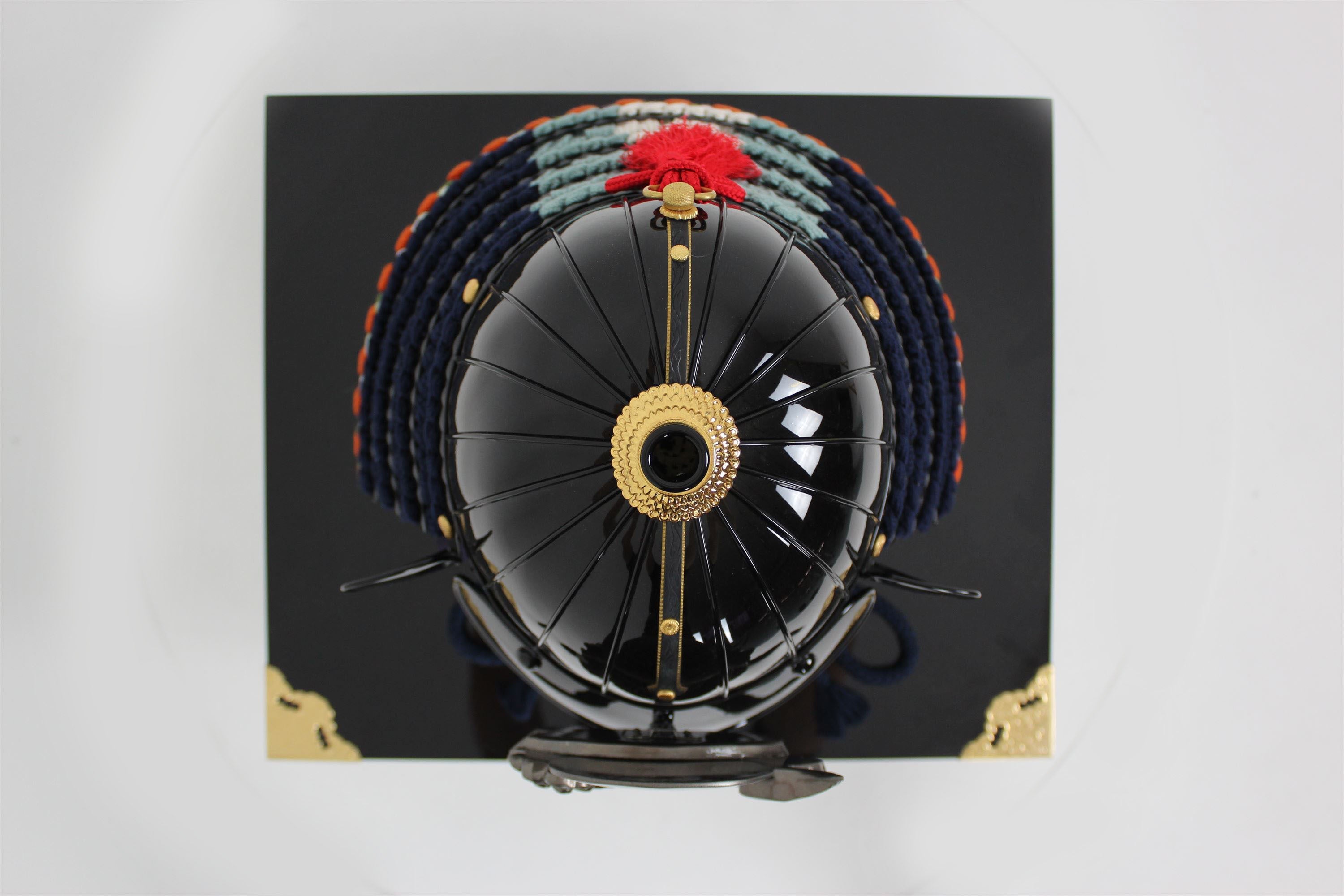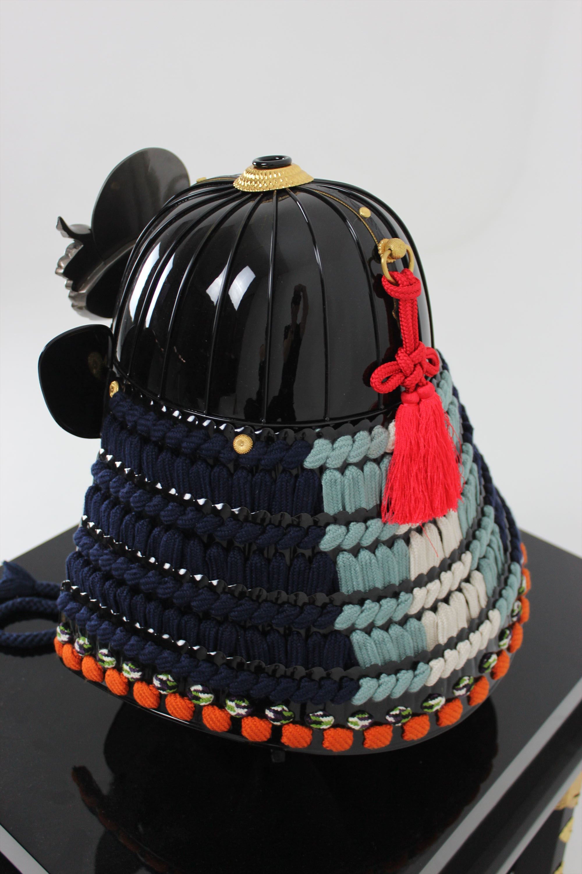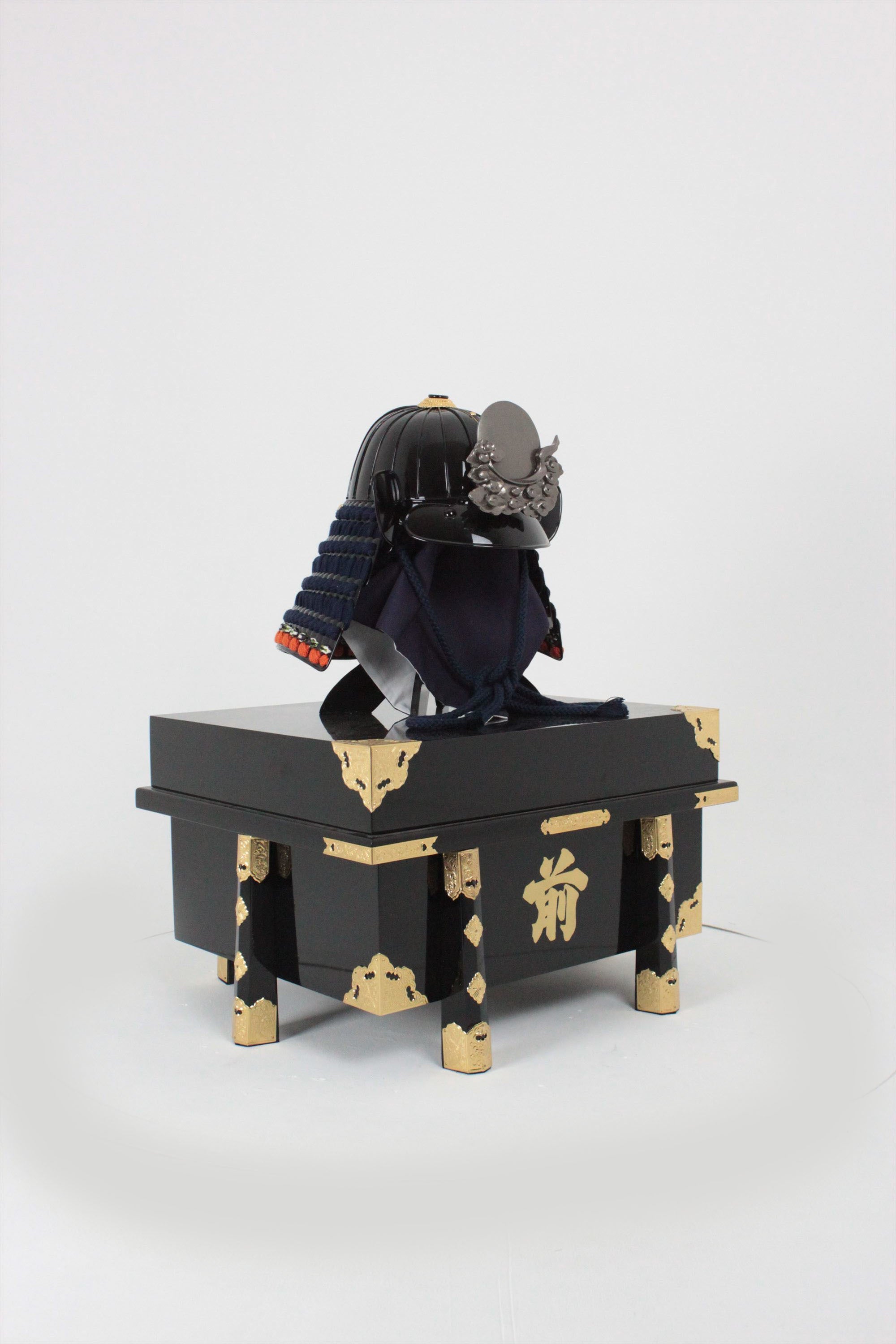 Black lacquer dark blue thread four-tiered medium-sized sash