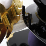 Material: Iron, brass, cotton, wood, gold leaf, gold powder