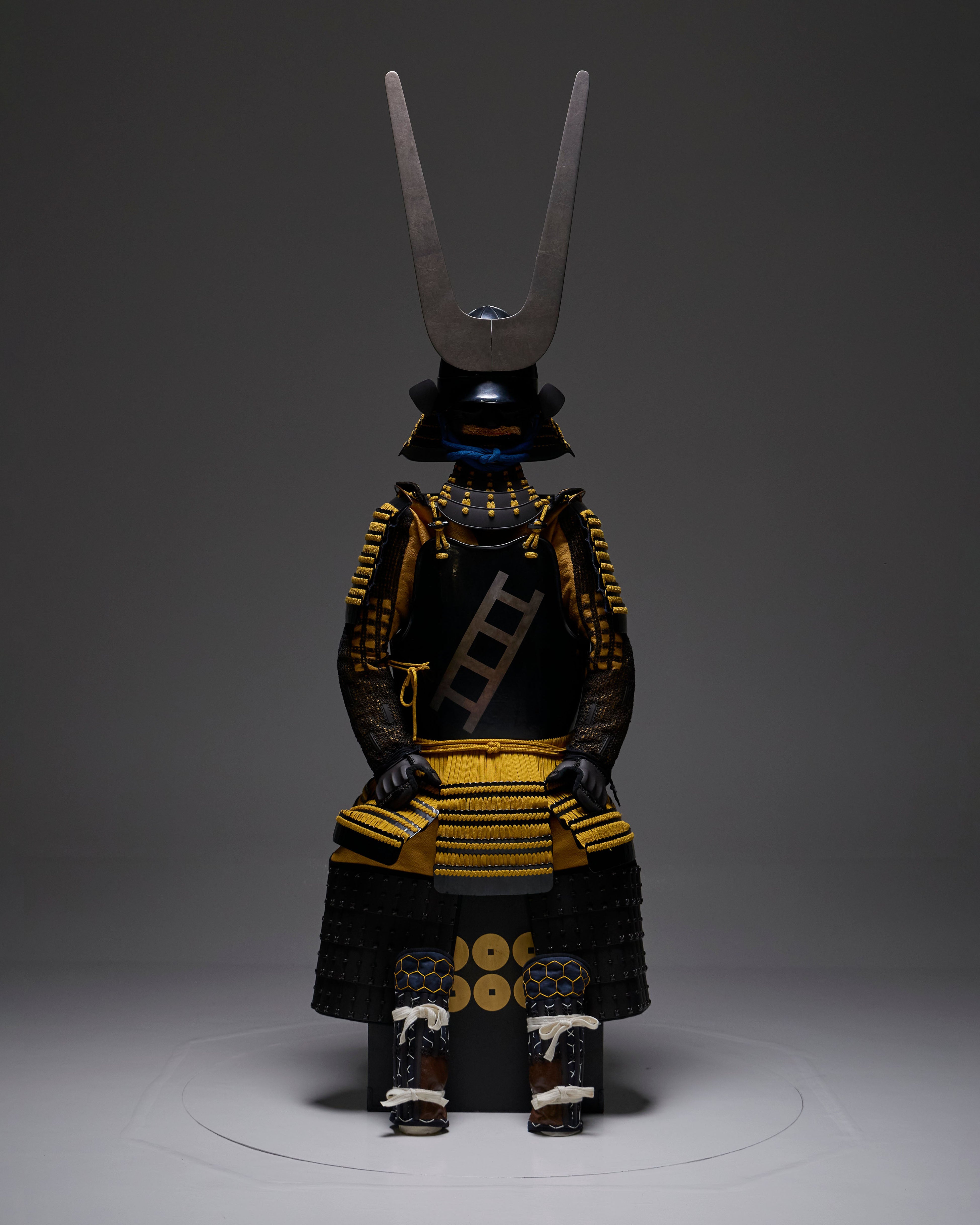 ●Specifications Helmet bowl Black lacquered eight-ken tsutsuhi-kata helmet stand Wooden smoked silver foil Zenith front stand Black lacquered board tag Gold brown hair pull-dyed five-stage Hineno body Black lacquered genuine leather wrapped Buddha two-piece body armor (silver climbing ladder)