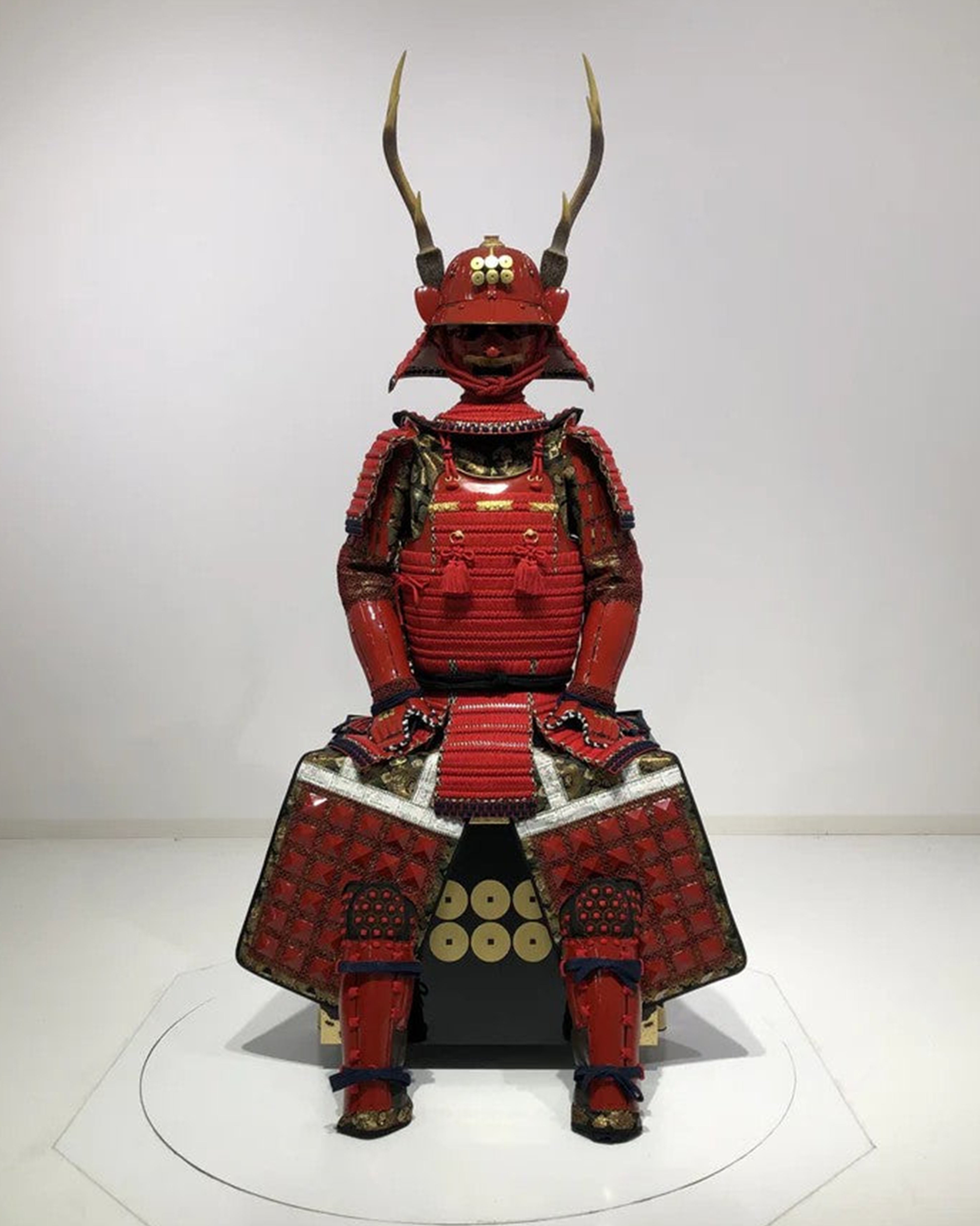 Sash: Red-painted contemporary small bills with red thread five-tiered torso, Red-painted contemporary small bills with red thread two-layered torso sleeves, Red-painted contemporary small bills with red thread six-tiered round sleeves, Red-painted contemporary small bills with red thread seven-ken five-tiered gauntlets, Red-painted three-piece tube gauntlets, Red-painted three-piece tube shins