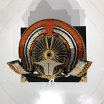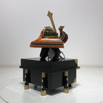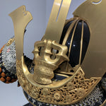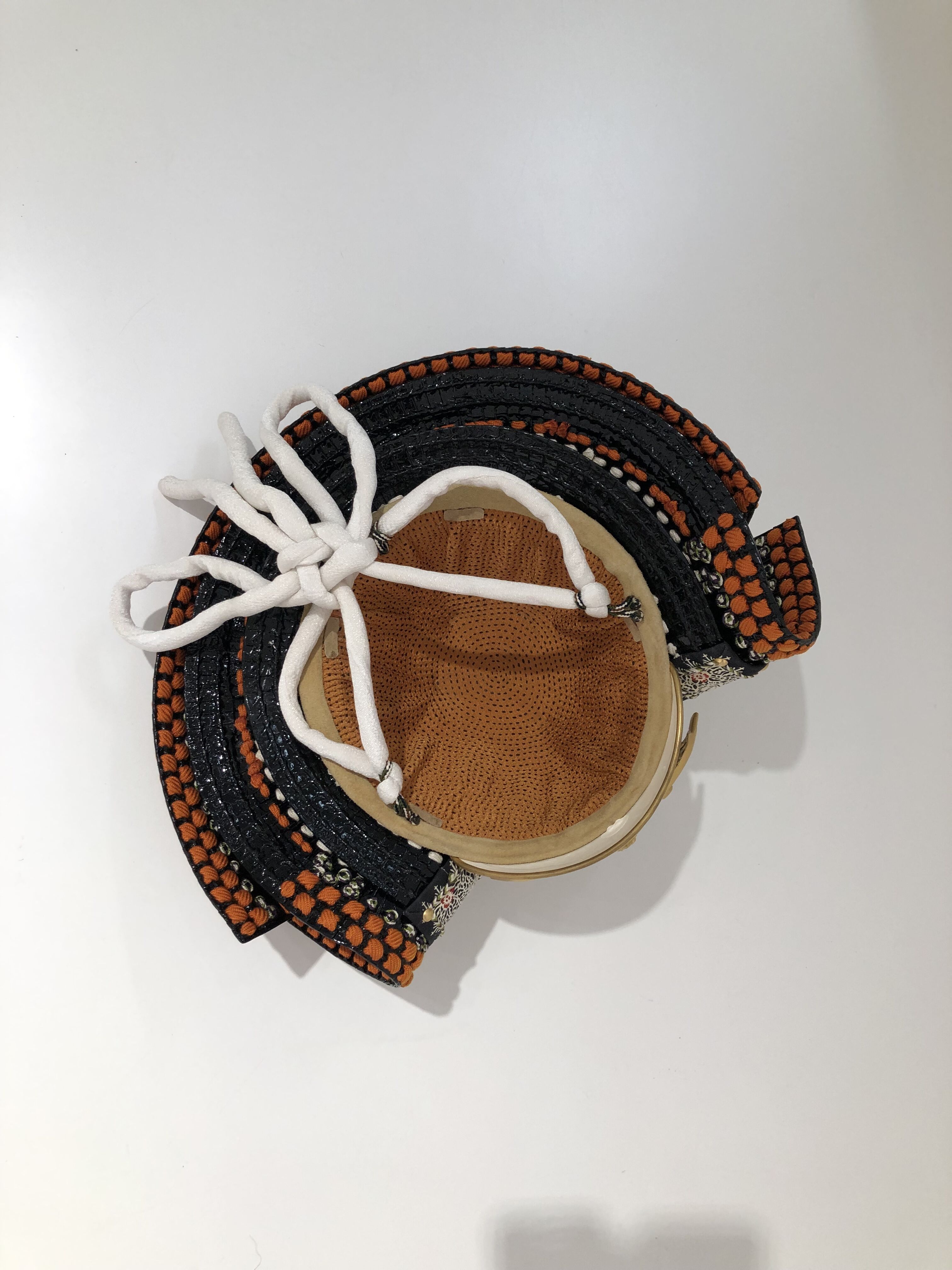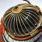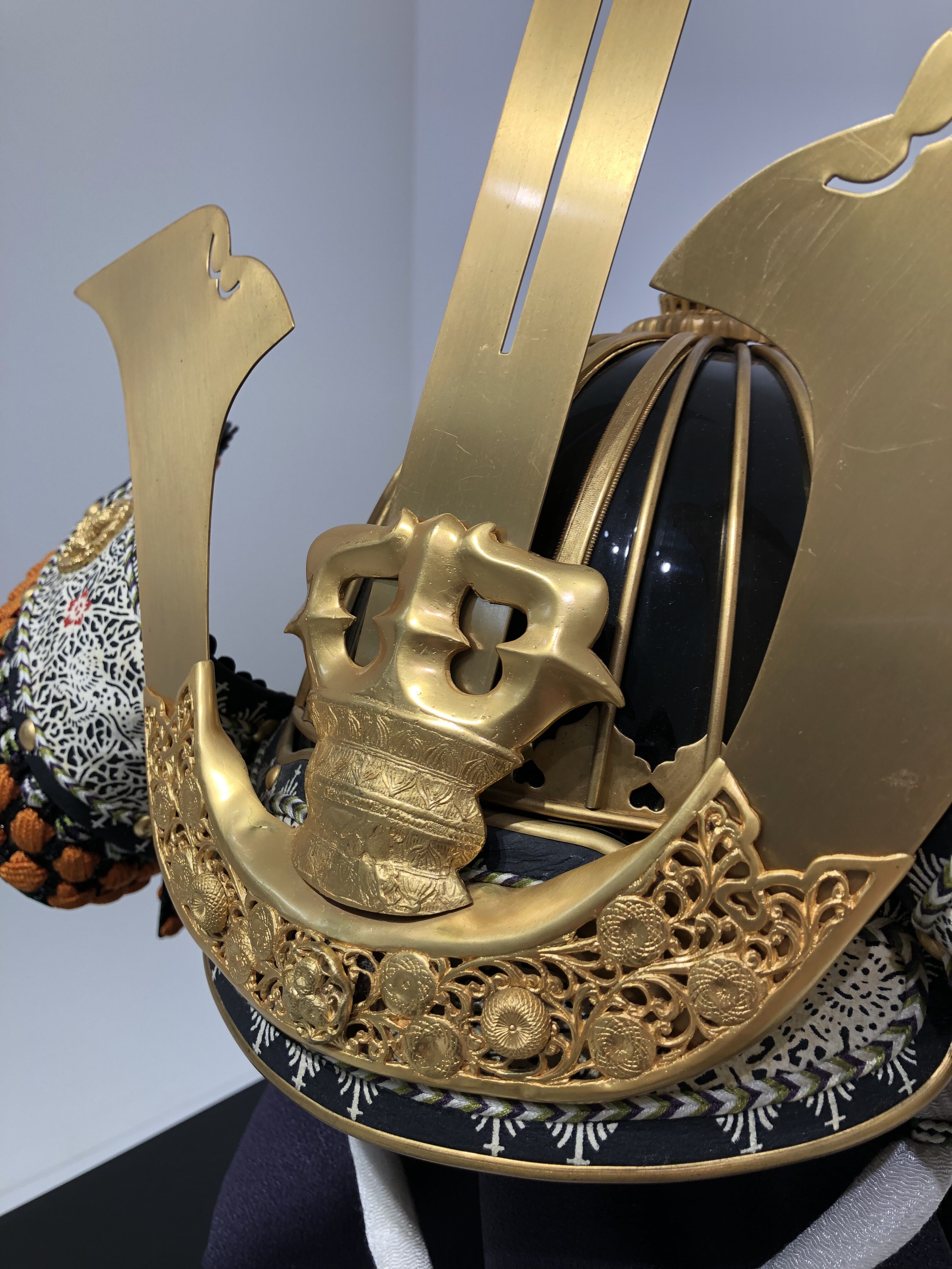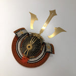 Materials: Iron, brass, cotton, silk, gold leaf, gold powder, wood