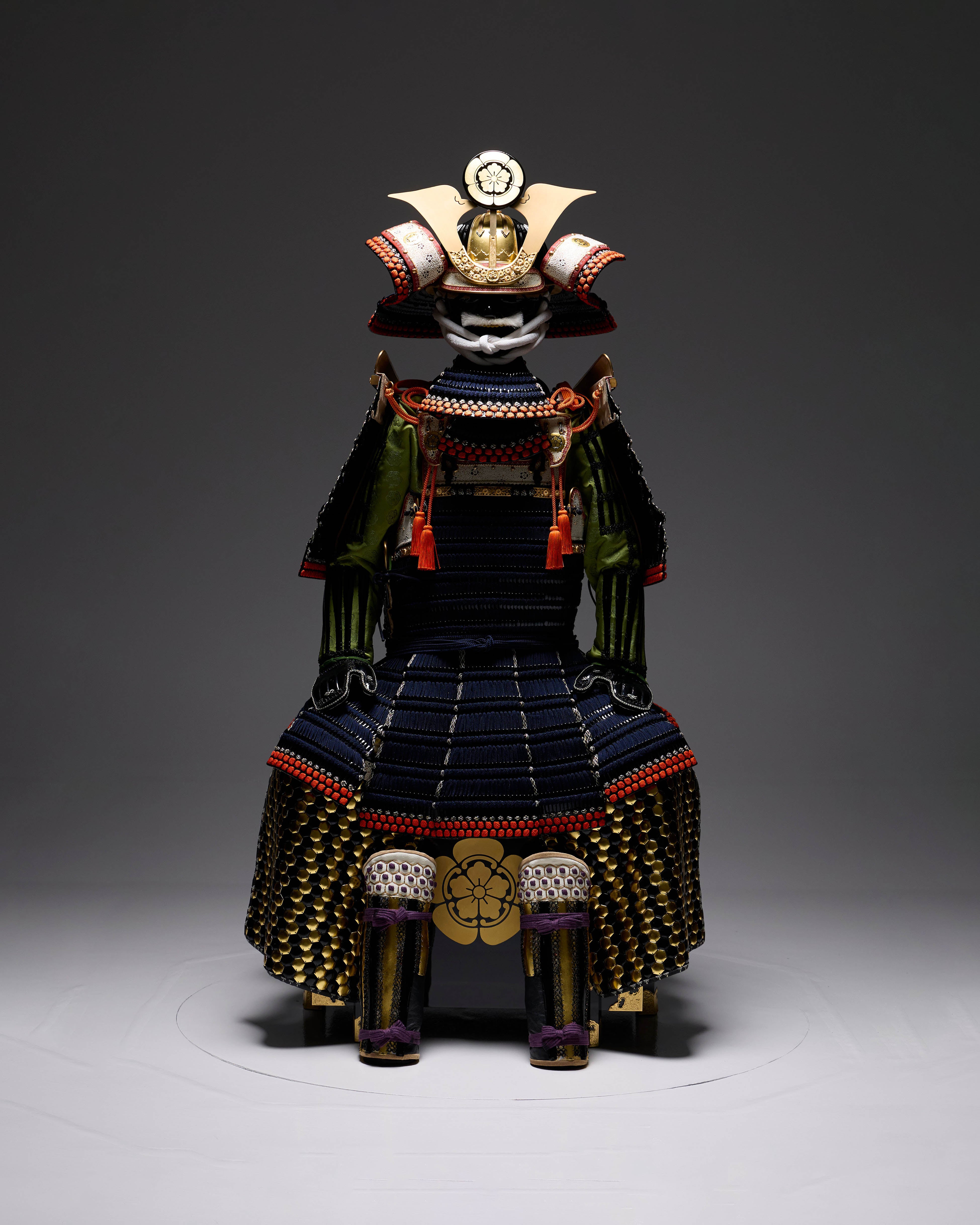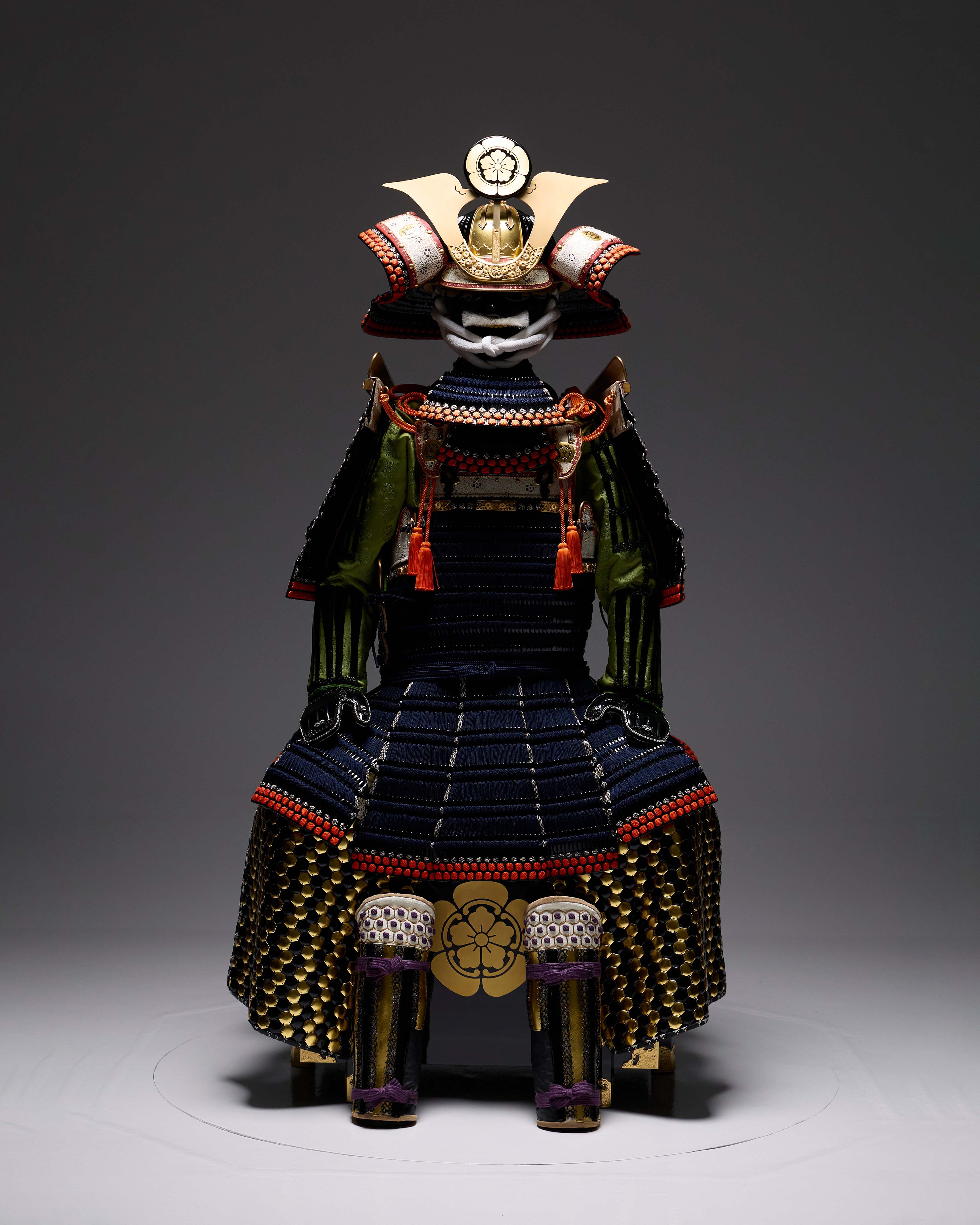 Body: Black-lacquered small bills, dark blue thread-dyed domaru