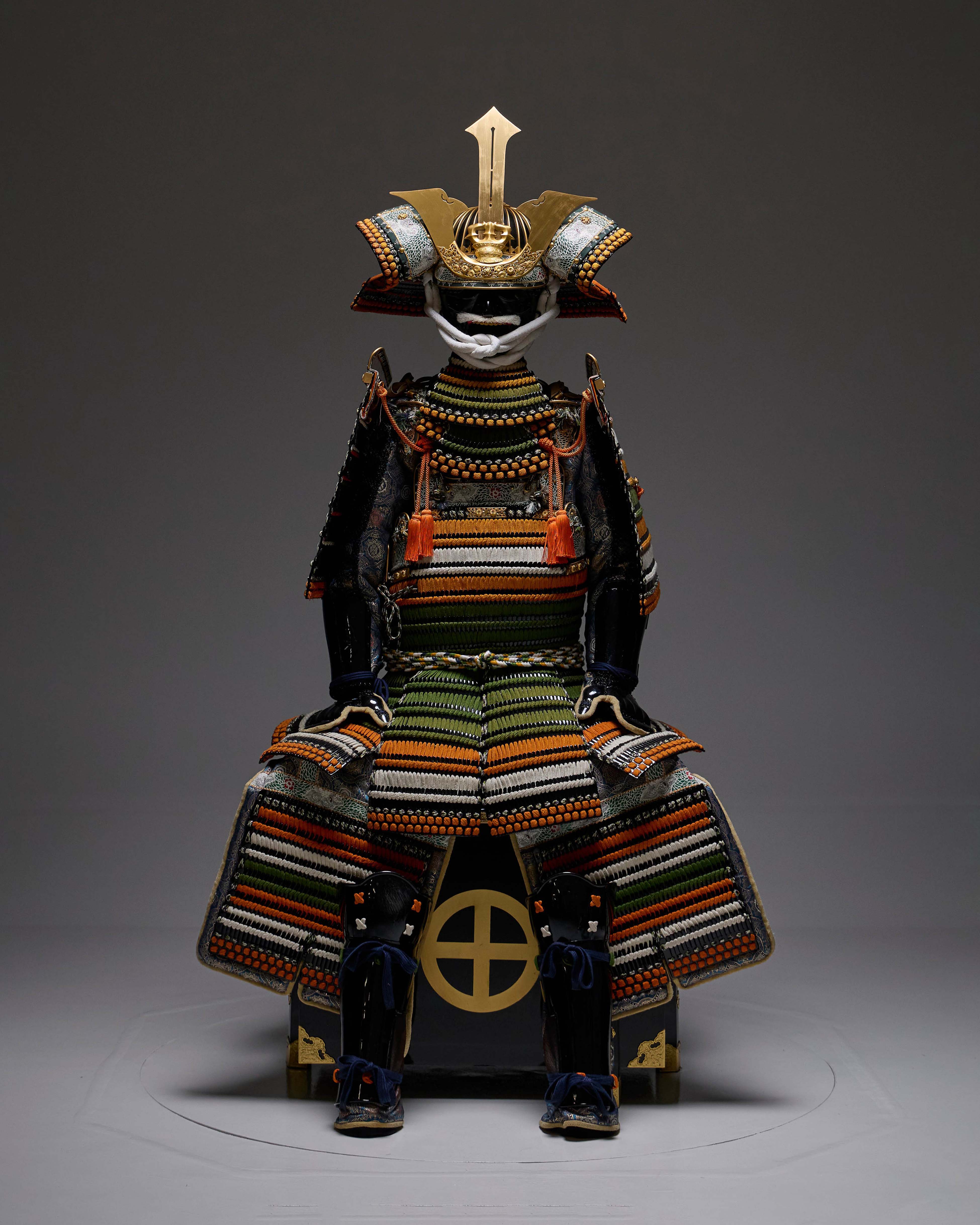 Body: Black-lacquered small bills, variously decorated, domaru